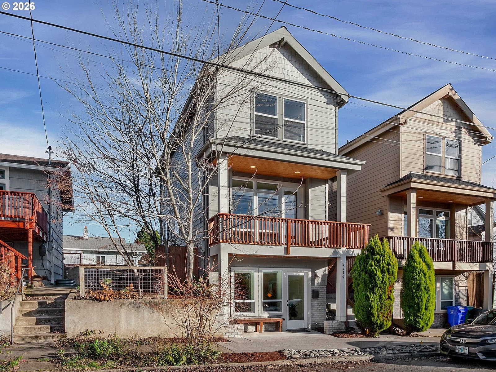 This stylish, light-filled home near Mt. Tabor offers 3+ bedrooms and 2.5 baths with a layout that’s easy to live in and flexible for today’s needs. The lower level works great as a home office, guest space, or business setup. The kitchen has quartz countertops, stainless steel appliances, and a stackable washer/dryer for everyday convenience. Upstairs, vaulted ceilings give the bedrooms an open, airy feel. Enjoy a large front deck that feels like another room, plus a fenced backyard with space to garden, grill, or dine outside. Just blocks to SE Division, Mt. Tabor Park, trails, and all your favorite neighborhood spots. [Home Energy Score = 7. HES Report at https://rpt.greenbuildingregistry.com/hes/OR10200577]