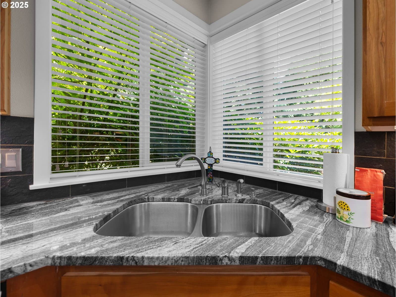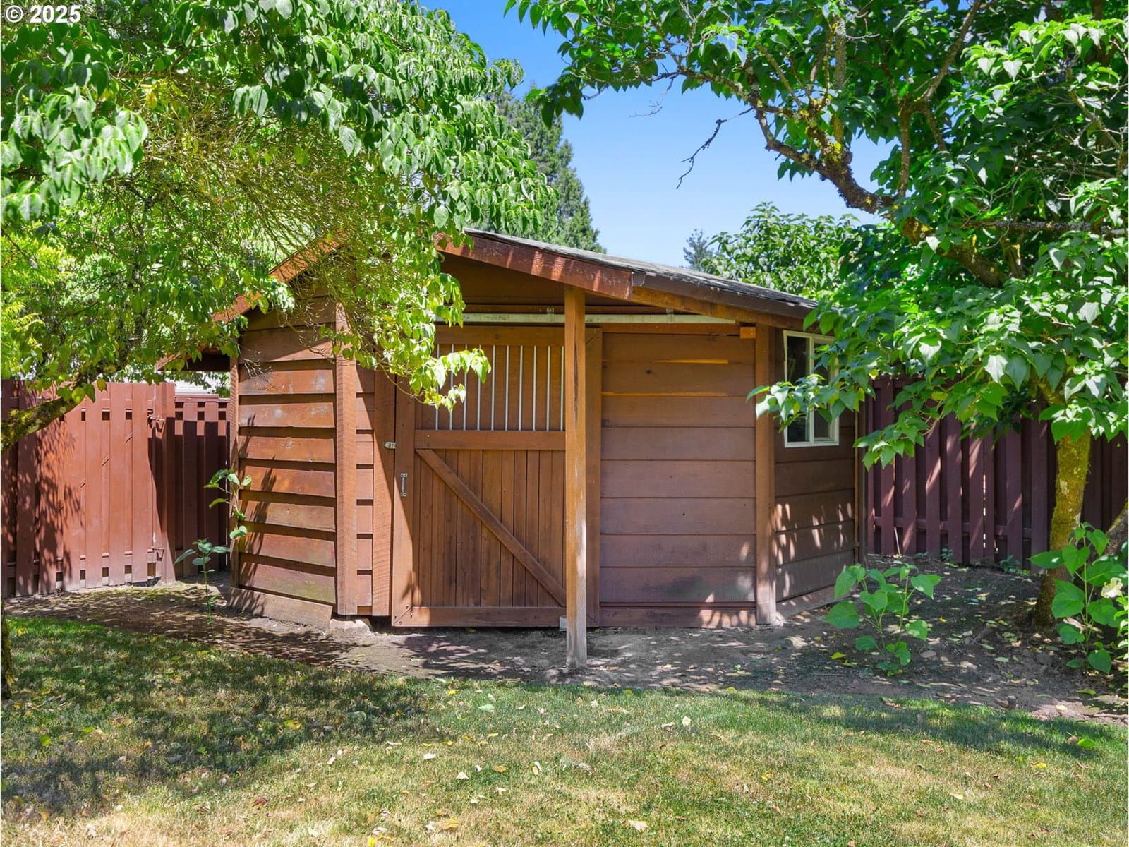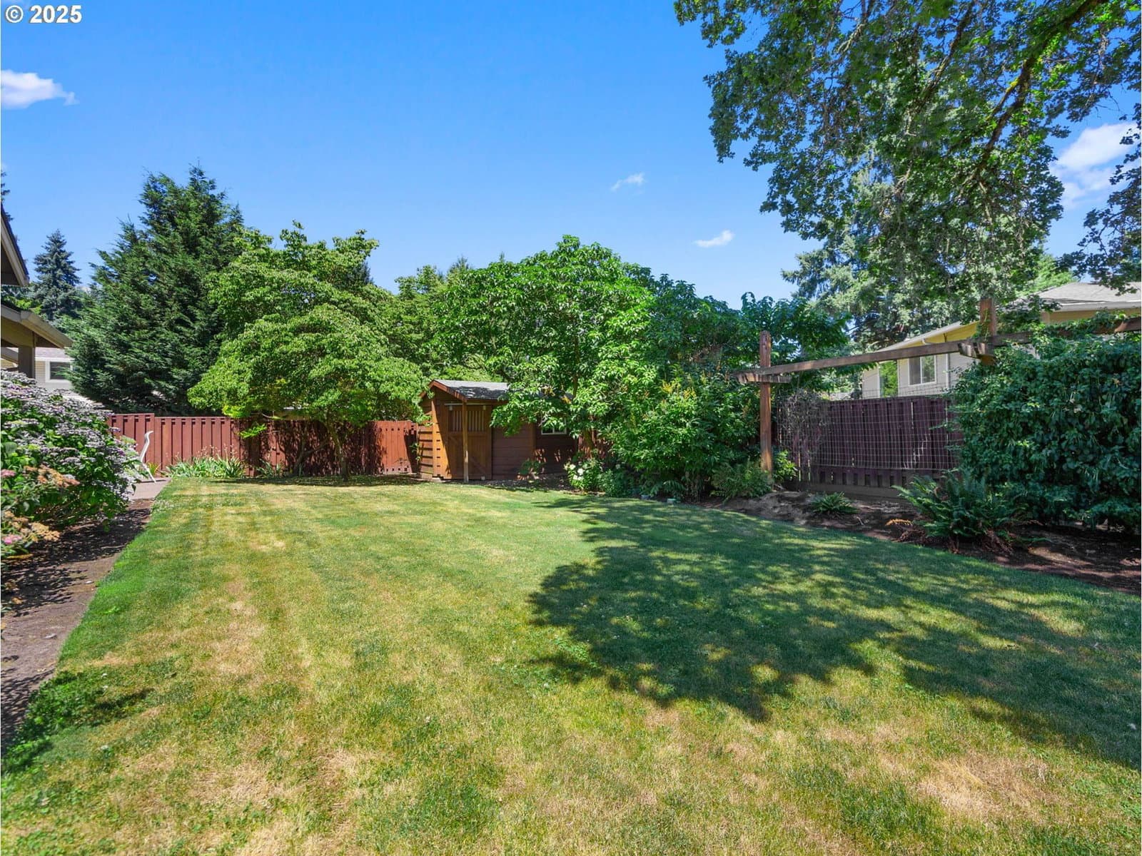 Welcome to this one-owner custom ranch home in a beautifully maintained and sought-after neighborhood in Tigard. Thoughtfully designed and meticulously cared for, this 2,337 sq. ft., 3 bedroom and 2 1/2 bath home offers comfort, quality and tons of natural light throughout. Inside, enjoy 11' ceilings with custom lighting, Brazilian cherry hardwood floors, surround sound throughout, and a whole-house fan plus furnace for year-round comfort. The spacious kitchen features granite countertops, cherry cabinets with lighting below, stainless steel appliances, gas cooktop, double oven and a large island- perfect for entertaining. The primary suite is a true retreat with double-door entry, jacuzzi tub, dual vanities, walk-in shower, and a generous walk-in closet. The family room features a gas fireplace, built-in shelving, large windows and a door to the backyard. Step outside to enjoy this beautifully landscaped and private yard, where a charming shed with dedicated service awaits- ideal as a she shed, studio, or workshop. A full sprinkler system makes maintenance a breeze. The 3-car garage has a perfect setup for a workspace and has a door to the outside. New 50-year roof was installed in 2023. This home blends elegance, function, and pride of ownership- it's a place to love for years to come.