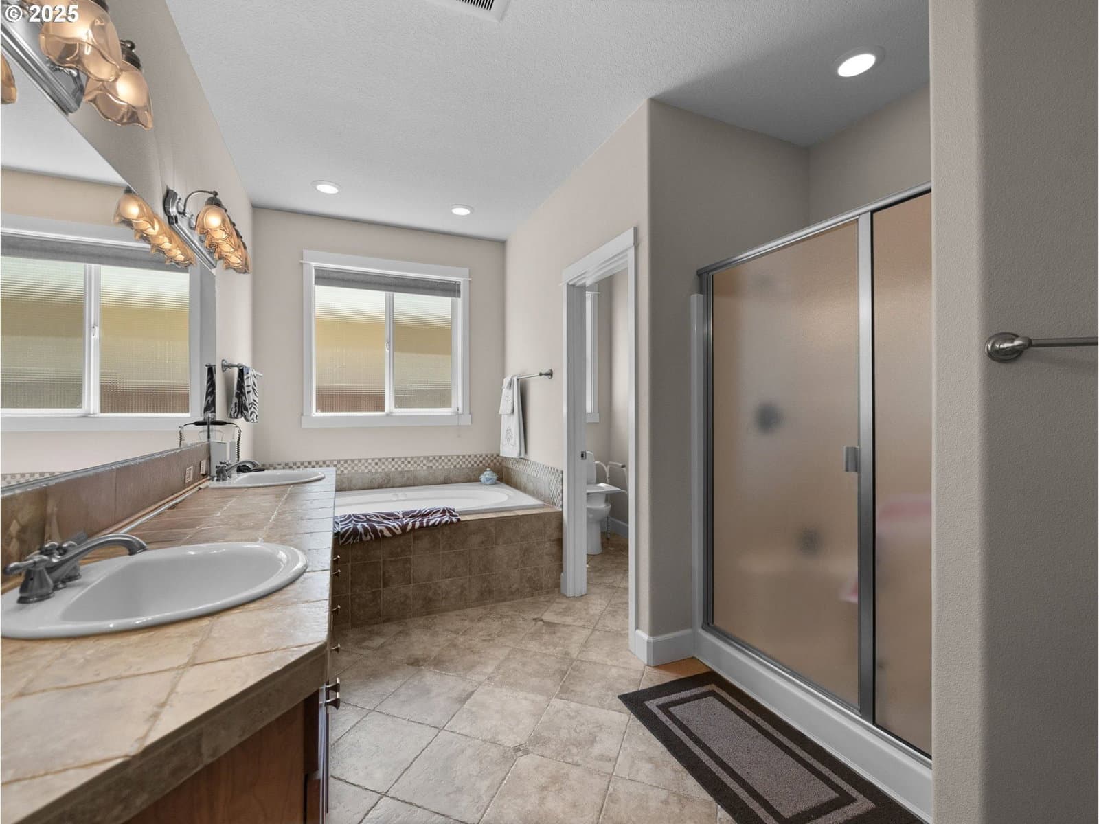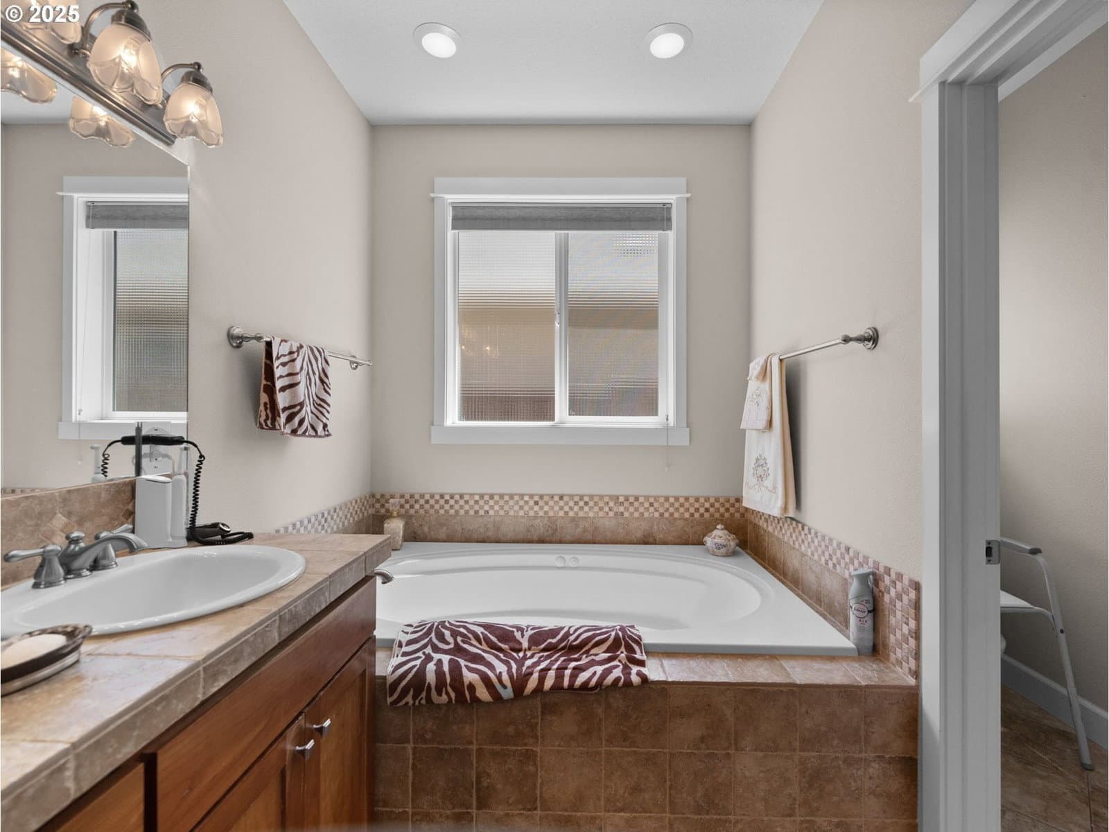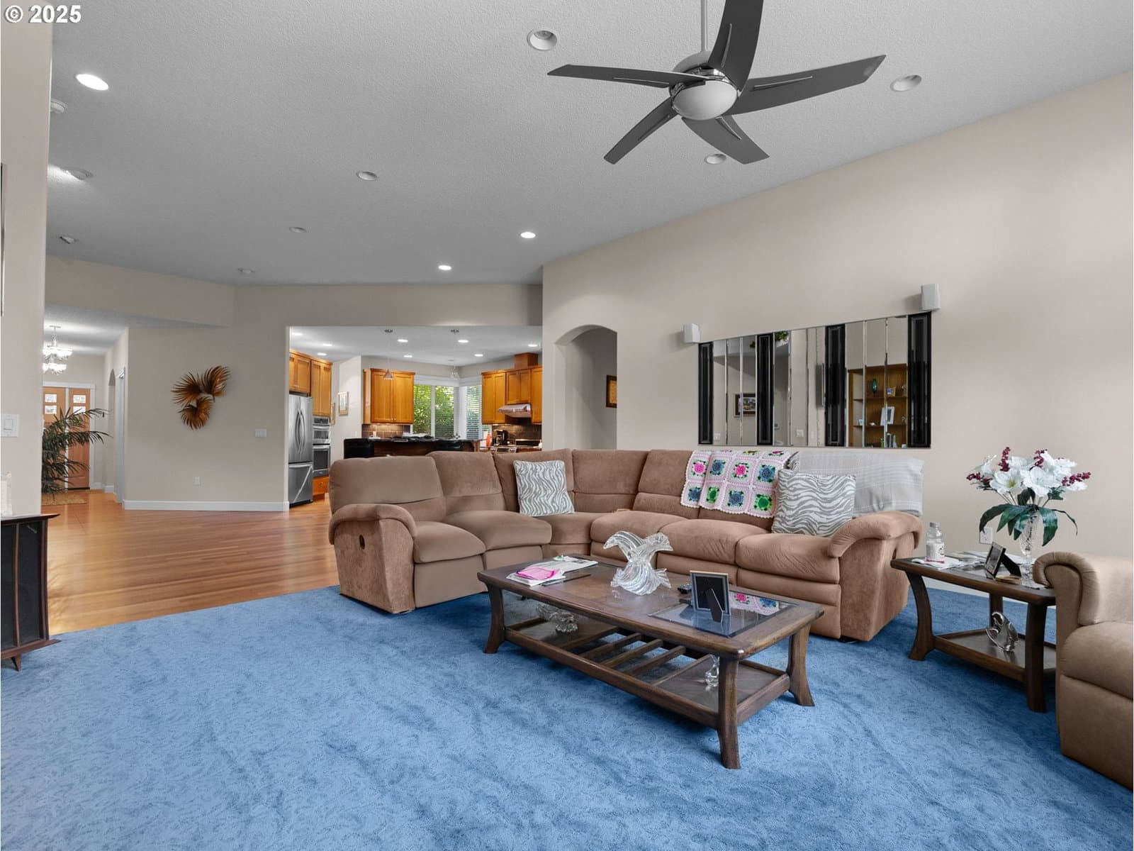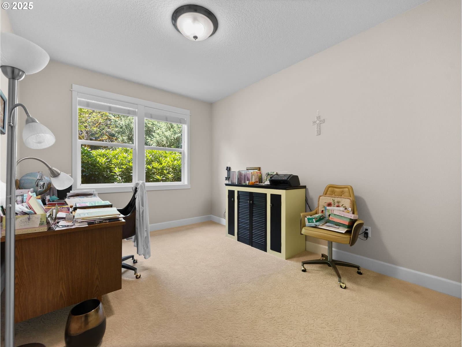 Welcome to this one-owner custom ranch home in a beautifully maintained and sought-after neighborhood in Tigard. Thoughtfully designed and meticulously cared for, this 2,337 sq. ft., 3 bedroom and 2 1/2 bath home offers comfort, quality and tons of natural light throughout. Inside, enjoy 11' ceilings with custom lighting, Brazilian cherry hardwood floors, surround sound throughout, and a whole-house fan plus furnace for year-round comfort. The spacious kitchen features granite countertops, cherry cabinets with lighting below, stainless steel appliances, gas cooktop, double oven and a large island- perfect for entertaining. The primary suite is a true retreat with double-door entry, jacuzzi tub, dual vanities, walk-in shower, and a generous walk-in closet. The family room features a gas fireplace, built-in shelving, large windows and a door to the backyard. Step outside to enjoy this beautifully landscaped and private yard, where a charming shed with dedicated service awaits- ideal as a she shed, studio, or workshop. A full sprinkler system makes maintenance a breeze. The 3-car garage has a perfect setup for a workspace and has a door to the outside. New 50-year roof was installed in 2023. This home blends elegance, function, and pride of ownership- it's a place to love for years to come.