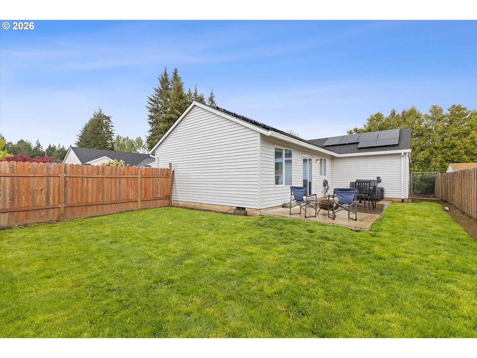 4days on marketWelcome to this charming single-level home nestled in the heart of Oregon’s sought-after wine country! From the moment you arrive, the wide private driveway welcomes you with ample parking, including room for trailers, RVs, or multiple vehicles.Inside, this 3-bedroom, 2 full bathroom home offers comfort, convenience, and plenty of space both inside and out with a very well designed layout. The living spaces flow seamlessly to the outdoors through sliding glass doors, opening to an expansive patio—perfect for weekend BBQs, entertaining guests, or relaxing evenings around a firepit under the stars. The spacious primary suite offers a true retreat as you enjoy a walk-in closet, double-sink vanity, and a step-in shower for added comfort and functionality. The fully fenced backyard offers endless possibilities, with plenty of room for garden beds, play structures, or pets to roam freely. Whether you’re looking to create your dream outdoor oasis or simply enjoy the open space, this property delivers.Conveniently located just moments from local schools, parks, and everyday amenities, this home combines peaceful small-town living with easy access to everything you need.Don’t miss your opportunity to own a slice of wine country living in this inviting and versatile home!There is a FHA assumable loan at very low rate! Home has energy efficient solar panels installed in 2023. New roof and heat pump in 2017. New base molding and interior paint in 2026. So much parking!