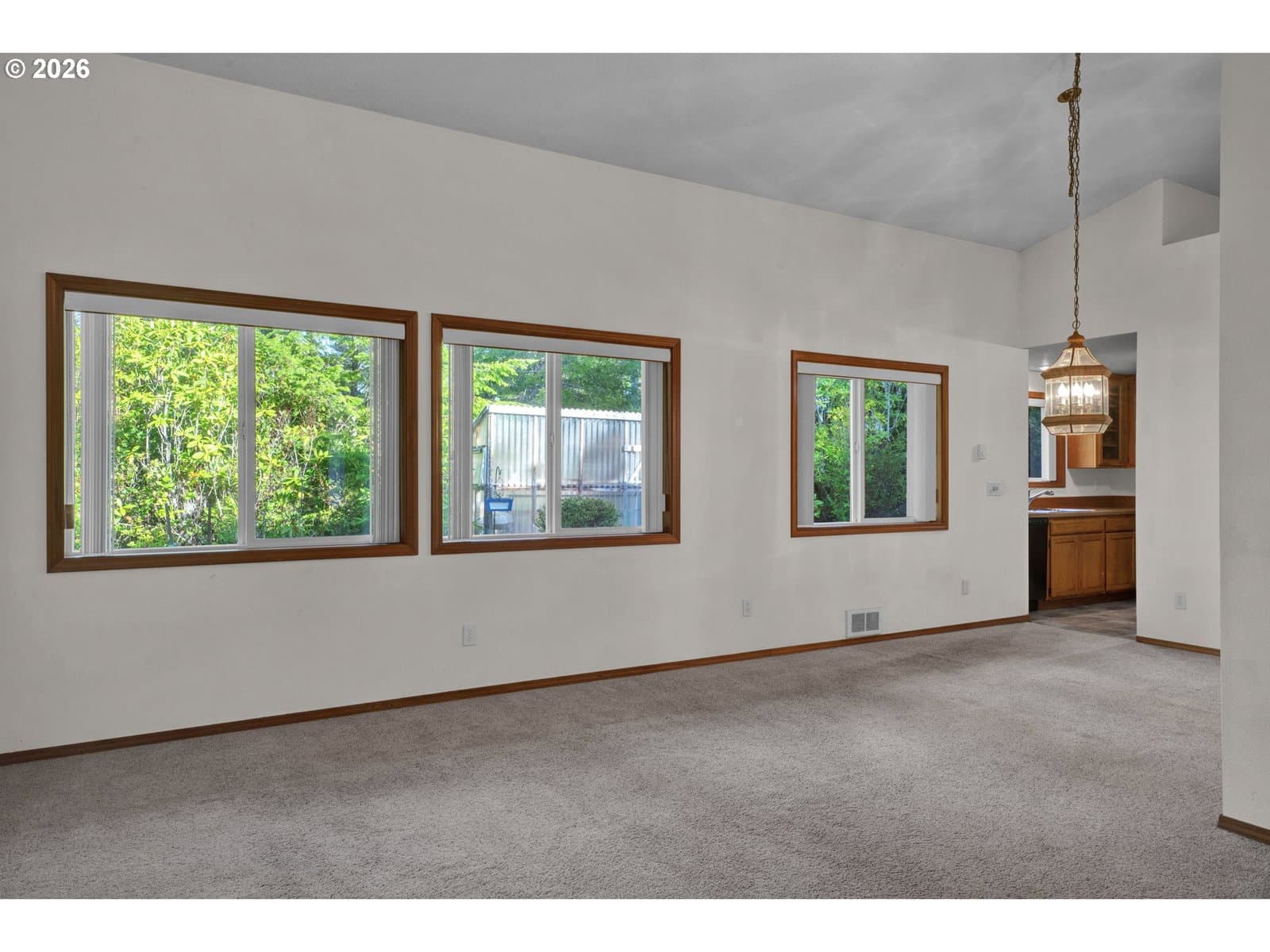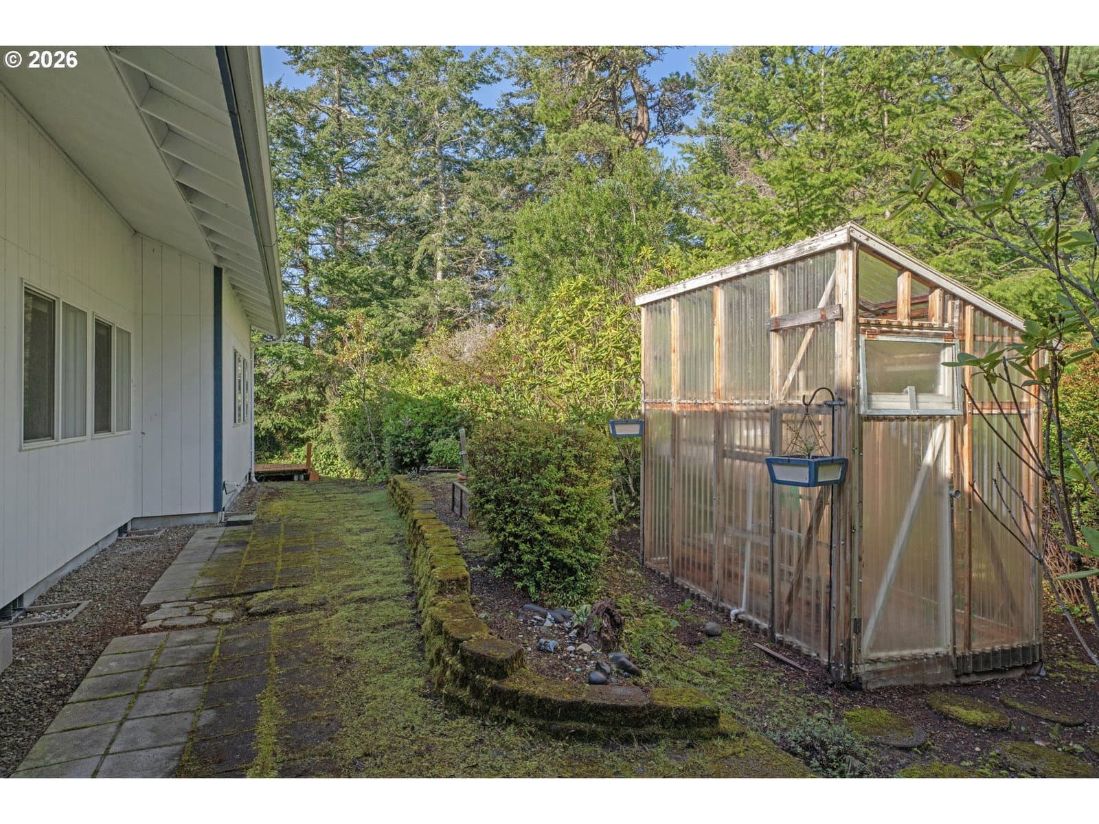 Unique and full of character, this charming 3 bedroom, 2 bath home offers 1,737 SqFt of inviting living space in a peaceful coastal setting. A welcoming wraparound front porch sets the tone, perfect for morning coffee or relaxing evenings.Inside, you’ll find both a spacious living room and a separate family room — each featuring vaulted ceilings, skylights, and custom built-ins that create an open, light-filled atmosphere. The family room is anchored by a cozy wood stove, adding warmth and charm. Just off the main living area is a dedicated office space with built-ins, designed with a wide interior opening that keeps it connected to the home while still offering functionality and focus.The primary suite offers comfort and space with three closets, dual sinks, a step-in shower, and a sliding glass door that leads directly to the deck. Two additional bedrooms provide flexibility for guests, hobbies, or creative space.An oversized attached two-car garage includes a workbench and ample storage. Outdoors, a greenhouse awaits gardening enthusiasts, and the property backs to wetlands, offering exceptional privacy and a serene natural backdrop.A truly distinctive home combining warmth, space, and tranquility.