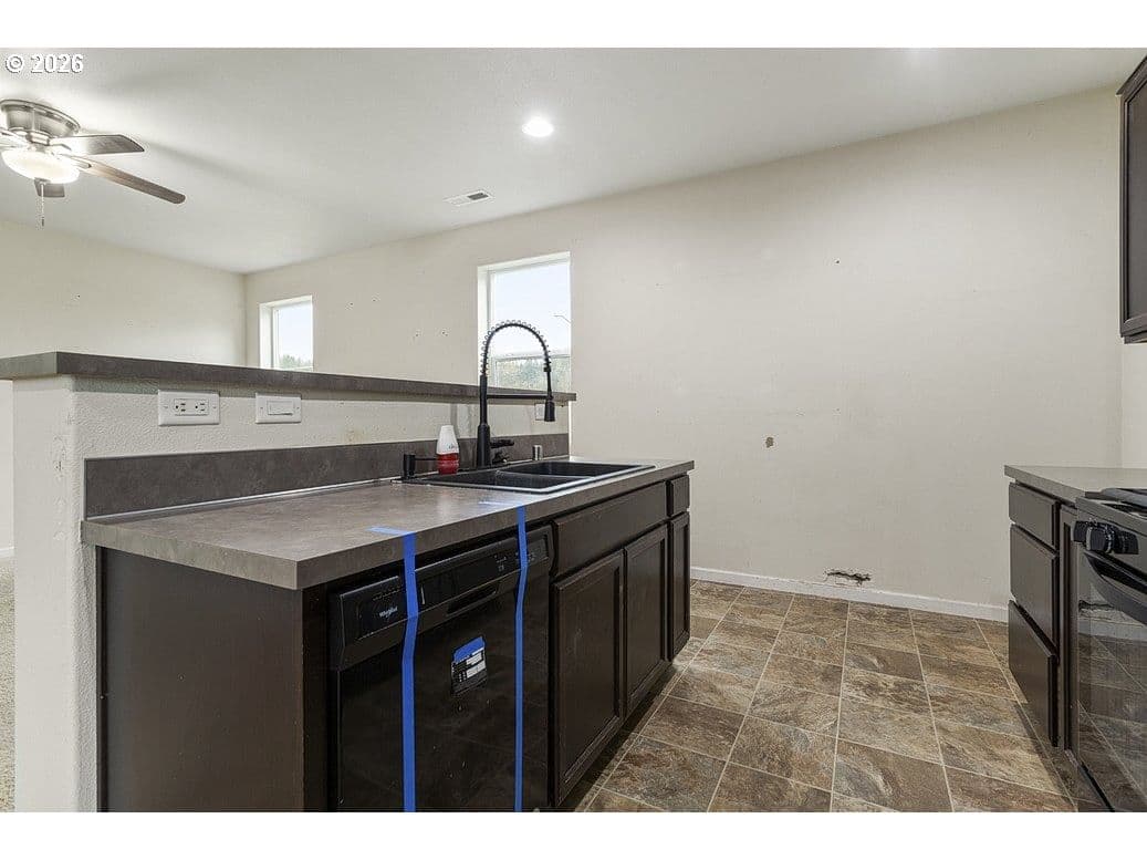 This 2018-built two-story home in the Meriwether community sits on a spacious 5,681 sq ft corner lot and offers 1,924 square feet of living space with 3 bedrooms, 2.5 baths, plus a loft that’s been converted into a handy fourth bedroom or bonus room. The attached two-car garage and fenced backyard with patio give you plenty of room to spread out. Inside, the open main floor flows nicely from a kitchen featuring dark cabinets, laminate counters, a big island, and appliances right into the living and dining areas. Upstairs you’ll find the primary suite with its own bath and walk-in closet, two more bedrooms, the laundry area, and that flexible bonus space. Low-maintenance siding and a composition roof keep things simple on the outside. Forced-air gas heat and all public utilities are in place. Located in a great spot near I-5, Woodland schools, and the neighborhood’s clubhouse, pool, playground, and sports court.