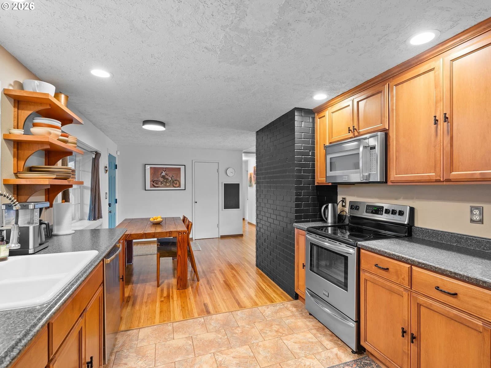 The perfect place to put down roots — with charm, flexibility, and room to grow. This easy-living single-level mid-century ranch in the David Douglas School District is full of warmth, character, and great everyday flow — all set on a quiet, friendly street. Inside, you’ll find original hardwood floors, classic built-ins, and comfortable living spaces that feel welcoming from the moment you walk in.Originally a 3-bedroom, the home now lives as a spacious 2-bedroom with a large primary suite featuring doors onto the backyard. Need more space down the road? The oversized bedroom can easily be converted back to create a third bedroom if desired — a great option for changing needs over time.The fully fenced backyard and patio are perfect for hanging out, gardening, or hosting friends on summer evenings. Lovingly maintained and move-in ready, this home offers a relaxed feel with thoughtful updates throughout. You’ll love being close to Kelly Butte Natural Area with its trails and views, plus easy access to I-205 for commuting around the metro area. Parks, local spots, and everyday conveniences are all nearby, while the neighborhood still feels tucked away and peaceful.
