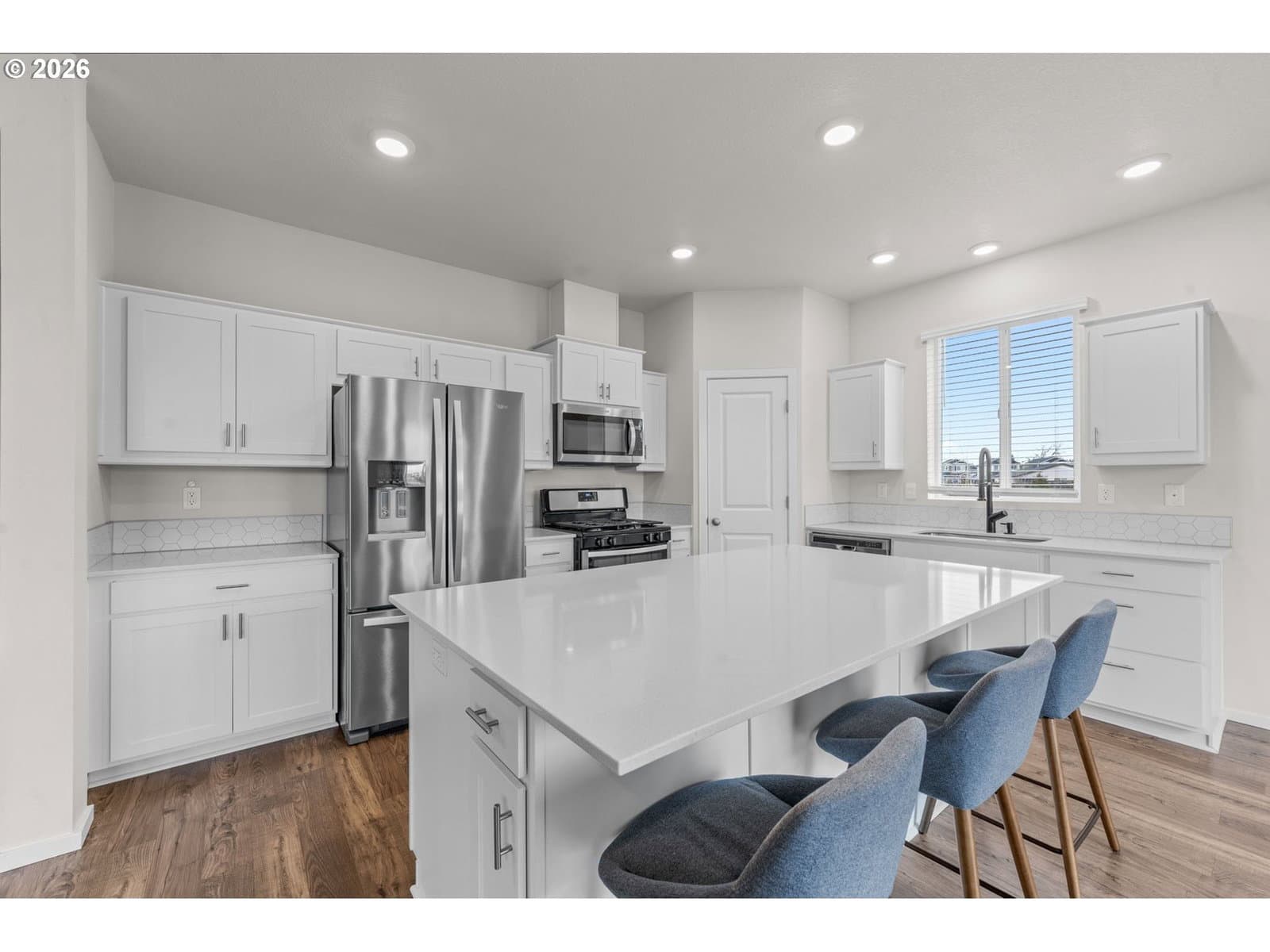 Built in 2022, this 4 bedrooms + bonus, 2.5 bath home offers 2,335 sq ft of thoughtfully designed space. Quartz countertops elevate the kitchen, & custom woodwork walls bring personality and warmth. The primary suite features a spacious walk in closet with custom shelves for added comfort. Backing to a green space and near a recreation area, this home also offers access to community walking paths and playgrounds. With quick access to I-5, you'll love the balance of peaceful neighborhood living and everyday convenience. Fresh to market and better than new.