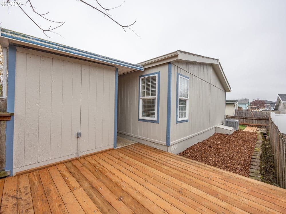 This spacious home has just received a major remodel. Seller repainted the home inside and out, new modern vinyl plank throughout the entire house, refinished all cabinets, new kitchen slab counters, brand new porch and deck, new AC pump, new dishwasher, all appliances stay. Cypress Point is quiet and charming as well as having very low space rent. Roof was done a few years ago and looks great. Cypress Point is one of the most desired over 55 parks in Vancouver. It is quiet and a nice smaller community of less than 70 homes.