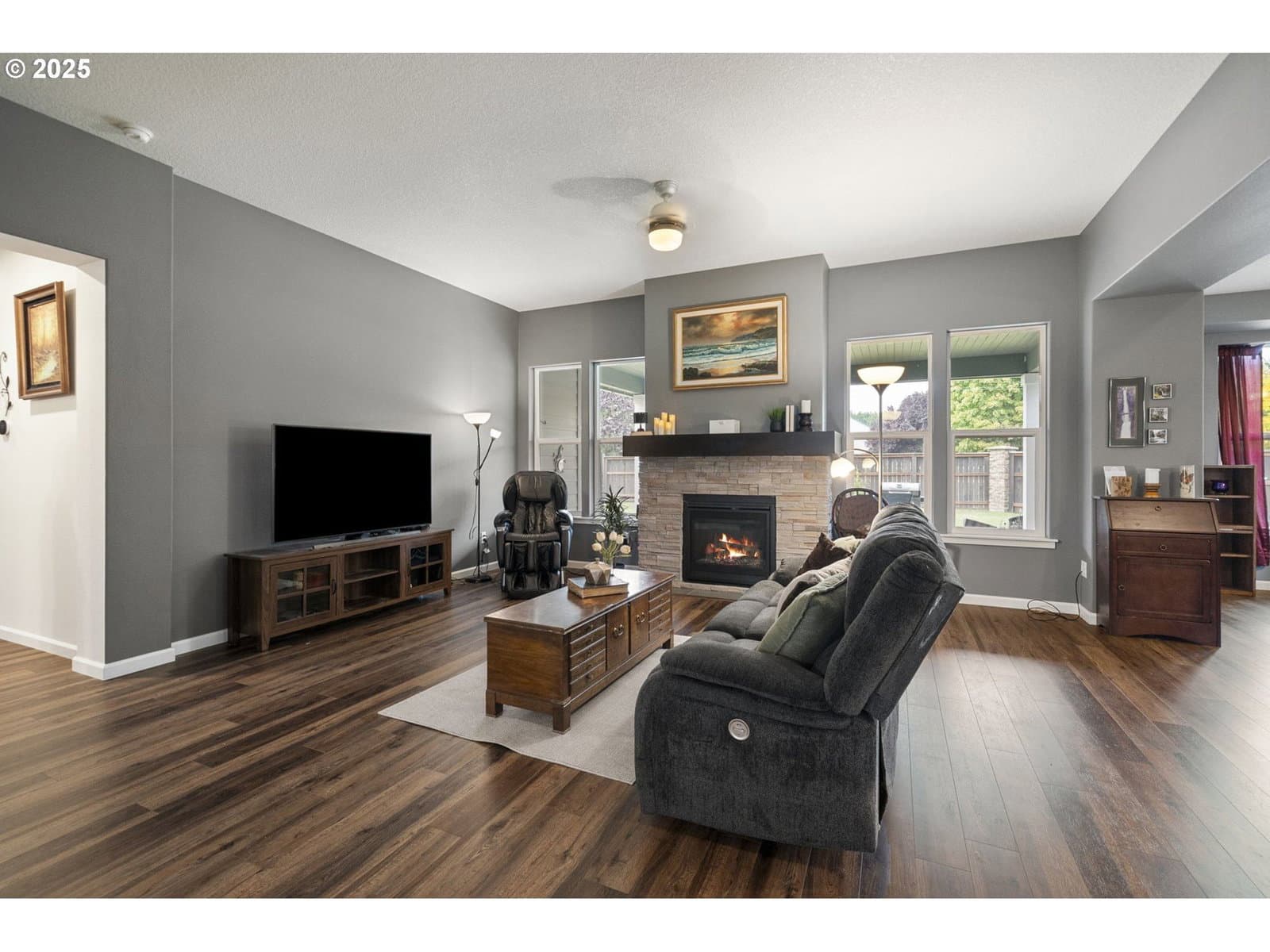 Looking for a home on a desirable corner lot in the heart of Battle Ground, well here you have it. This beautifully designed home offers the perfect balance of comfort, style, and functionality. With four bedrooms, two full bathrooms, and two additional half baths, the open-concept layout welcomes you with a warm living room featuring a cozy fireplace, a gourmet kitchen with granite counters, stainless steel appliances, and a large island, plus a serene main-level primary suite complete with a walk-in closet and spa-like bath. Upstairs, you’ll find a versatile bedroom with its own private half bath—perfect for guests, a home office, or a bonus room.Designed with today’s lifestyle in mind, much of the home has been pre-wired with Cat 5 wiring and tubing that connects directly to the equipment room, offering easy whole-home smart system integration. Outside, enjoy the fully fenced backyard with a covered patio for year-round entertaining, along with a spacious three-car garage for vehicles, storage, and hobbies. With its thoughtful features, modern finishes, and prime Battle Ground location, this home is ready to welcome you.