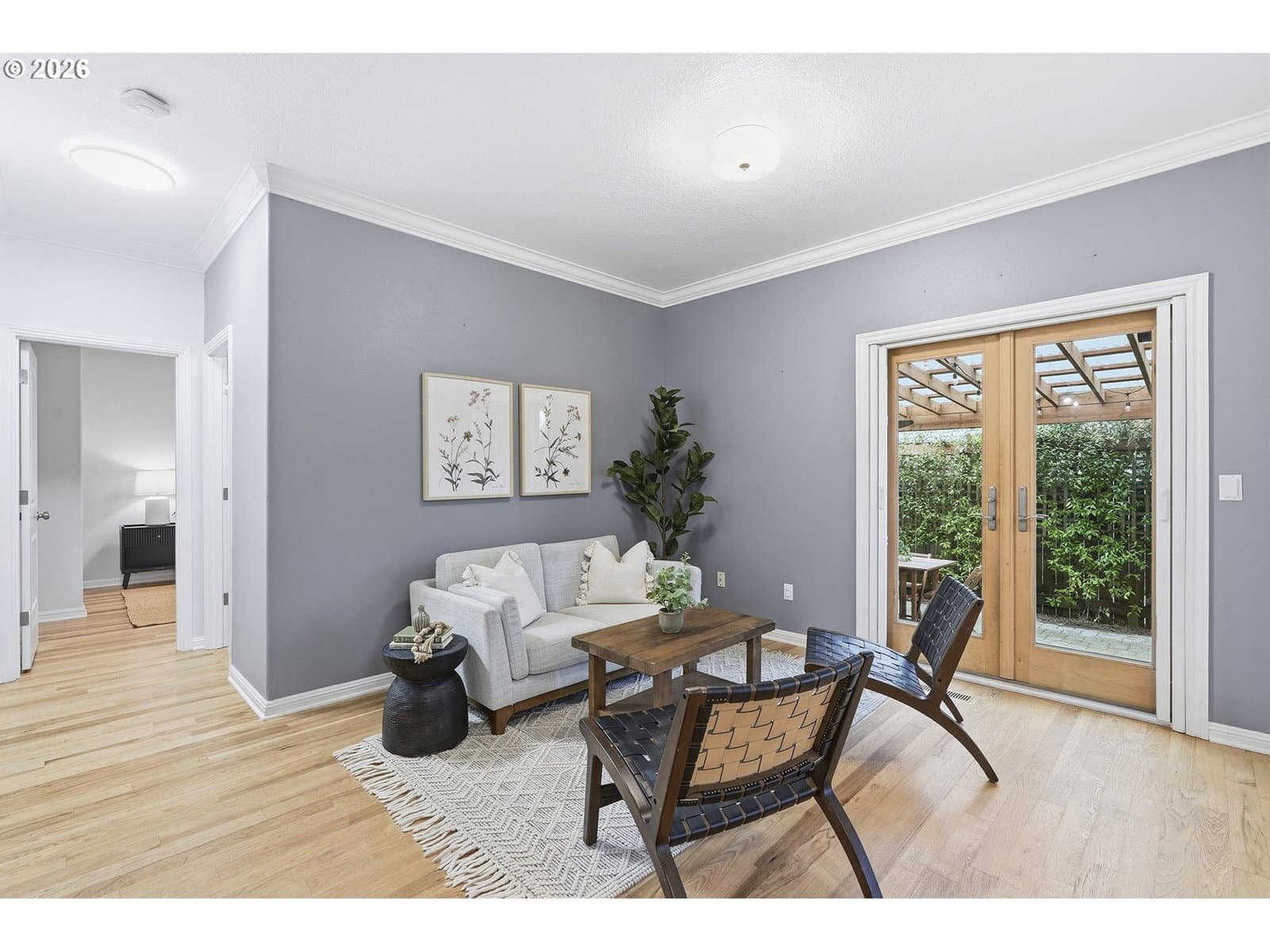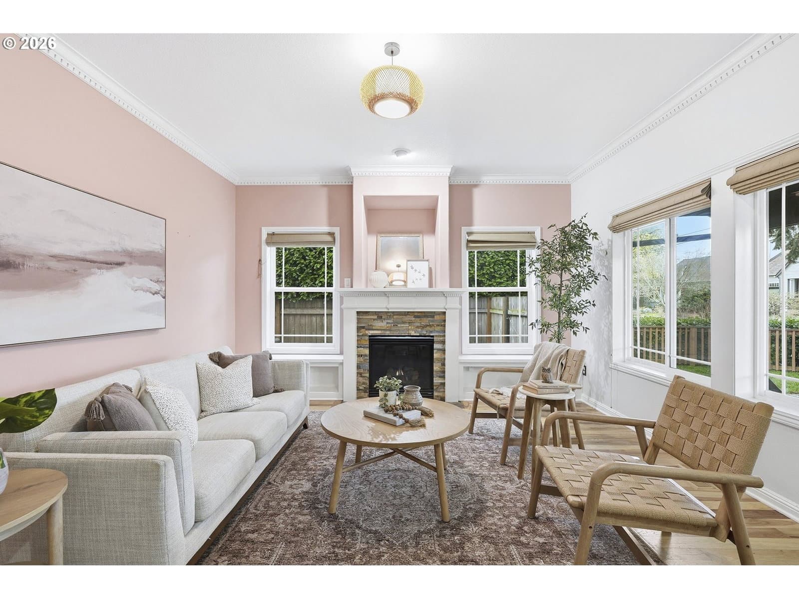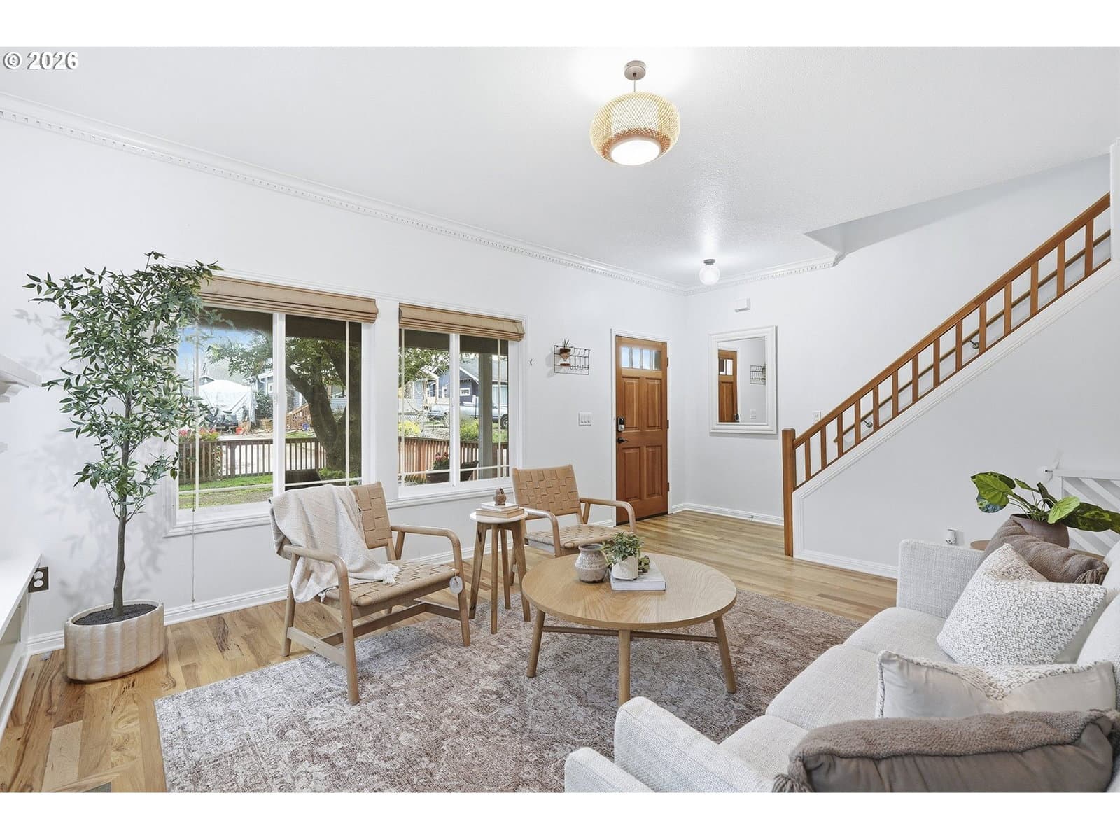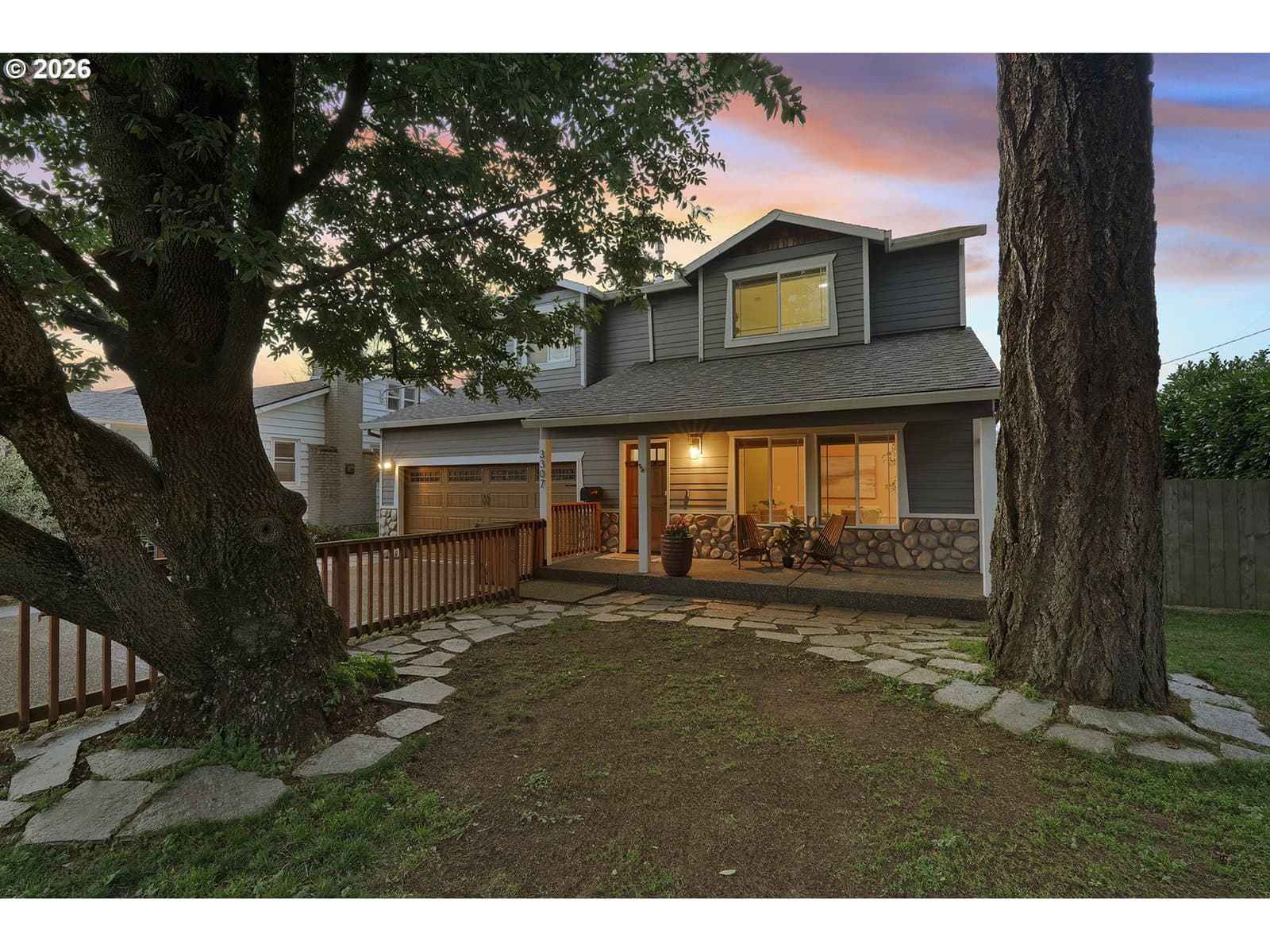 Tucked on a quiet, idyllic street in the heart of Kenton, this lovely Craftsman offers a great layout, prime location, and move-in ready updates. With 4 bedrooms and 3 bathrooms, the layout flows beautifully, with a cozy living room at the front of the home and open kitchen, dining, and family spaces at the back, along with a main-level bedroom and full bath that add flexibility for guests, working from home, or multigenerational living. The kitchen anchors the main living spaces and has been tastefully updated with new quartz counters, a custom backsplash, a new induction range, and plenty of storage. French doors off the family room open to a covered patio and fully fenced backyard, creating a space that works just as well for entertaining as it does for everyday living. Upstairs, the primary suite is a true retreat with vaulted ceilings and an updated bathroom with a soaking tub, walk-in shower, and large walk-in closet. Two additional bedrooms, a full bath, and the laundry room round out the upper level. This home is truly move-in ready, with important updates already completed including a new furnace and heat pump, composition roof, carpet, updated bathrooms, and epoxy garage floors. All of this just blocks from Kenton’s parks, coffee shops, and local favorites along Denver Avenue, making it easy to enjoy one of North Portland’s most loved, walkable neighborhoods. [Home Energy Score = 6. HES Report at https://rpt.greenbuildingregistry.com/hes/OR10154585]