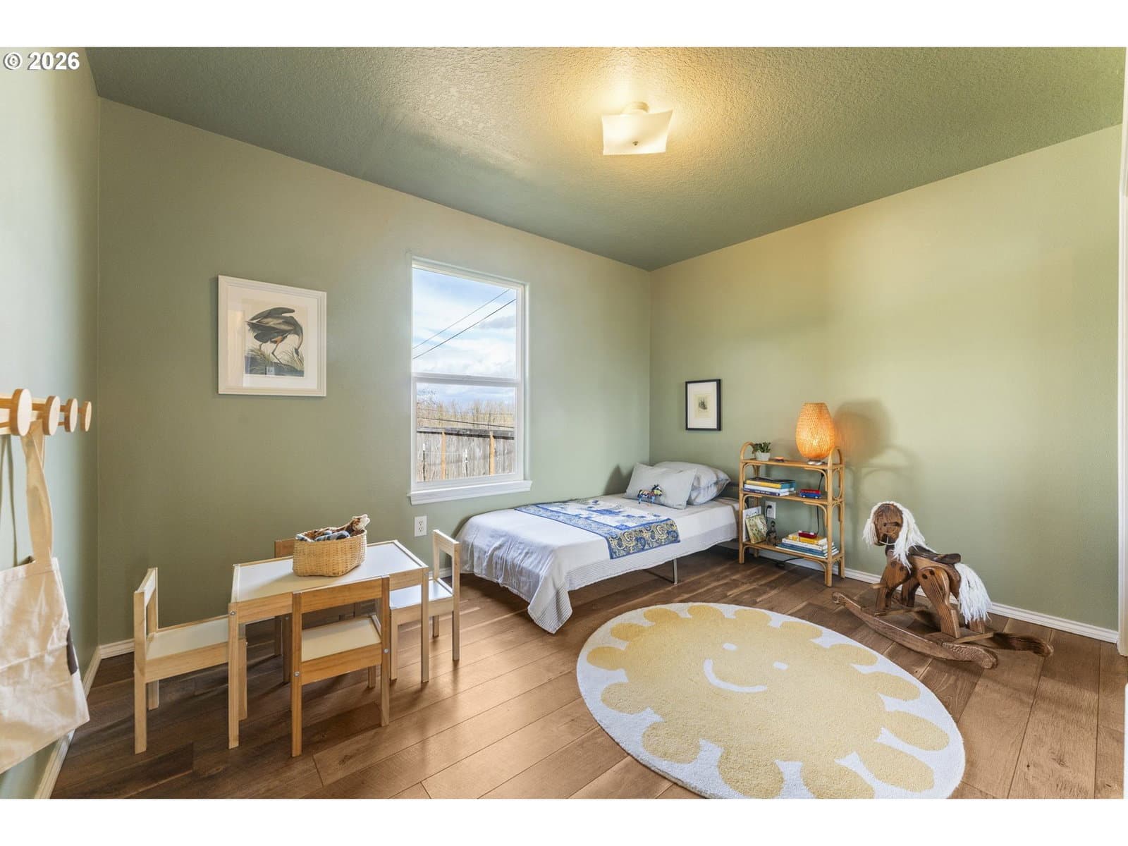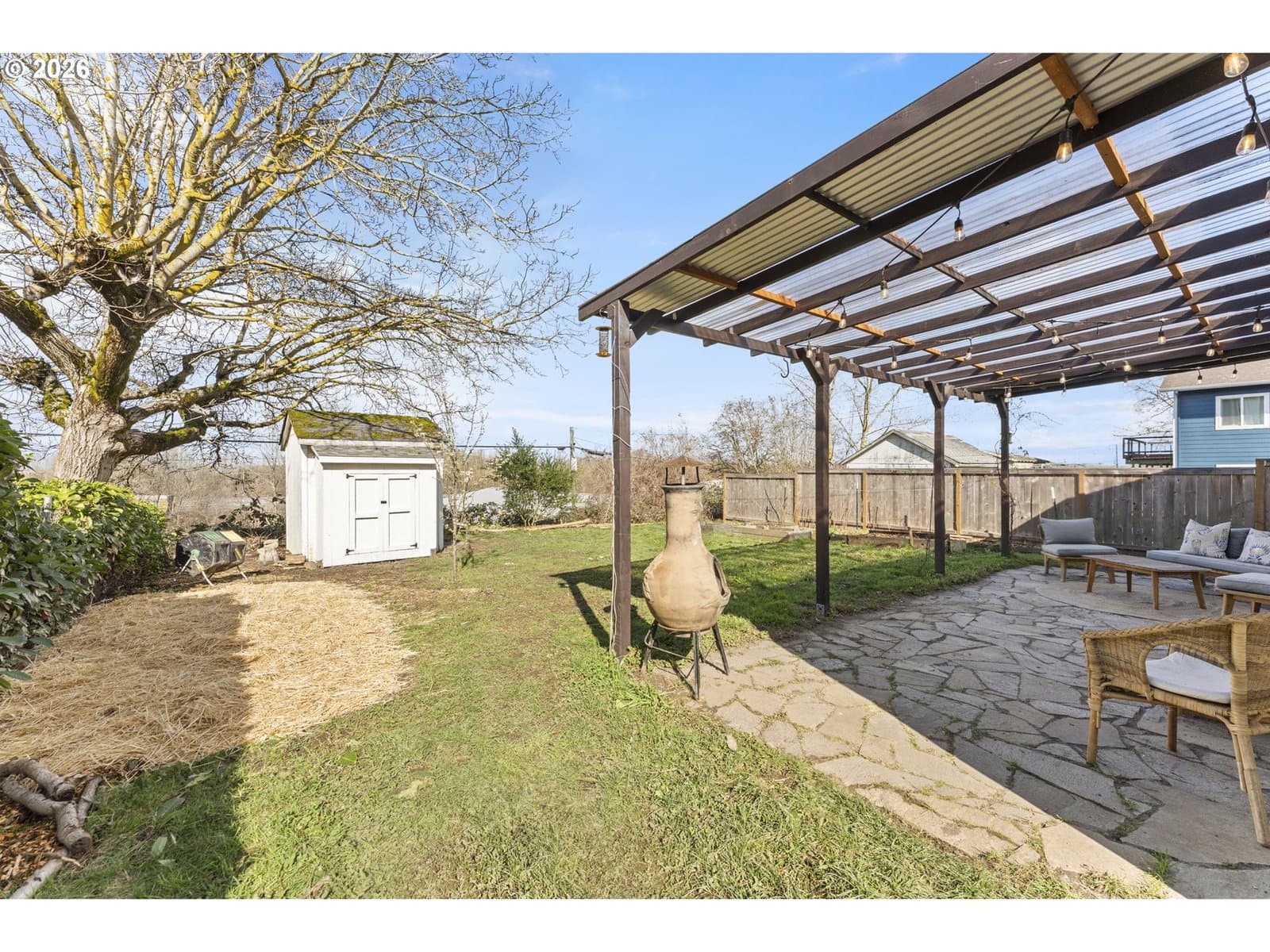 Charming and move-in ready in St. Johns! This adorable one-level home features 2 bedrooms and 1 bathroom with fresh updates throughout, including new flooring and interior paint. The inviting open kitchen flows easily into the living space, dining space and leads to a covered patio—perfect for relaxing or entertaining year-round. Step outside to a thoughtfully planted yard filled with established fruit trees, raspberries, blueberries, lingonberries, and a variety of native plants that create a beautiful and productive garden space. A large storage shed offers plenty of room for tools, bikes, and outdoor gear. Inside, the spacious primary bedroom includes a walk-in closet, and an efficient mini-split system provides comfortable heating and cooling. Located on a quiet street, this home offers a wonderful opportunity for first-time buyers, downsizers, or anyone seeking easy one-level living. [Home Energy Score = 9. HES Report at https://rpt.greenbuildingregistry.com/hes/OR10020567]