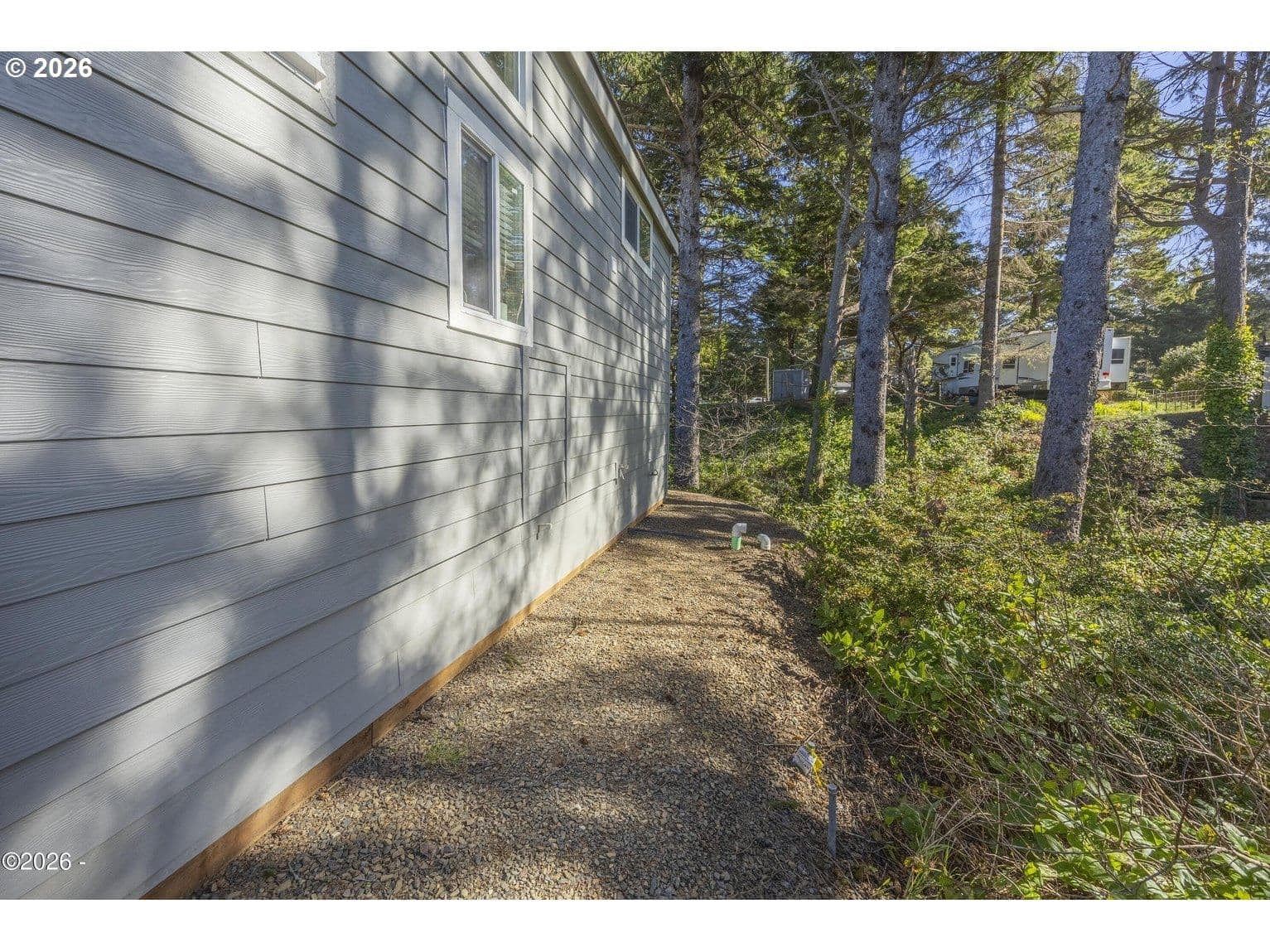 Wake up to the sound of the Pacific Ocean in this brand-new park model nestled among the trees in the sought-after Holiday Hills community in Depoe Bay — one of Oregon's most beloved coastal towns. This charming 384-square-foot bungalow offers the rare combination of private beach access, serene natural surroundings, and turn-key condition, all at an accessible price point. Inside, soaring vaulted ceilings make the space feel open and airy far beyond its footprint. A loft adds flexible bonus space — perfect for guests, a reading nook, or extra storage. The layout includes a full bedroom, a full bath, and washer/dryer hookups for everyday convenience. Surrounded by mature trees and a quiet, well-maintained community, this home is ideal for full-time coastal living or a personal getaway. A one-year home warranty gives you peace of mind from day one. Space rent is $695/month. Part-time and full-time residents welcome — no short-term rentals per community rules.