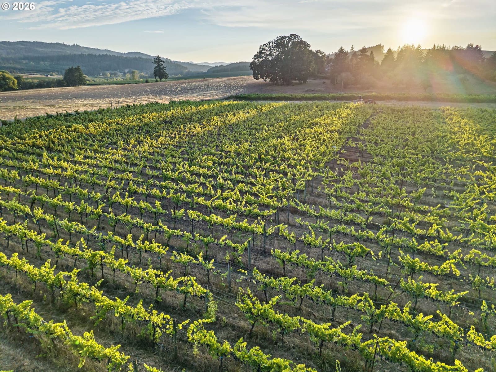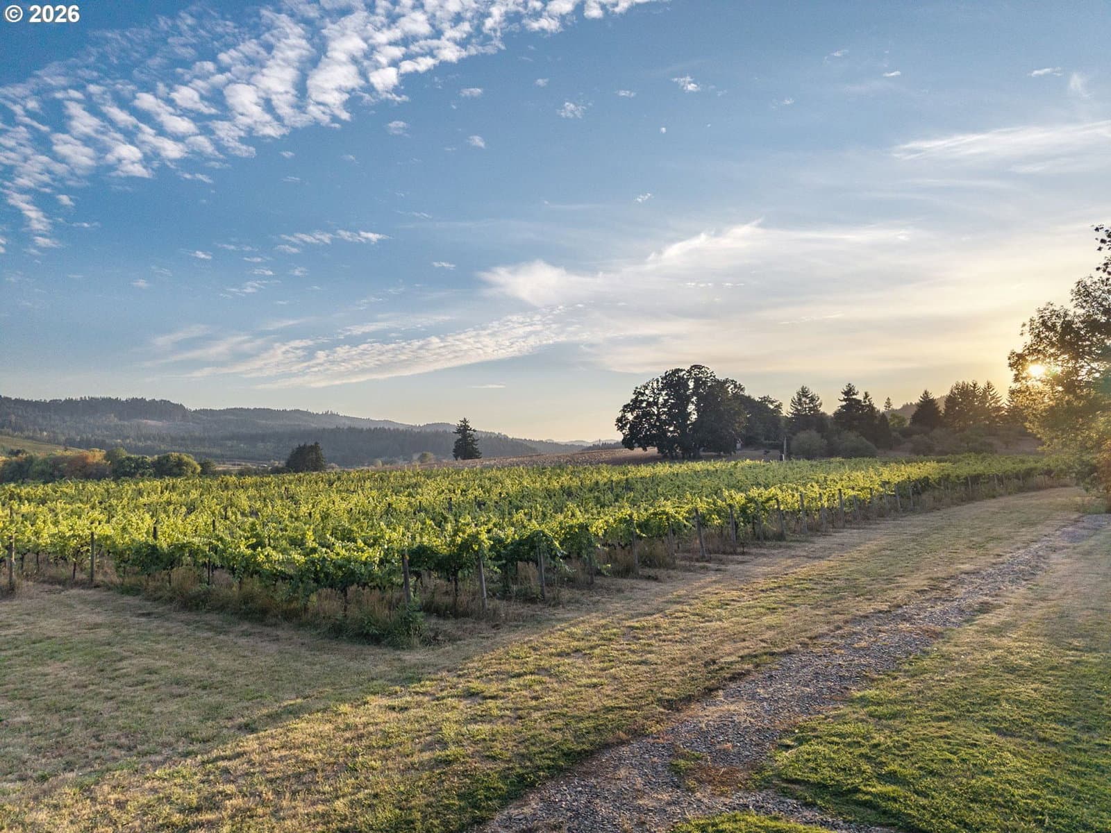 Picturesque setting for your hobby farm with useable 7 acres and beautiful home. There are dreamy views over the vineyard and valley through the south facing windows. A great room floor plan with the kitchen being a focal point is wonderful entertaining space. The den off the great room has a propane fireplace. A family room with a wet bar, concrete floors and propane fire place + french doors leading to a custom covered patio space as well. Spacious and private primary suite with a full bath and balcony overlooking the vineyard and valley. Two additional downstairs bedrooms both with no closets, but easily added. The laundry room has a pet washing station. There is also a utility room for other hobbies as well. The entire property is deer fenced with an 8ft perimeter fence. There is a workshop/studio (10x20) with electricity and patio overlooking the vineyard. The flower and garden beds around the house have underground irrigation. There is a garden area for vegetables and fruit trees. The barn/shop (1820+/- sq feet) has an animal stall currently used for chickens, 2 roll up doors, work bench and previously used cooler room for storage. Property is 7 acres with less than 4 acres of vineyard comprised of primarily Pinot Noir grapes and a smaller amount of Syrah grapes.Property is zoned RR2. Located 22 mi to Eugene and 17 miles to Corvallis.