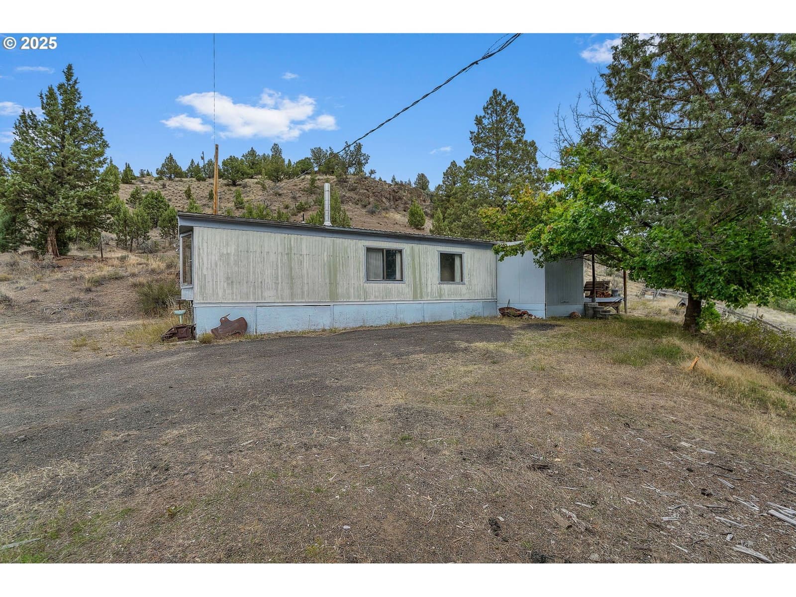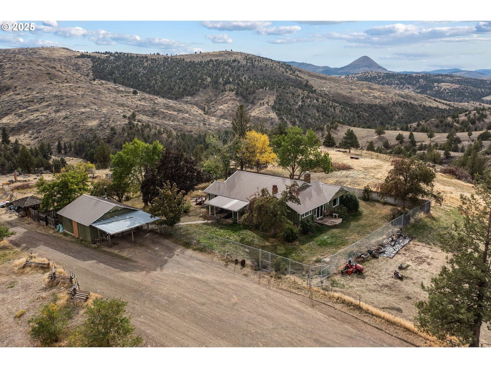 Rare opportunity to own 82+ acres in Mitchell, Oregon! This versatile property includes 35 acres of water rights, is fully fenced and cross fenced, and spans 3 separate tax parcels. You'll find a rustic but functional barn, multiple shops, machine sheds, and hay storage- everything you'll need for livestock, farming, or equipment. The main home sits proudly on a hilltop, offering sweeping panoramic views from every window. Inside, you'll find 3 bedrooms, 2 bathrooms, a large open floorplan, multiple bonus rooms, and 3 heating/cooling sources: woodstove, oil monitor, and full HVAC with A/C. Bonus: a second home on the property with its own well, meter, and septic- ideal for multi-generational living, guest quarters, or rental income. Just minutes from downtown Mitchell and the Painted Hills, this property is perfect for those seeking wide open space, privacy and potential.