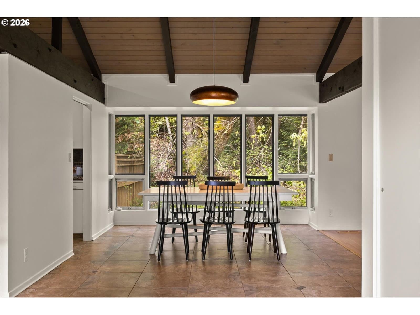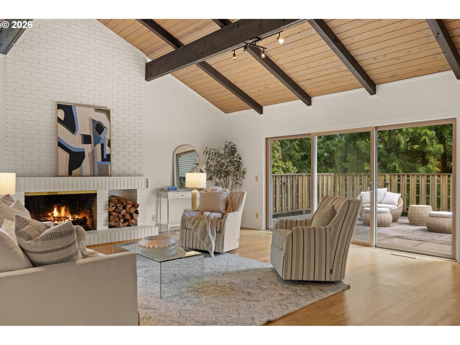 Mid-century retreat in prestigious Forest Highlands neighborhood. Tucked into a serene, tree-lined enclave just moments from Tryon Creek State Park, this 1962-built home offers the rare combination of architectural character, natural beauty, and meaningful system upgrades—creating an ideal canvas for your personal vision. Inside, classic mid-century design elements take center stage: soaring vaulted ceilings, exposed beams, and warm tongue-and-groove detailing that bring volume, texture, and timeless style. With 5 bedrooms, 3 full baths, and 4,146 square feet, the floor plan offers flexibility for a variety of living arrangements, creative spaces, or multi-generational needs. The heavy lifting has already been done. A meticulously maintained concrete tile roof, updated HVAC and water heater, electrical improvements, whole-house generator, updated water main, repaired sewer line, and refreshed front deck framing provide peace of mind—freeing you to focus on the design and style of the home. Separate exterior entrance to the lower level opens the door to a distinct living area—well-suited for multi-generational living, guest quarters, or flexible use depending on your needs. Wooded exteriors surrounding a calming back yard with apple, fig, pear and plum trees as well as producing blueberry bushes. Backing to protected greenspace within the Tryon Creek watershed, the property offers a tranquil, almost meditative connection to nature—yet remains just minutes from trailheads, bustling First Addition Lake Oswego, and top-rated Forest Hills Elementary School. Surrounded by luxury homes in one of the area’s most sought after neighborhoods, this is a rare opportunity to bring your vision to life in a setting that supports it. A compelling blend of location, architecture, and investment opportunity — ready for its next chapter.