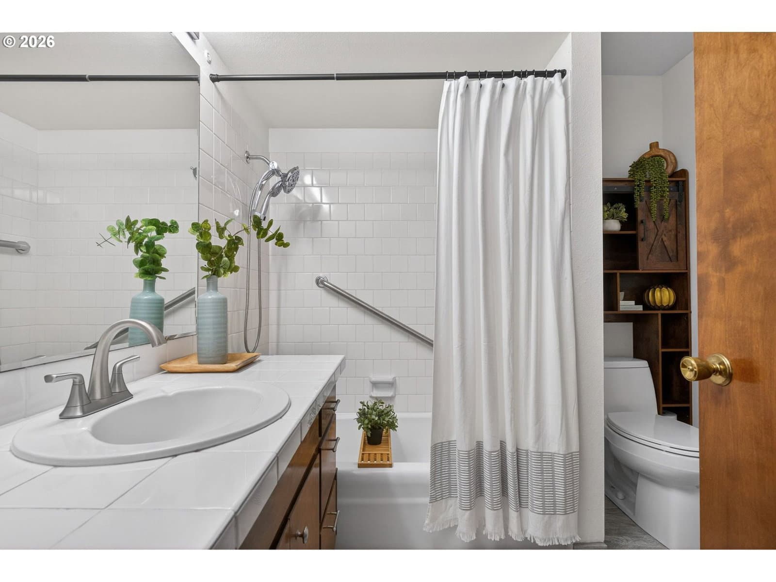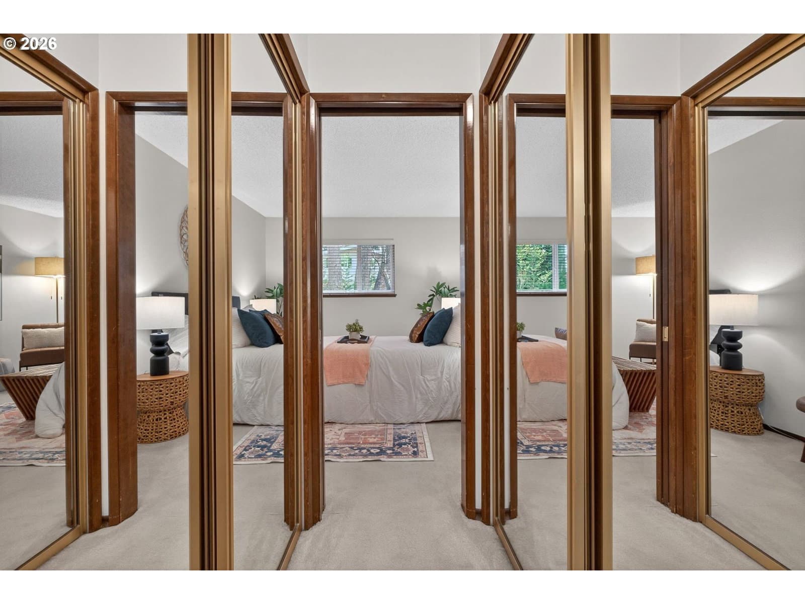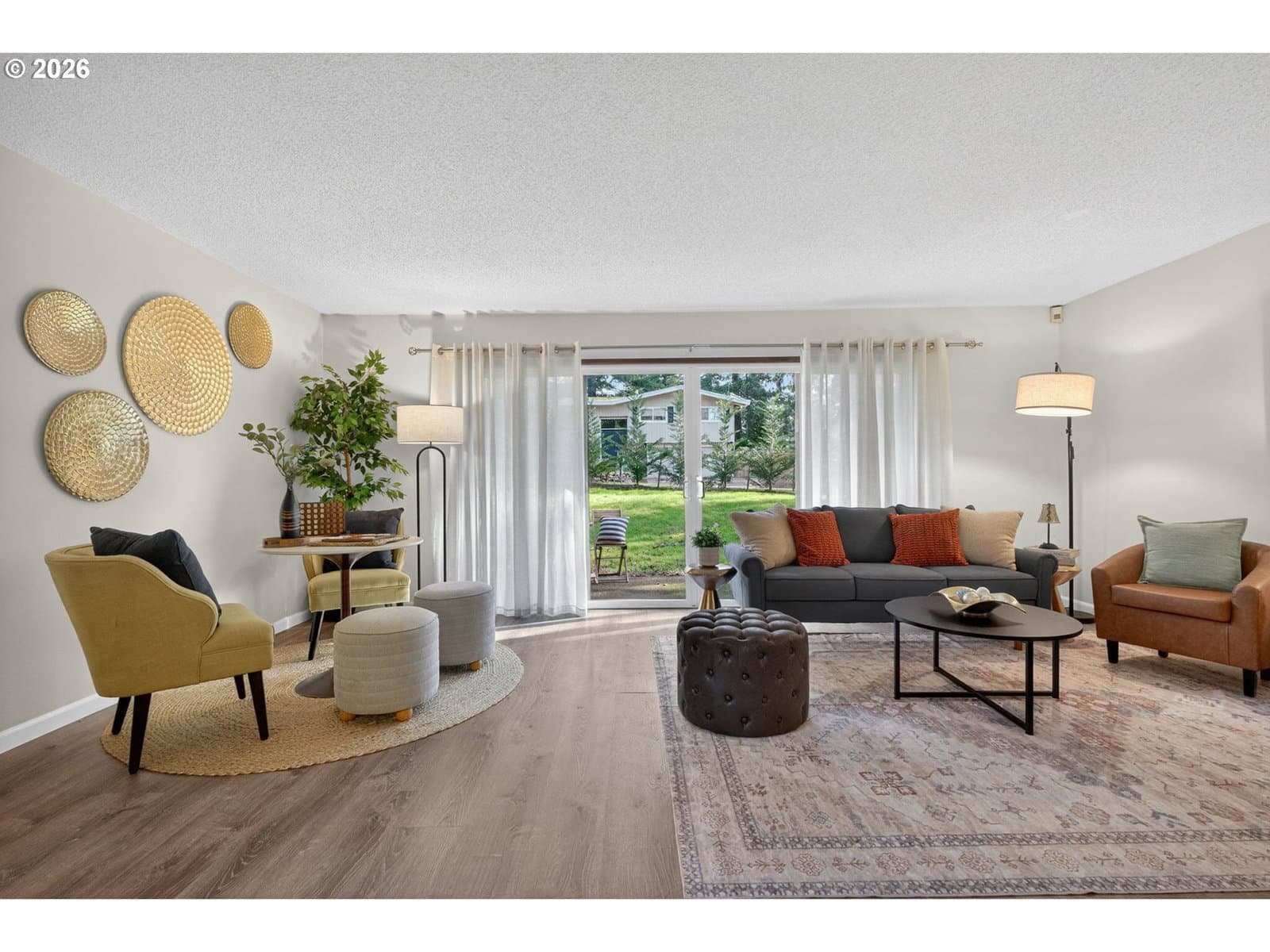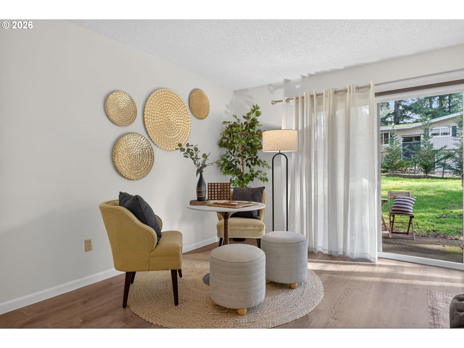 Enjoy low-maintenance, one-level living in Beaverton’s coveted Hyland Hills Townhome Estates. This delightful end unit is tucked among park-like grounds, instantly taking you from daily bustle to peaceful retreat. Enter through a private, gated courtyard that sets a welcoming tone before arriving at the carved wooden front door with original textured-glass sidelights- one of many vintage details that give this home its character. The entry introduces a smart, spacious floor plan that balances openness with definition, allowing each space to naturally connect while remaining distinct. The well-equipped kitchen offers ample storage, a pantry, a laundry closet, and space for an eating nook. The dedicated dining room includes a wet bar that's perfect for entertaining, a nightly unwind, or setting up a dedicated coffee station. Flowing from there, the living room is anchored by a cozy gas fireplace and a wall of windows with a double-sliding door to the back patio and green space. Down the hall, two generous bedrooms are thoughtfully separated for privacy. The primary suite features a dual walk-thru closet area and an ensuite with a newer walk-in shower, while a full hall bathroom serves guests and the large secondary bedroom that's perfect for guest space or a home office. Across the courtyard, the oversized two-car garage adds exceptional versatility with a built-in workstation and abundant storage. Hyland Hills residents enjoy a community pool, athletic court, and private clubhouse, along with tree-lined walking paths throughout the neighborhood. Conveniently located minutes from Murrayhill, Nike, trails, parks, shops, restaurants, major commuter routes, and the nearby Hyland Woods Forest Park for outdoor escapes. HOA dues are $565/mo due on the first of the month, and a one-time $2k transfer fee will apply to the buyer. HOA handles exterior maintenance other than windows and doors.