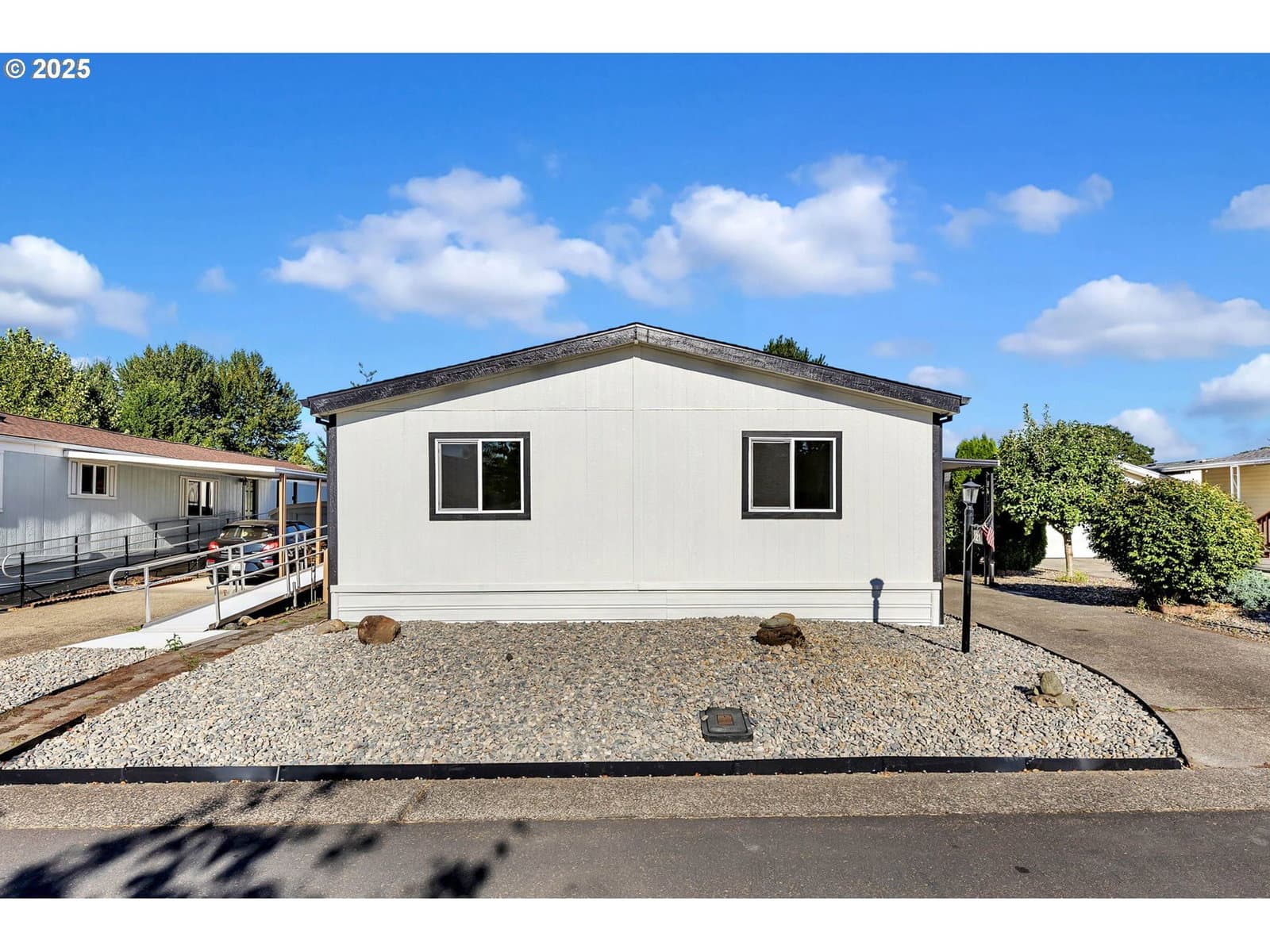 Welcome to your beautifully renovated dream home! This meticulously updated property offers a fresh, modern feel with high-end finishes throughout. Step into the stunning new kitchen, complete with brand-new appliances. The fully remodeled bathrooms are equally impressive, featuring elegant fixtures and finishes. Enjoy all-new flooring and fresh interior paint that give the entire home a crisp, clean look. A new roof and skylights provide added peace of mind, while abundant natural light brightens both the formal living room and the cozy family room—perfectly accented by a charming wood-burning fireplace. Primary bedroom has ensuite bath with walk in shower. Outside, you'll find a low-maintenance yard ideal for easy living. Wheelchair ramp on on side of home. Monthly space rent of $900.00 per month. As part of the community, enjoy access to a well-appointed clubhouse featuring a pool, spacious kitchen, library, meeting room, and more!