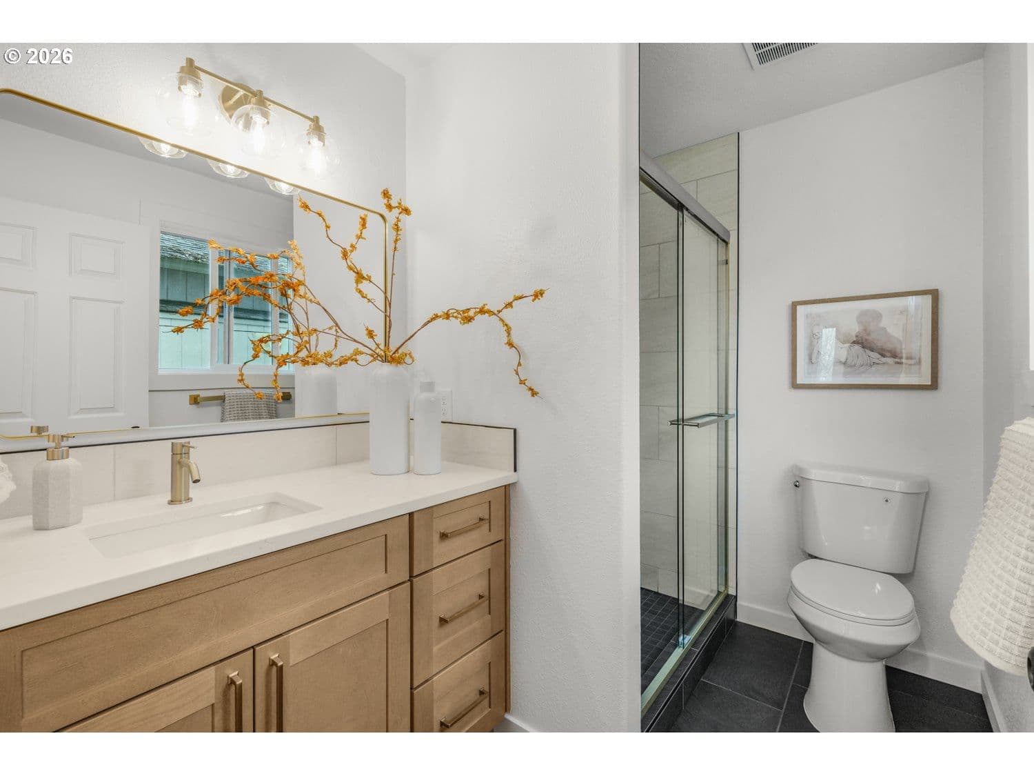 Fully remodeled and move-in ready, this stunning 3-bedroom, 2-bath home offers a brand new kitchen, open concept layout, and designer finishes throughout. Thoughtfully updated from top to bottom, every detail has been carefully selected to blend modern style with everyday comfort. With 1,938 square feet of beautifully refreshed single-level living, this home is truly turnkey.The heart of the home features a brand new kitchen complete with quartz countertops, luxury vinyl plank flooring, a butler pantry, and seamless flow into the spacious living and dining areas, perfect for entertaining. The oversized bonus/family room provides incredible flexibility for a media space, playroom, or home theater.The private primary suite is a true retreat with vaulted ceilings, a generous walk-in closet, and a spa inspired en suite featuring a modern tile walk-in shower and stylish finishes.Step outside to enjoy fresh landscaping, a large fenced backyard, and an expansive deck ideal for summer gatherings, relaxing evenings, or weekend BBQs with gas hookup. Additional updates include a brand new roof (2019), giving peace of mind for years to come.Conveniently located with quick access to I-5 and SR-500, this home offers easy commuting while still providing comfort, space, and modern design in a beautifully updated setting.