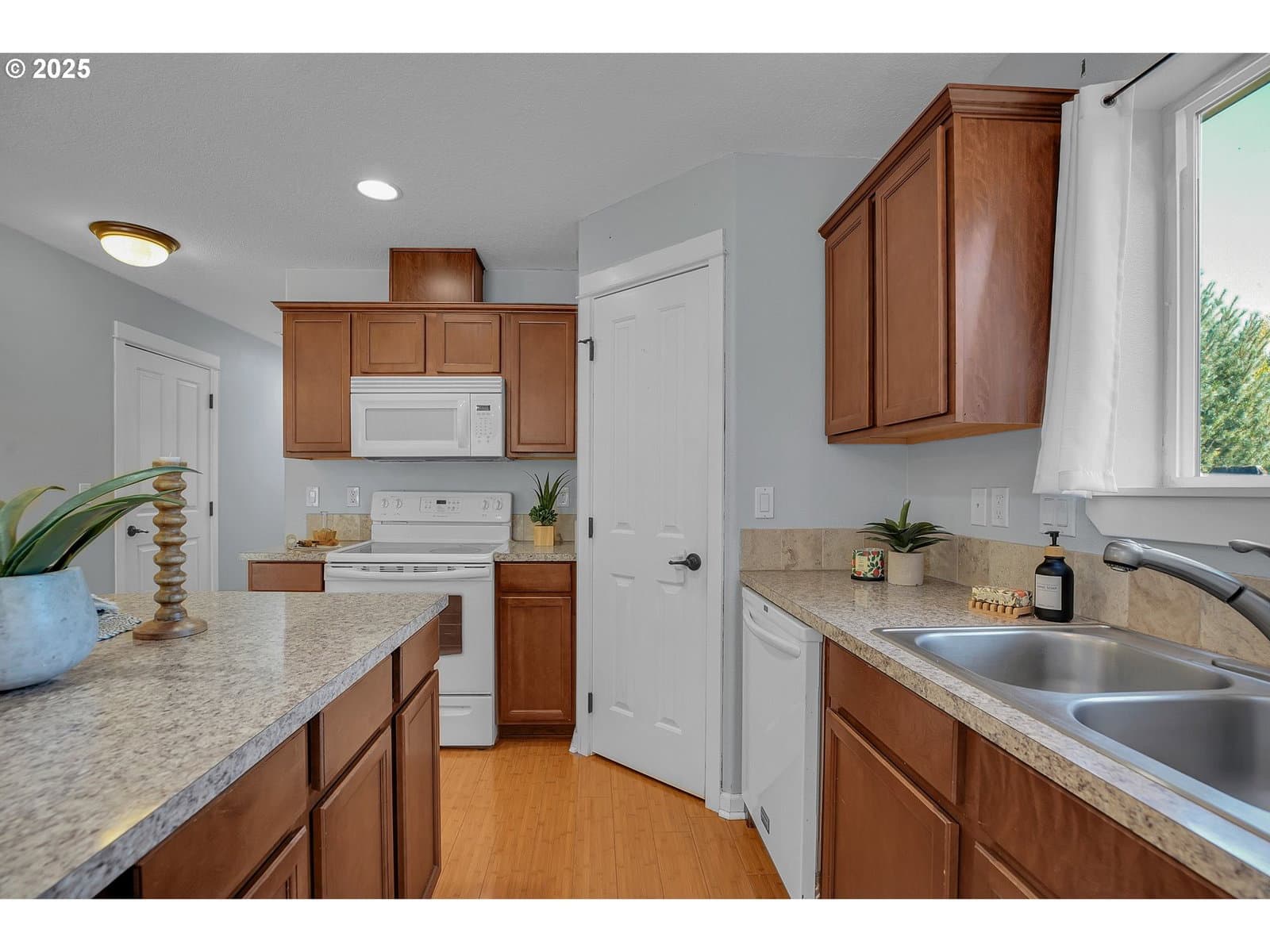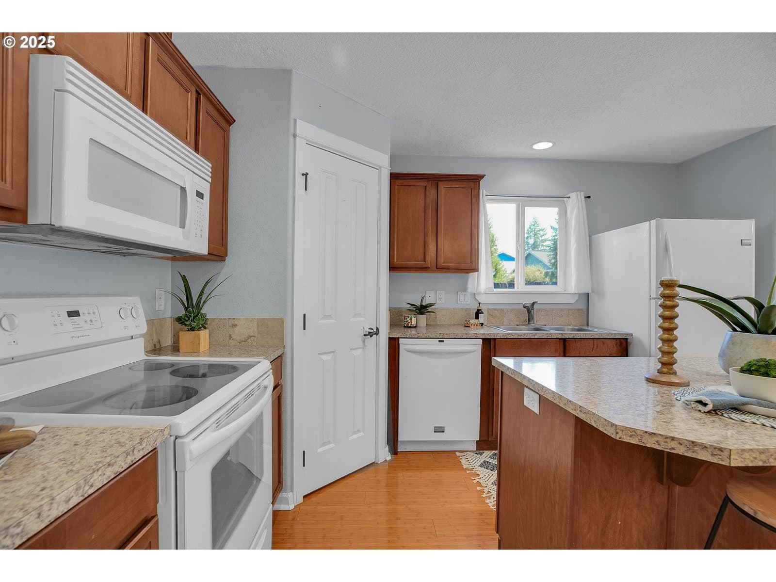 Charming, single-level home in Forest Grove. Welcome to this well maintained 3-bedroom, 2-bathroom home nestled in a quiet Forest Grove neighborhood. Designed for comfort and convenience, this single-level residence features an open floorplan that effortlessly connects the living, dining, and kitchen areas—perfect for entertaining or everyday living. Step inside to find bamboo flooring throughout the main living spaces, creating a warm and modern feel. The kitchen comes fully equipped with appliances included, making it truly move-in ready. Enjoy abundant natural light and a seamless indoor-outdoor flow to the back patio, ideal for relaxing or hosting summer barbecues. The backyard is low maintenance but still offers raised garden beds ready for your favorite vegetables and herbs. A new roof adds peace of mind and long-term value to this well-cared-for home. Located just minutes from parks, schools, shops, and downtown Forest Grove, this home offers the perfect balance of suburban tranquility and urban convenience. Don't miss your chance to own this wonderful home —schedule a showing today! "Common area" is the park next door