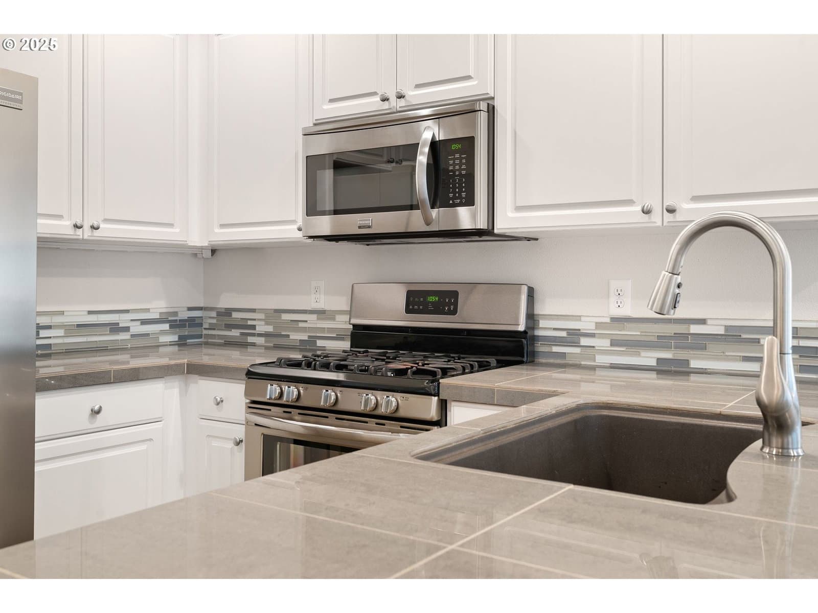 Tucked within Beaverton’s highly desirable Sexton Mountain neighborhood, this beautifully maintained townhome perfectly blends sophistication, comfort, and modern design. Sunlight pours through expansive windows, highlighting rich engineered hardwood floors and elegant tile finishes that create a bright, welcoming atmosphere. Designed for both everyday enjoyment and effortless entertaining, the chef-inspired kitchen boasts sleek stainless-steel appliances, polished tile countertops, and a stylish backsplash. The open-concept main level flows seamlessly into the dining and living areas—ideal for gatherings or quiet mornings with coffee and natural light.Upstairs, the primary suite offers a generous walk-in closet and a spa-like bath with dual vanities and refined finishes. A spacious second bedroom with its own full bath provides excellent flexibility for guests, a home office, or family living. Additional features include an oversized two-car garage with ample storage, extra space adjacent to the balcony, and convenient in-unit laundry. Ideally located close to Nike, Intel, Progress Ridge, and scenic parks, this home offers low-maintenance living and contemporary style in one of Beaverton’s most sought-after communities.