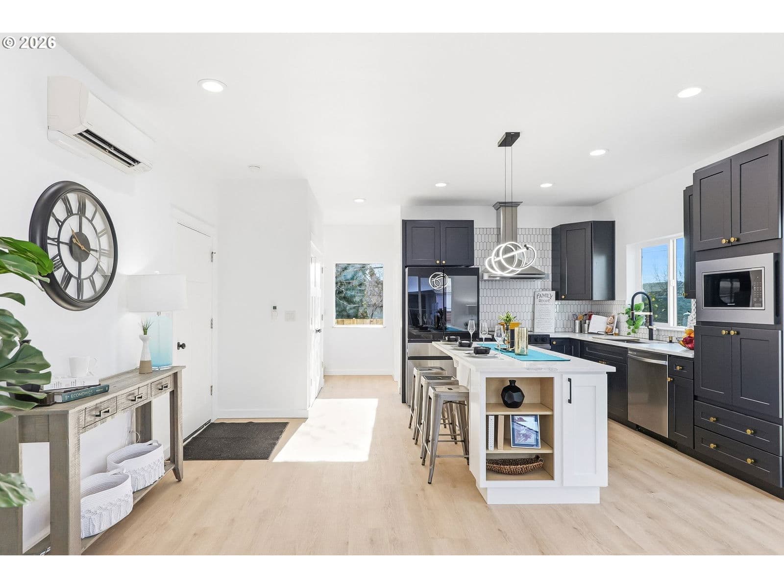 SUPERB location! close-in East side neighborhood just a stroll away from restaurants, shops and entertainment. Beautiful Scandinavian design with tall ceilings, boasting lavish natural light and opulent finishes throughout. Bright and open concept that features a stunning cook’s kitchen w/island, custom tile work, pantry, custom cabinetry, SS appliances and a large garage. Main bedroom w/private ensuite bathroom and walk-in closet. Thoughtfully designed with sustainability in mind, HI EF mini splits offer heating and cooling, whole house ventilation system, HI EF heat pump WH, Natural and Reclaimed wood used throughout.