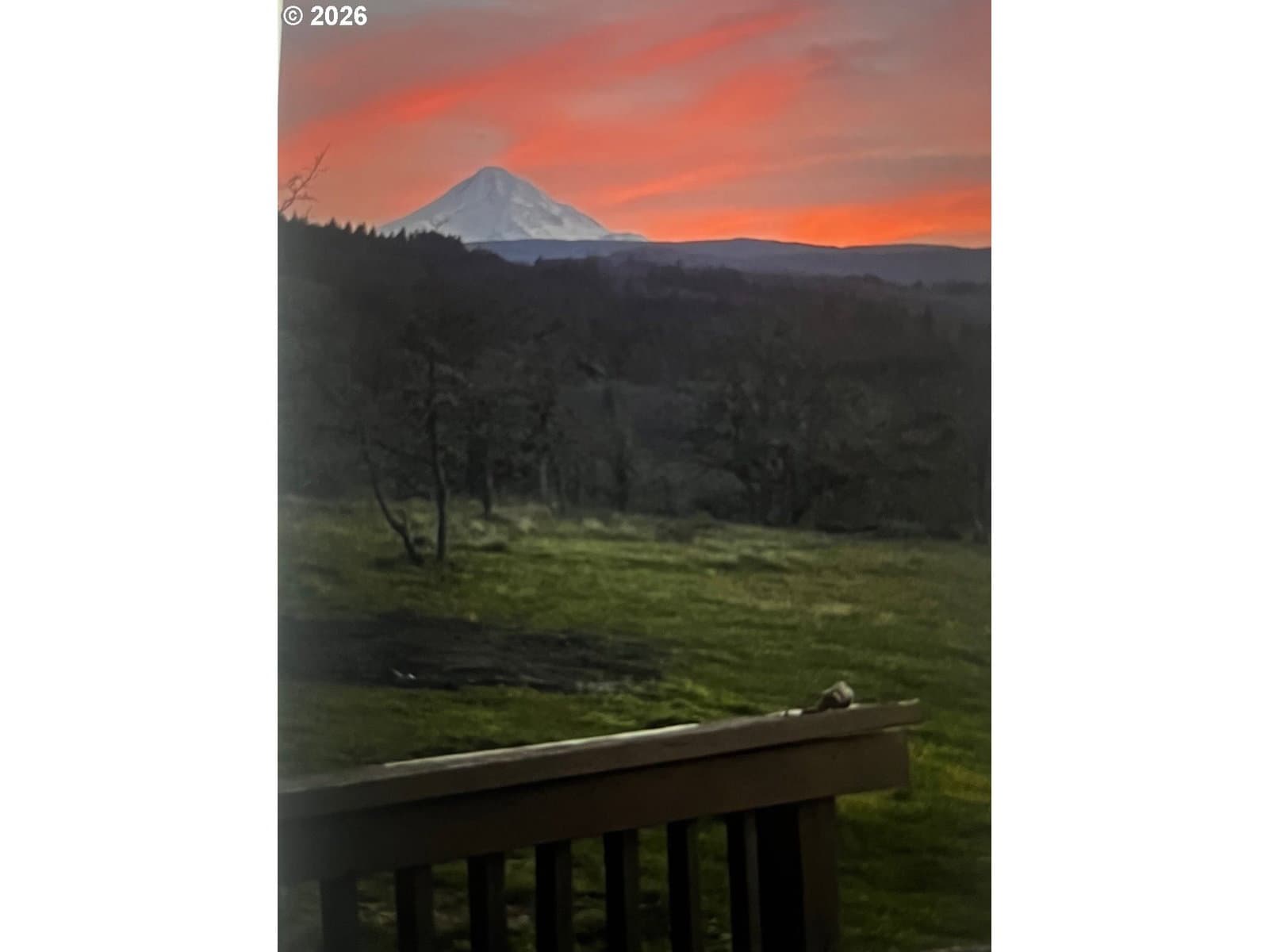 Set on 9.77 acres in scenic Mosier, this 3-bedroom, 2-bath home offers a rare opportunity to own a slice of the Columbia River Gorge with breathtaking surroundings in every direction. With 1,323 square feet, the home has been updated through the years, featuring improvements to plumbing, roof, and windows, along with butcher block countertops, stainless steel appliances, and a dual vanity in the primary suite.The true highlight of this property is the setting, take in stunning, unobstructed views of Mount Hood and the rolling hills of the Underwood Hills, creating a picturesque landscape that changes beautifully with the seasons. Wide open skies, natural terrain, and peaceful surroundings make this property feel like a private retreat.The land offers a blend of usability and charm, featuring two separate driveways for added convenience and access, a large yard framed by mature trees, a fenced garden area designed to keep deer out, and two outbuildings providing space for hobbies, storage, or creative use.Whether you choose to enjoy the home as it is or take advantage of the setting to build your forever home, this property presents a unique opportunity. Acreage with views like this rarely comes available in such a desirable Gorge location.If you’ve been searching for space, privacy, and iconic views, this property captures it all just a short drive from the amenities of Hood River and The Dalles while offering a quiet, scenic lifestyle that’s hard to find.