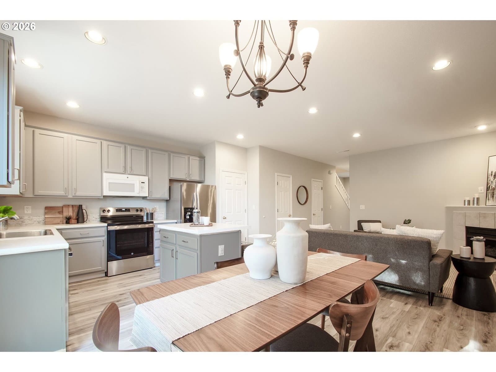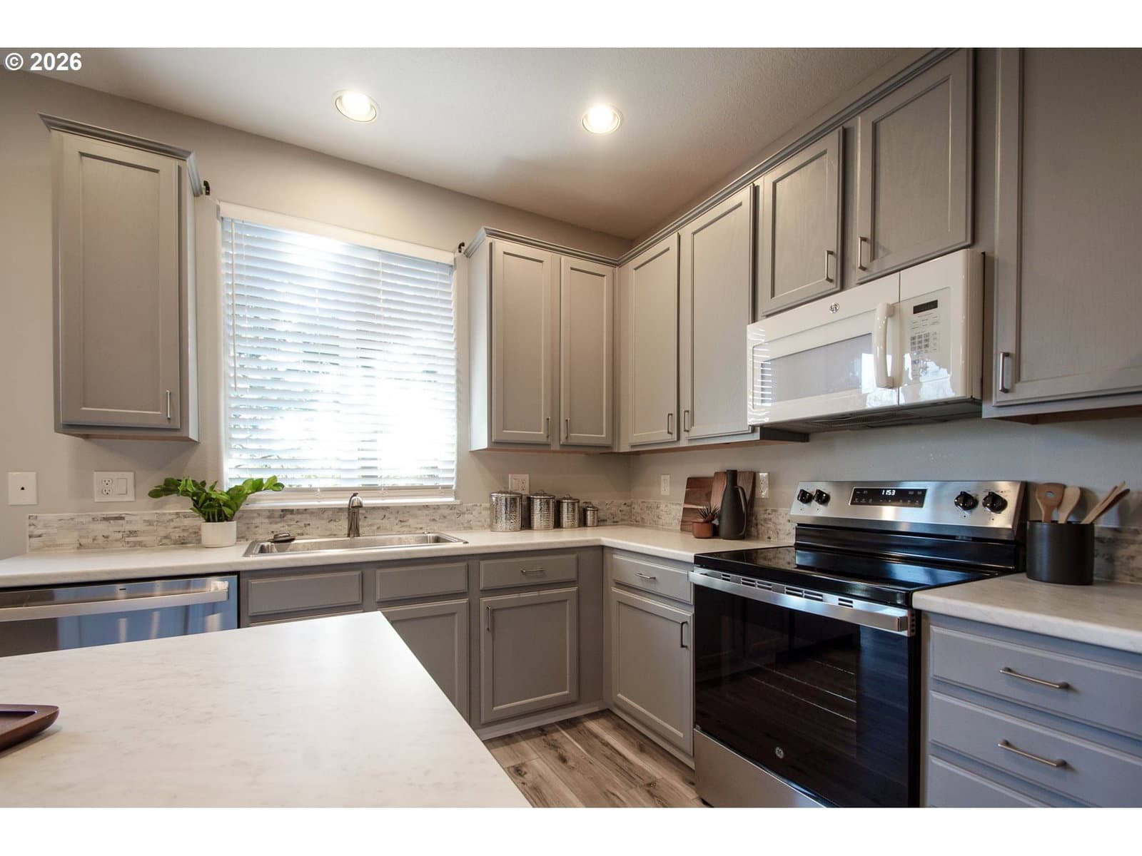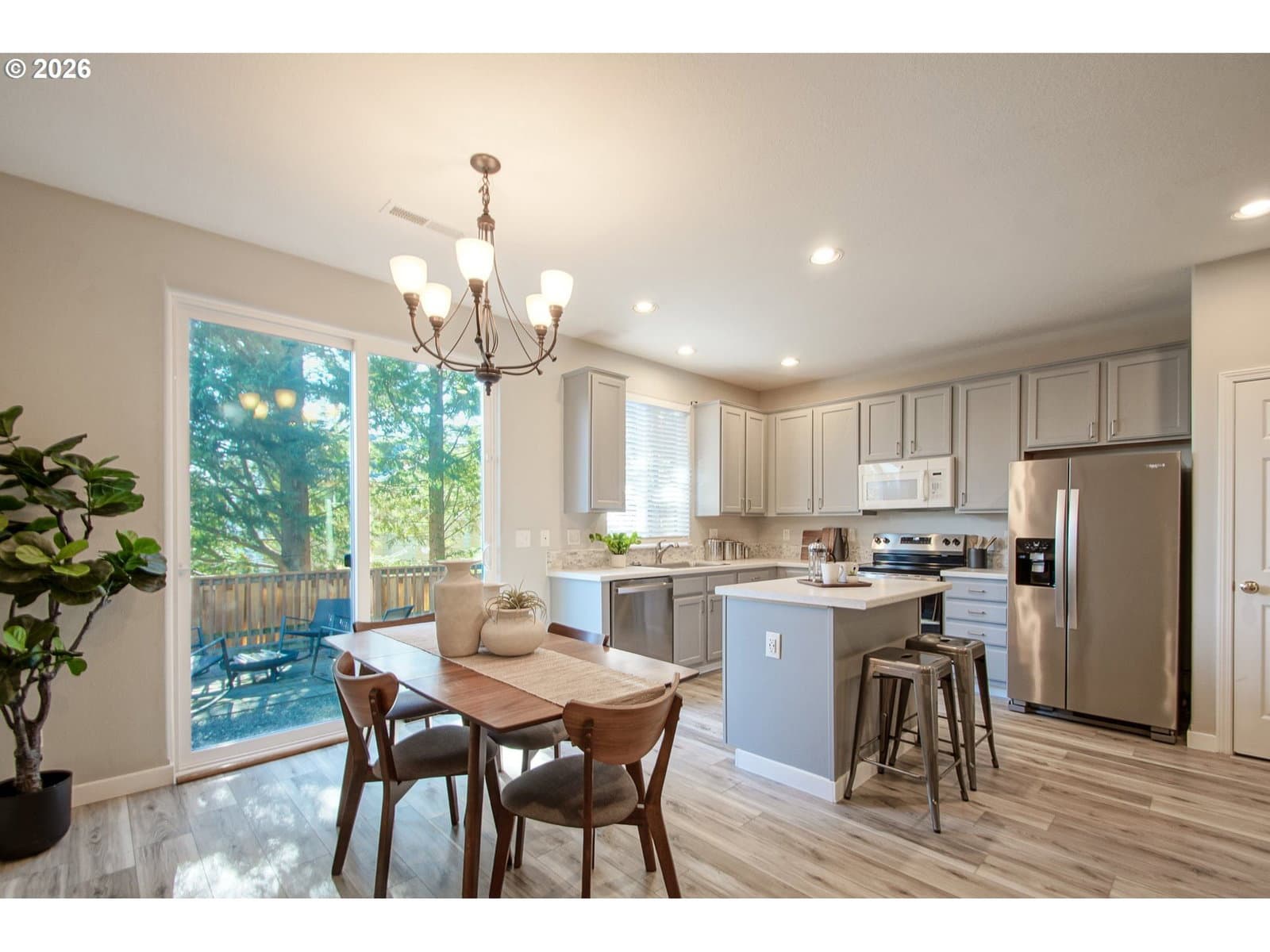 Open Sat 2-4! The beautiful updates make this home stand out, and the open floorplan makes living easy! You'll appreciate that this open kitchen has had a complete makeover (2024) with new counters, new sink and fixtures, stainless appliances, and fresh painted cabs. (Kitchen is plumbed for gas, BTW.) All three baths have also been refreshed with new fixtures and tile floors, and a completely luxe remodel of the primary bath in 2025. That bath is so pretty, like a fancy hotel! Throughout the home, new luxury vinyl plank floors are in all rooms (2024), new carpet on the stairs (2025), and fresh interior paint. The new slider (2024) opens from the dining room out to the fenced private backyard, which is a great space for outdoor cooking, dining alfresco, container gardening or splashing in the kiddie pool on the patio. The exterior is maintained by the HOA including new roofs in 2022, fresh exterior paint in 2023, and front yard landscaping. This tree lined neighborhood is a gem with highly rated Beaverton schools, close to Graf Meadows Park, the Rock Creek trail, all that PCC Rock Creek has to offer, and Bethany Village nearby! Get in and see it...offer deadline is Mon, Feb 9 at noon!