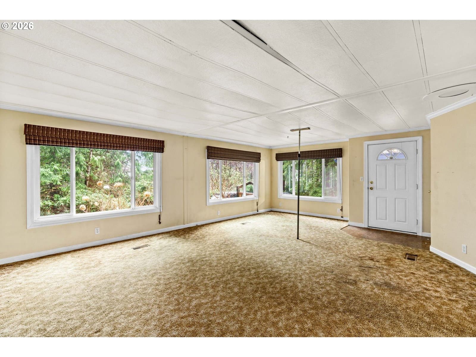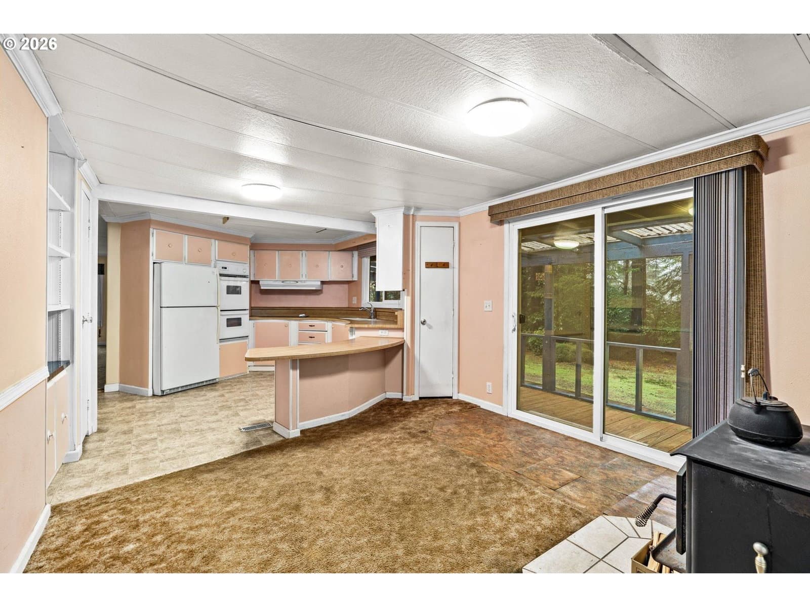 Tucked among towering evergreens just minutes from the coast, this property offers a rare combination: land, setting, and opportunity at an approachable price. The extended, private drive opens to a home set back from the road, creating a sense of retreat from the very first glance. The oversized garage adds flexibility: workshop, storage, hobby space, or gear headquarters for weekends at the lake and dunes.Inside, you’ll find a layout with a comfortable, natural flow. The living area is generously sized and filled with light, while the kitchen features a distinctive curved breakfast bar that invites conversation and casual mornings with coffee in hand. Large vinyl windows frame greenery in nearly every direction, reinforcing the peaceful, evergreen setting.Yes, it needs work. Flooring, finishes, and cosmetic updates will make a dramatic difference here. But that’s the point. This is your chance to create equity with intention to choose your colors, your textures, your upgrades. Instead of paying for someone else’s remodel, you get to design your own.The lot provides breathing room and privacy, with space for gardening, pets, or simply enjoying the quiet rhythm of coastal living. Whether you’re drawn to nearby lakes, the Oregon Dunes, or the coastal charm, this property positions you close to it all while feeling wonderfully tucked away. Washer and dryer are excluded from sale.
