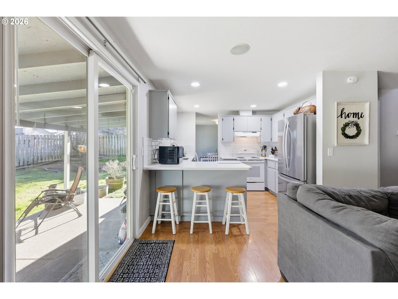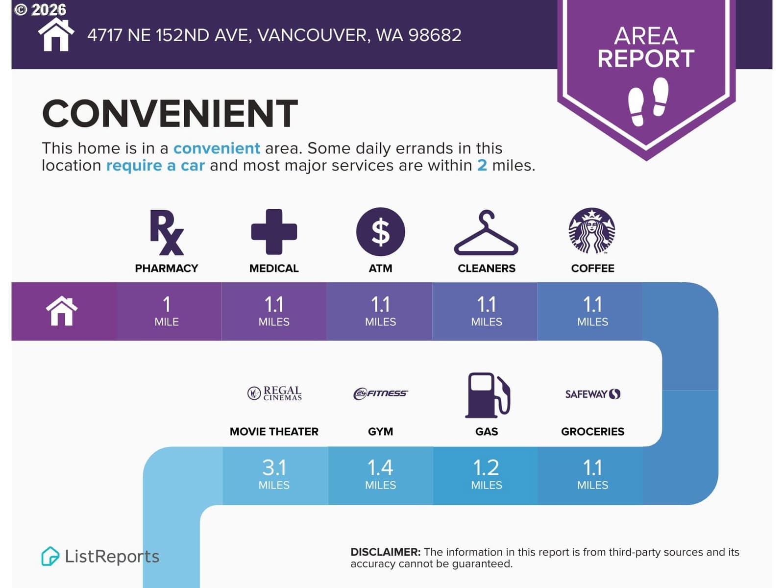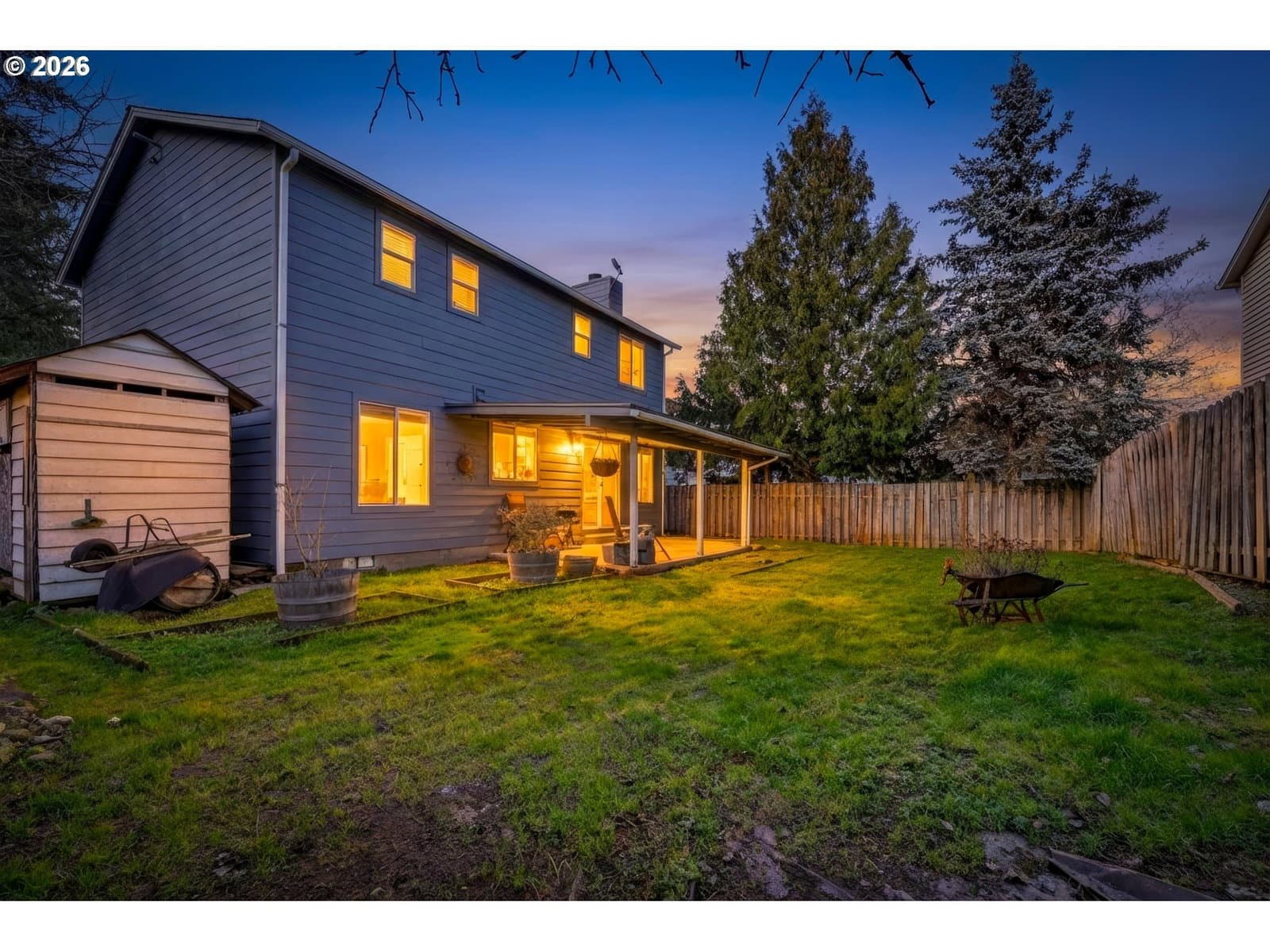 This two-story home offers 1,629 square feet of living space. The MAIN LEVEL features easy-care laminate flooring throughout the primary living areas, including a family room centered around a fireplace and equipped with a ceiling fan. The updated kitchen includes several recent improvements, such as freshly painted cabinets, new solid-surface countertops, and tile backsplash. Functional updates within the last two years include a new dishwasher and refrigerator, as well as fresh paint in the kitchen and bathroom. UPSTAIRS - All three bedrooms are located on the carpeted upper level. The primary bedroom has a ceiling fan. For year-round climate control, the home is equipped with a forced air furnace and central air conditioning. OUTDOOR features include a covered front porch and a fully fenced backyard. The rear of the home offers a large, covered deck, a spacious lawn, and a storage shed for tools or equipment. A two-car garage with an automatic opener provides internal parking and additional storage options. The property is located in the Evergreen Public Schools district and is within 4.5 miles of several local parks, including Burnt Bridge Creek School Park, Hanna Acres Park, Clearmeadows Park, and Heritage Park.