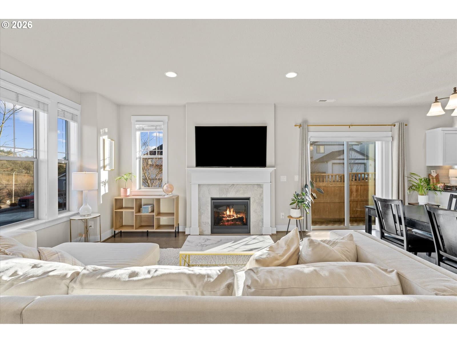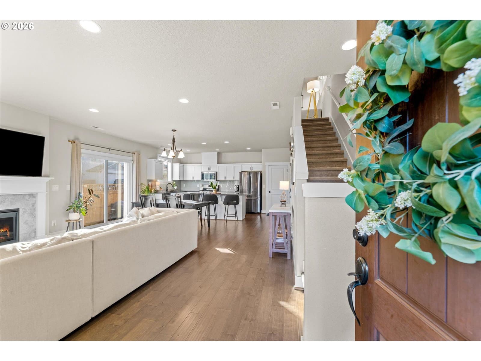 OPEN SATURDAY 12-2!!!! Sought-after River Terrace neighborhood at an affordable price on a corner lot. Enjoy the community center featuring a gym, recreation center, playground, and pool, all included in the HOA dues. Solar panels provide for summer electric bills as low as $3 a month. The main level offers laminate flooring throughout and a great-room floor plan with an open kitchen, dining, and living area with a gas fireplace. The kitchen features white cabinets, quartz countertops, an eat-at island, stainless steel appliances, and a gas range. The upper level includes a primary suite with walk-in closet and private bath, three additional bedrooms, and a utility room. Private side yard off the dining area with low maintainence turf and a custom patio. Move-in ready!
