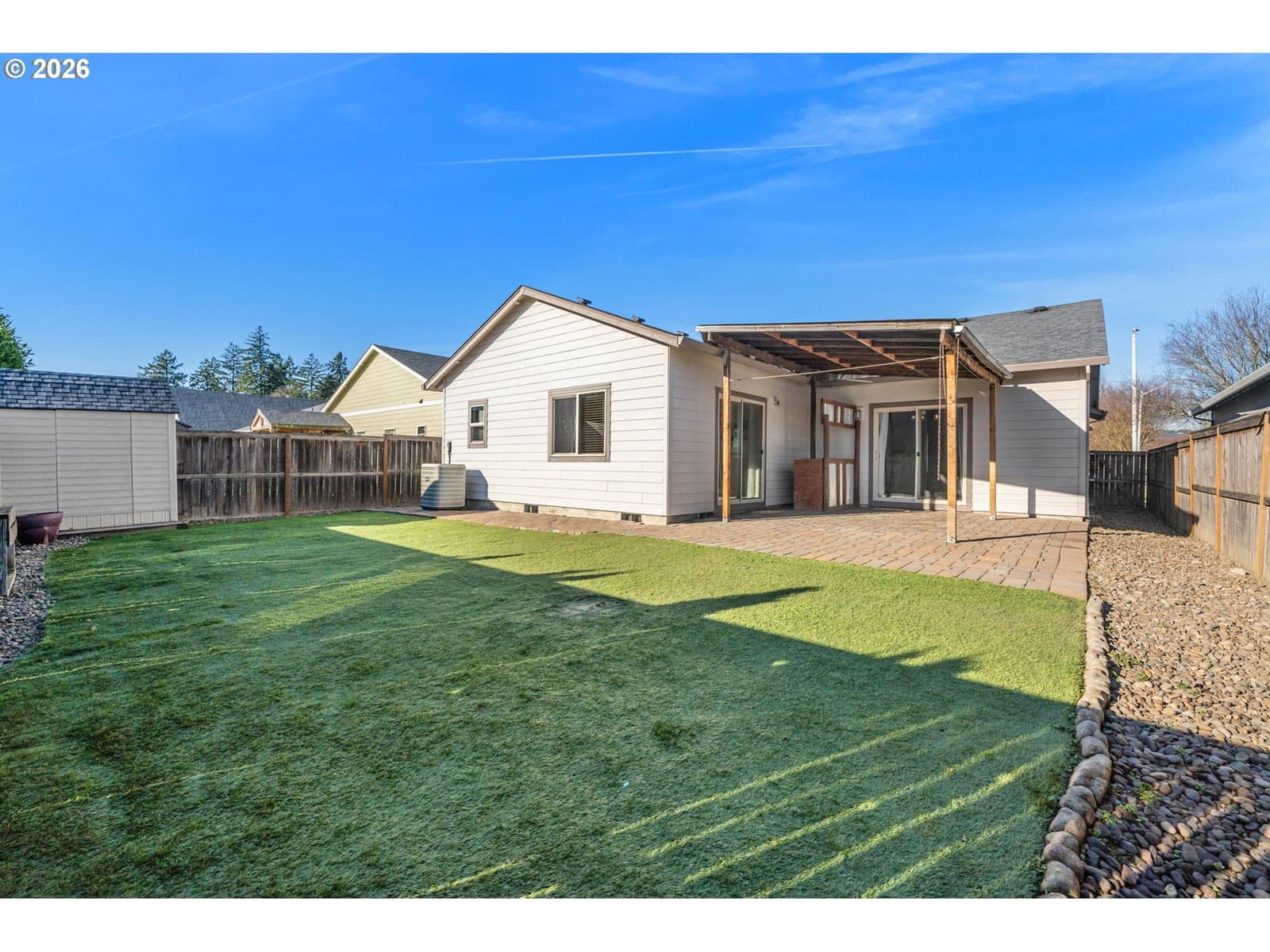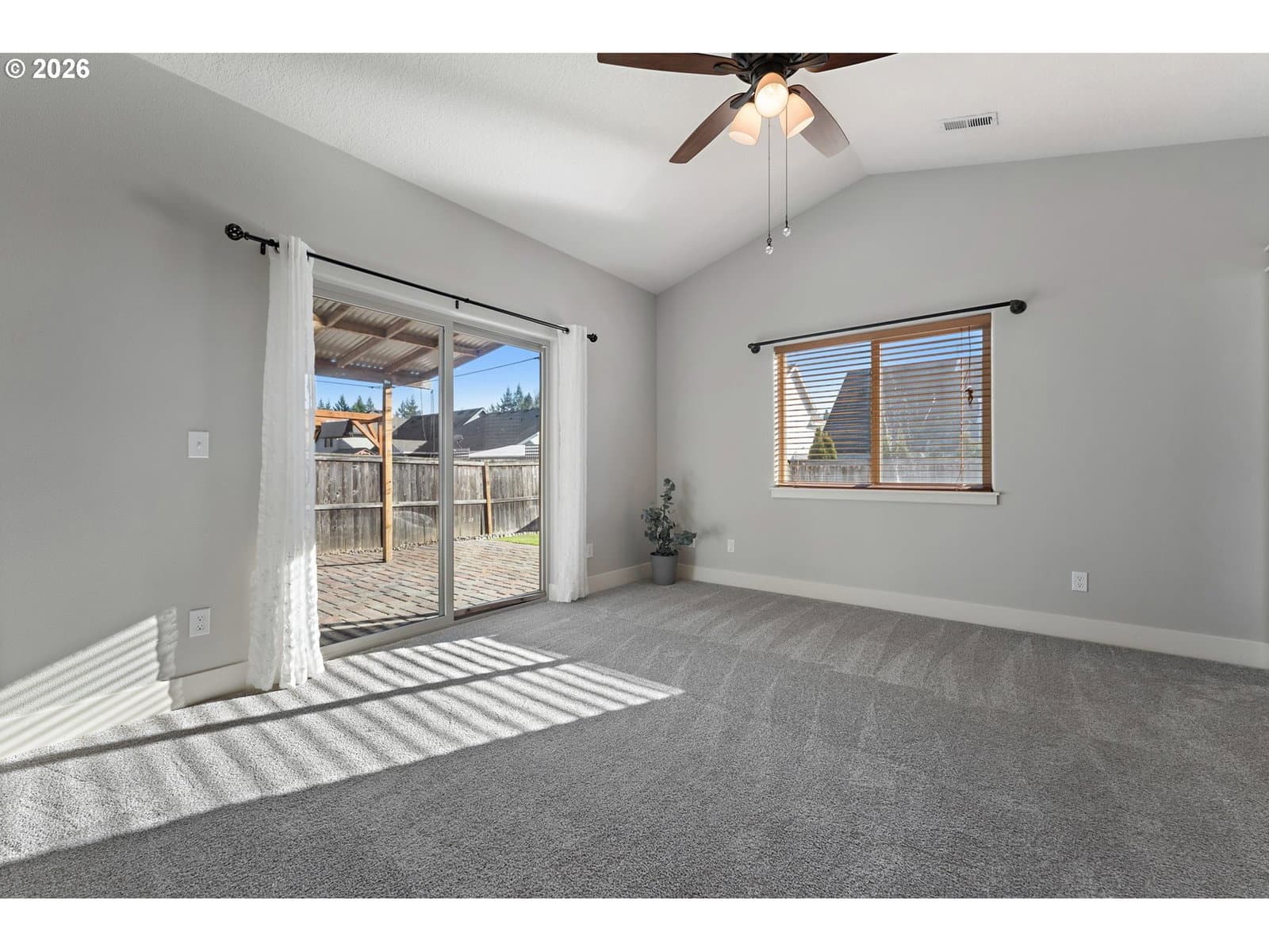 Sharp well maintained 1-level move-in ready and very close distance to Friends Park. Open floor plan, vaulted ceilings, laminate flooring, newer carpet & interior paint( 2021), covered patio & fenced yard. Kitchen includes newer range (2025) & newer Refrigerator (2024) as well as stainless appliances, granite counters & tile backsplash. Vaulted Primary bedroom & bath with soakingtub/shower combo, walk-in closet & sliding glass doors to covered patio. Nice sized utility room. No wasted space in this floor plan.