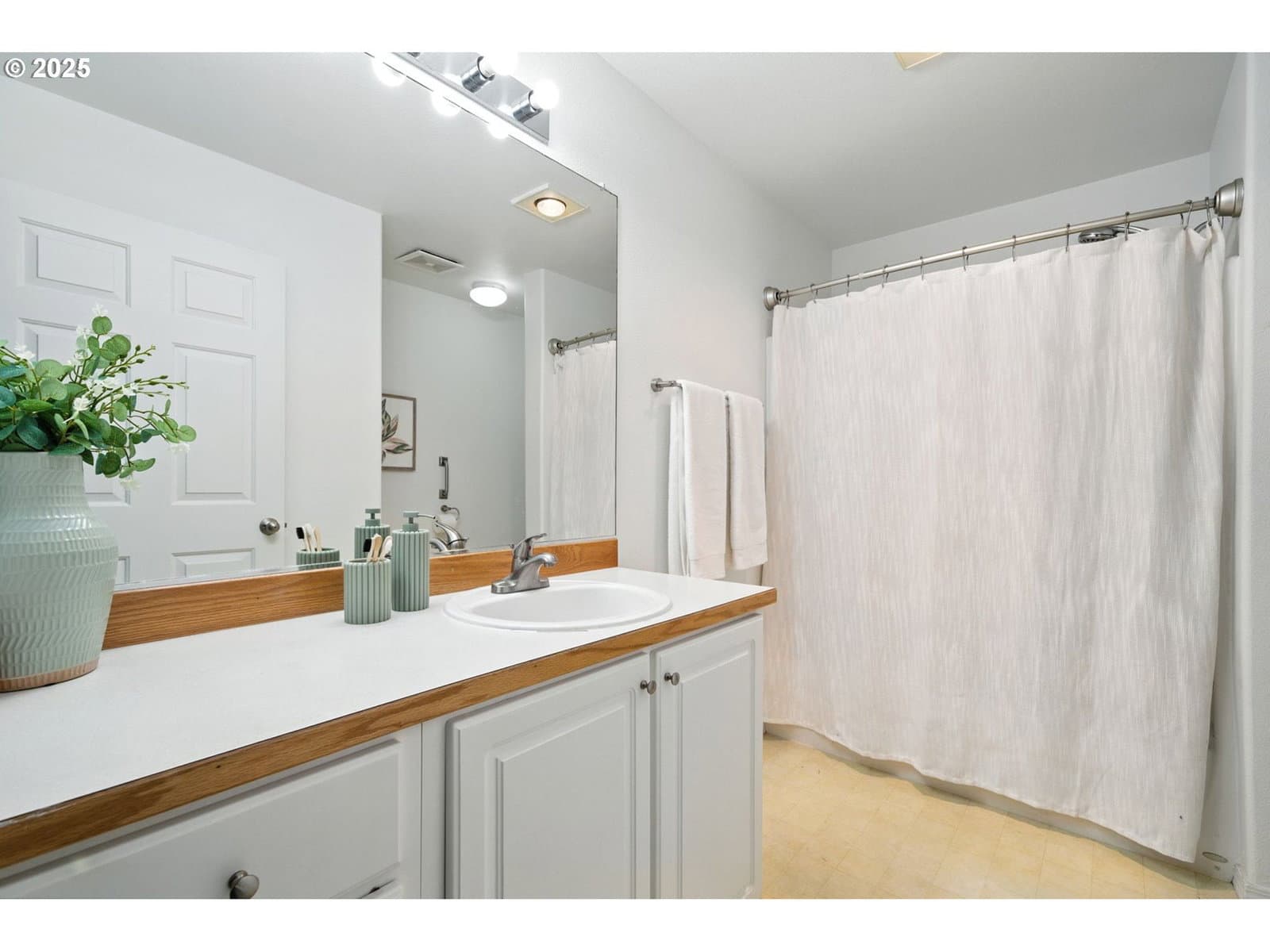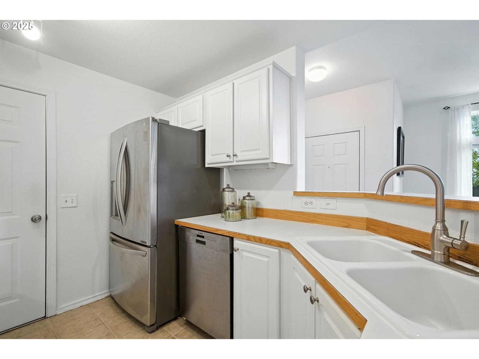 Main-level condo with quality finishes throughout. The community features solid and thoughtful architecture with lovely stone accents. Open floor plan inside with spacious living room anchored by a corner gas fireplace AND slider out to a private covered patio overlooking mature landscaping. Bright dining room with large windows for sun-drenched meals year-round. Kitchen includes stainless steel appliances, breakfast bar, and overlooks the living room for seamless entertaining. Two nice-sized bedrooms with large windows. Primary has walk-in closet and bathroom with double sinks and separate shower room. Attached one-car garage. Enjoy trails in Tualatin Hills Nature Park, with easy proximity to Nike, Intel, and excellent dining in Downtown Beaverton.