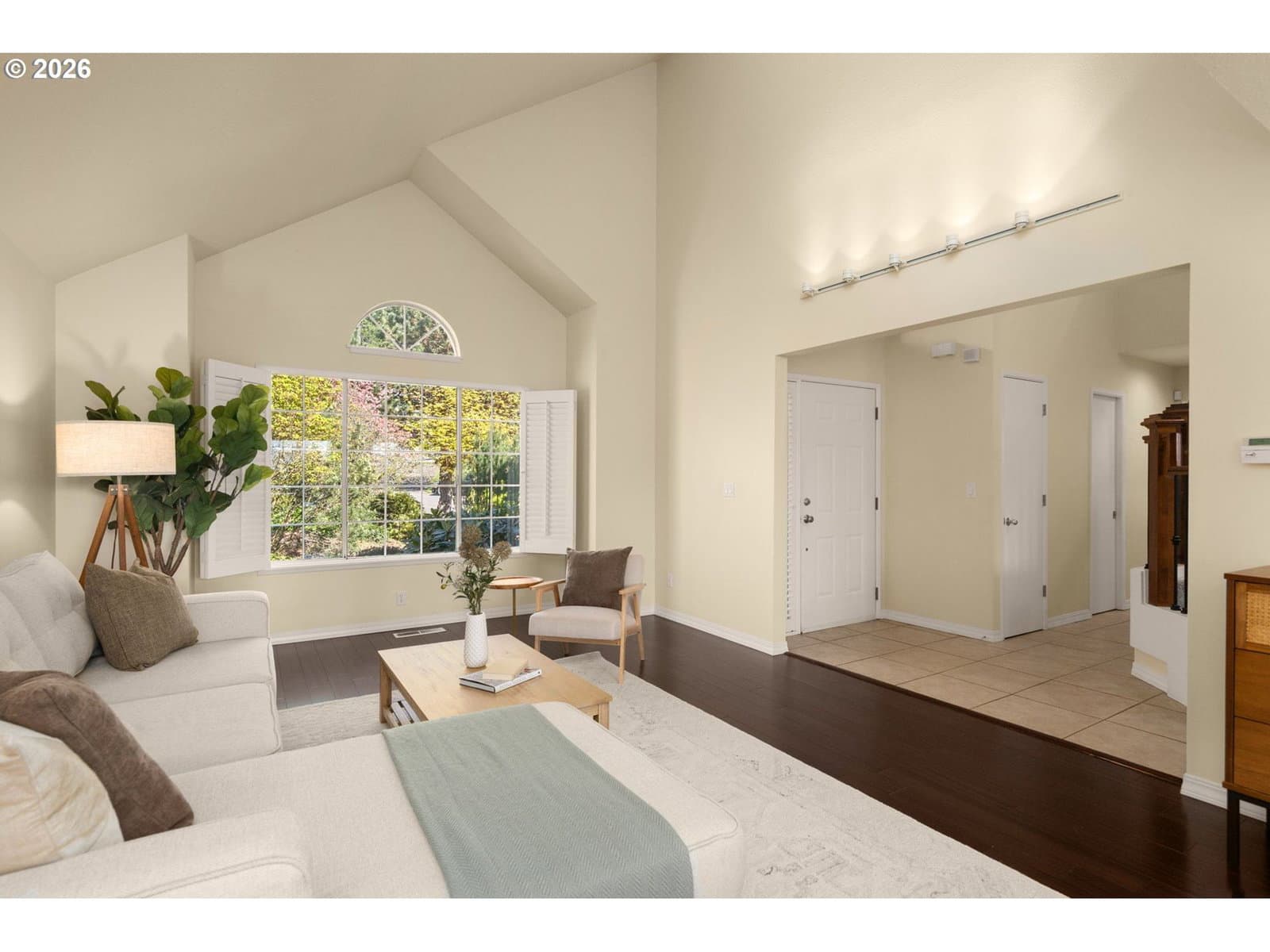 Tucked on a quiet Lake Oswego cul-de-sac just moments from Westlake Park and Cellini Park, this updated home offers a welcoming neighborhood setting with easy access to nearby trails and green space. Multiple levels of living space and several gathering areas provide a layout that offers both flexibility and room to spread out. The main level opens into the family and dining room, where vaulted ceilings and hardwood floors create an open, inviting feel. The kitchen features granite countertops, cherry cabinetry, tile floors, a five-burner gas range with double ovens, built-in Kitchen Aid dishwasher, and a freestanding three-drawer refrigerator. A garden bay window above the sink looks out toward the backyard, while the adjoining living room with a gas fireplace leads to the upper deck. Upstairs are three bedrooms, including the primary suite with its own gas fireplace, walk-in closet, and private bathroom with double sinks, jetted soaking tub, and skylight. The lower level adds even more flexibility with a large bonus room featuring a wet bar, an additional bedroom and full bathroom—ideal for guests, a game room, or multi-generational living. Sliding doors open to a covered deck and fenced backyard with raised garden beds and mature landscaping. Recent improvements include updated flooring and lighting, remodeled bathrooms, updated kitchen appliances, pull-out pantry shelving, newer rear siding, deck updates, landscaping improvements, newer furnace and water heater, and a newly installed garbage disposal. Located within Lake Oswego’s nationally ranked school district with convenient access to I-5, Hwy 217, and 99W. Open House Saturday 11a-1p!
