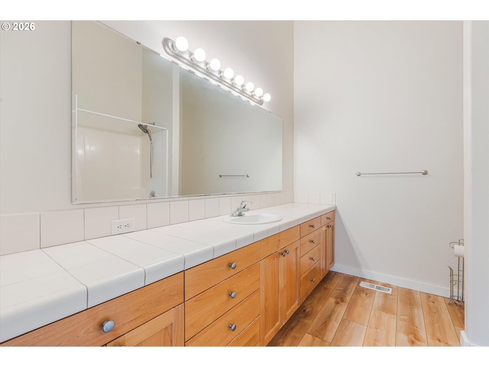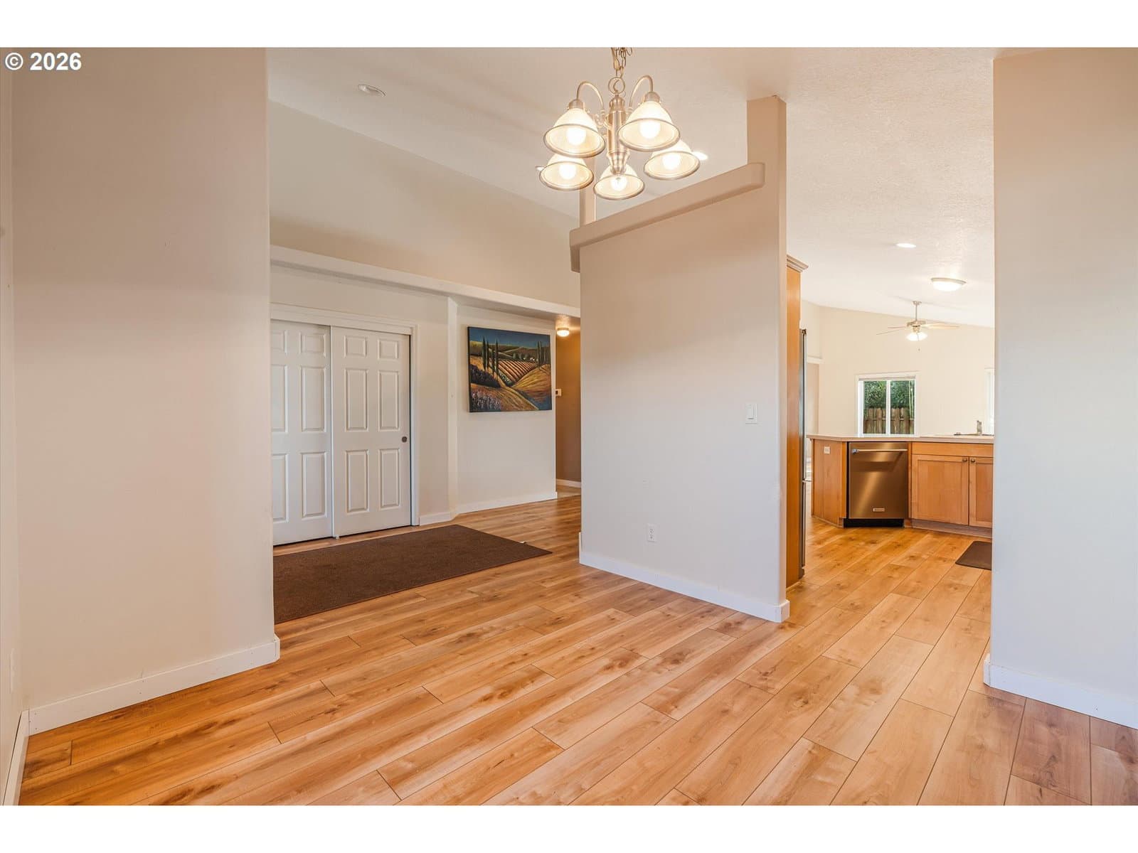 Dynamite one-level home, move-in ready. Newer luxury vinyl plank flooring throughout with newer carpet in the bedrooms. Newer AC.Refrigerator included; TV and mounts stay. Easy-care yard for low-maintenance living. Vaulted ceilings enhance multiple living spaces, creating an open, airy feel. The kitchen opens to the family room and features stainless steel KitchenAid appliances, gas range, eating bar, and pantry. Vaulted primary suite includes a walk-in closet and private full bath. Sliding doors from the family room lead to a spacious concrete patio, ideal for outdoor enjoyment. Additional features include forced-air gas heat, gas water heater, fiber-cement siding, and an attached two-car garage.