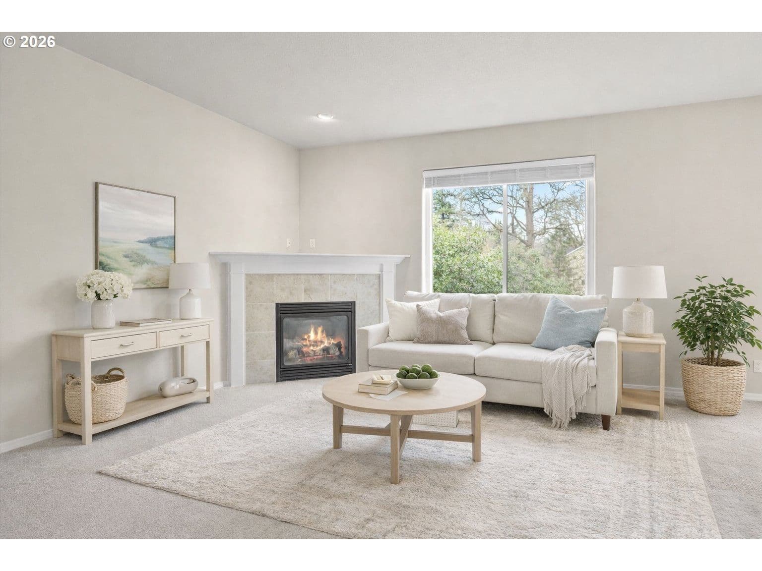 Move in Ready with Brand New Carpet and LVT in 2025. New Roof & Windows in 2022. Open floorplan - family room with a gas fireplace & open to the dining area & kitchen. Sliding door to the back deck. Kitchen with gas range, eat-at island, pantry, built-in microwave, & dishwasher. Upstairs, you’ll find three bedrooms, including a vaulted primary suite with a walk-in closet, two additional vaulted bedrooms, a bonus room, and a laundry room. A great location on a private street, a level corner lot with tree-lined views. All appliances included.