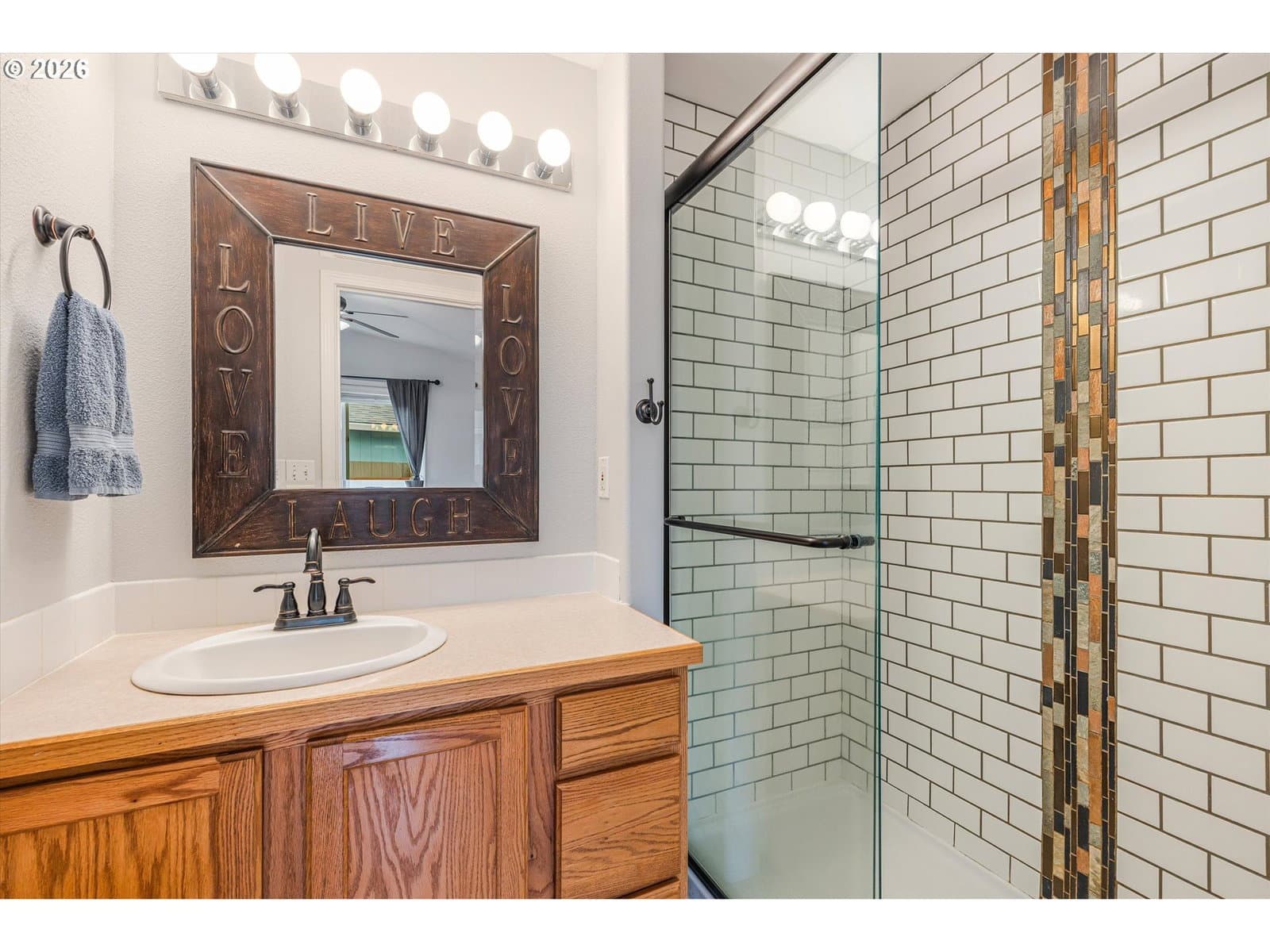 Beautifully maintained single-level home in a quiet cul-de-sac. Conveniently located near downtown Newberg. Features include engineered hardwood floors, central vacuum, automatic sprinkler system and attached two-car garage. Renovated bathrooms. Recent upgrades include a new water heater (2025). The primary suite features a walk-in closet and private bath, providing comfort and convenience. Toolshed for extra storage.
