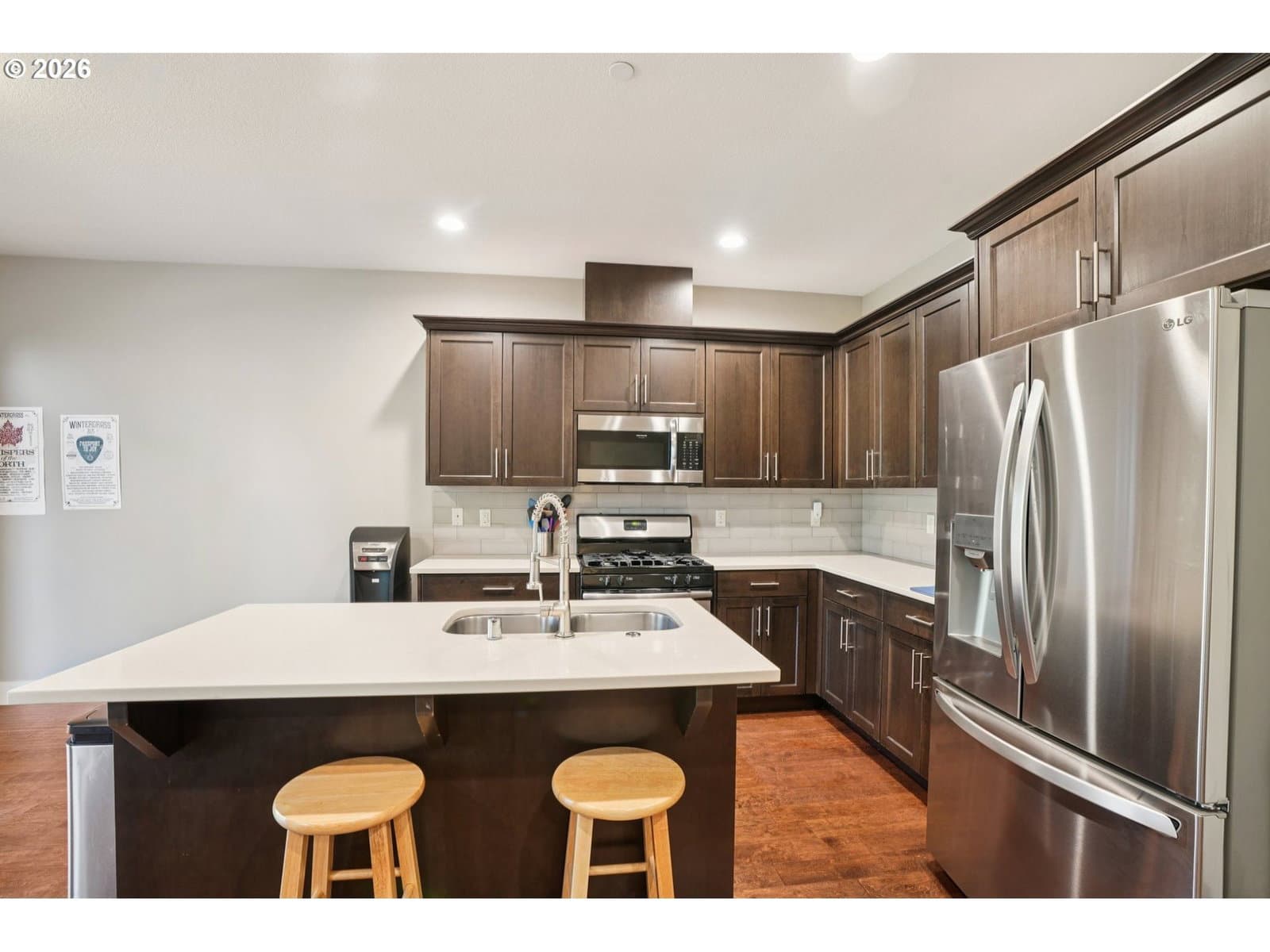 Welcome home to this desirable end-unit townhome backing to a peaceful greenbelt in Washougal. Enjoy rare privacy and a fully fenced, oversized backyard—perfect for entertaining, pets, or relaxing outdoors. The main level features durable LVP flooring and a beautifully appointed kitchen with quartz countertops, offering both style and functionality. With 3 bedrooms, 2.5 bathrooms, and an attached garage, this home checks all the boxes. Best of all—no HOA! A fantastic opportunity for comfortable, low-maintenance living in a prime location.Mortgage savings may be available for buyers of this listing.