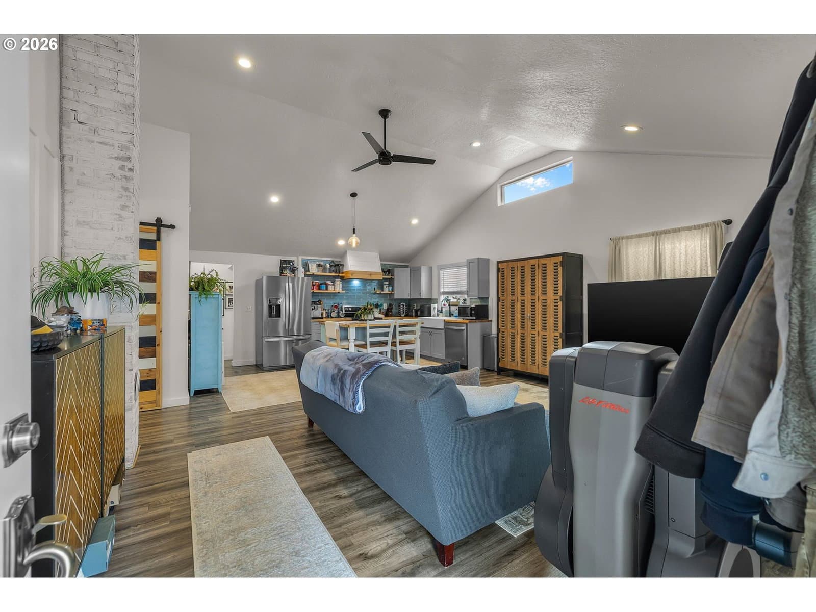 Charming Craftsman-Style Home in John Day!Welcome to this beautifully designed Craftsman-style home located in the heart of John Day. Featuring an open-concept layout with vaulted ceilings and abundant natural light, this home offers a warm and inviting atmosphere from the moment you step inside.The thoughtfully designed kitchen is a true centerpiece, complete with butcher block countertops, a farmhouse sink, tiled backsplash, and range with hood—perfect for cooking and entertaining. The kitchen flows seamlessly into the spacious living room, creating an ideal space for gatherings and everyday living.A convenient utility/laundry room provides additional storage and direct access to the back deck, making outdoor living easy and accessible. The spacious primary suite offers a relaxing retreat with a double vanity, large walk-in closet, and generous stall shower. Two comfortable guest bedrooms and a full guest bath provide plenty of space for family or visitors.Comfort is ensured year-round with a mini-split heating and cooling system, ceiling fans, and double-pane vinyl-framed windows. Interior finishes include a tasteful blend of tile, carpet, and vinyl flooring. The home is topped with a durable composition roof for added peace of mind.Step outside to enjoy the covered front porch, perfect for morning coffee or evening relaxation. The landscaped yard features a brick retaining wall that adds both beauty and functionality. The fully fenced backyard with patio offering a private space to unwind. Additional exterior features include a carport and graveled parking area for extra convenience.This well-appointed Craftsman home blends classic style with modern comfort—don’t miss the opportunity to make it yours!