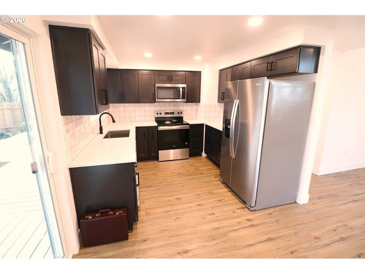 This is a beautifully completely rebuilt, like new 3-bedroom, 2 bath home on a large private lot in a quiet, non-throughfare neighborhood. The home features many upgrades including all new kitchen cabinets, Quartz countertops with tile backsplash, range oven, dishwasher, disposal, microwave, fridge, bathrooms with new cabinets, Quartz counter tops, tile backsplashes, tub shower in guest bath and walk in shower in primary bath, all sinks are recessed under counter, 3 mini splits for heating and cooling. All new interior & exterior painting, doors, closet doors, moldings, fixtures, toilets, tubs, tub surrounds, light fixtures, windows, roof, attic & sub area insulation, finished 2 car oversized garage, large deck area in the backyard, fenced, raised beds, water feature, additional finished area that could be used as a she shed, he shed, storage, etc. The home features an open floor plan with vaulted ceilings, and a large primary bedroom with a custom primary bath. This is a beautiful turn home, priced to sell.