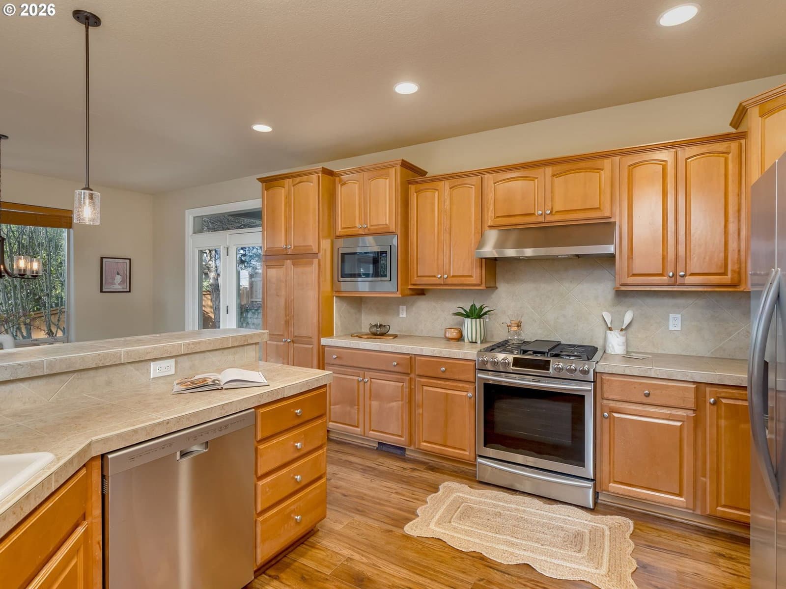 Some homes impress you. Others make you feel instantly at home. This one does both. You know that rare feeling when a house is both artfully intriguing and deeply cozy? Where a Rauschenberg lithograph wouldn’t feel out of place next to a crayon masterpiece from your favorite six-year-old? That’s this house. This is the kind of place that lets you exhale the moment you walk in. Curling up, shutting out the world, then ten minutes later, you’re mentally setting the table for a dinner party for twelve. It’s warm, grounding, and quietly confident… with just enough swagger to show off when the moment calls for it. The great room sets the tone with vaulted ceilings, a gas fireplace, and soaring windows that frame the trees outside - bringing in that unmistakable Pacific Northwest calm. The kitchen and dining area flow effortlessly, anchored by an eat-in bar that keeps everyone connected, whether you’re sipping wine or channeling your inner Julia Child. With generous counter space and room to move, hosting here feels easy and fun. The main floor offers a flexible bedroom or office - ready to adapt to whatever season of life you’re in. Upstairs, the expansive primary suite feels like a true retreat, featuring vaulted ceilings, sweeping valley views, a walk-in closet that can handle your entire wardrobe (and then some), and an en suite bath with a soaking tub and spacious shower. Two additional bedrooms and a full bath complete the upper level, offering space for guests, kids, creative pursuits, or all of the above. A hard-to-find 3 car garage gives you plenty of room to store all your toys and vehicles. Tucked into a well-maintained neighborhood with no HOA, this home delivers peaceful living just minutes from downtown Oregon City and an easy hop to I-205. Come see it in person. This is one of those homes you don’t just tour… you feel.