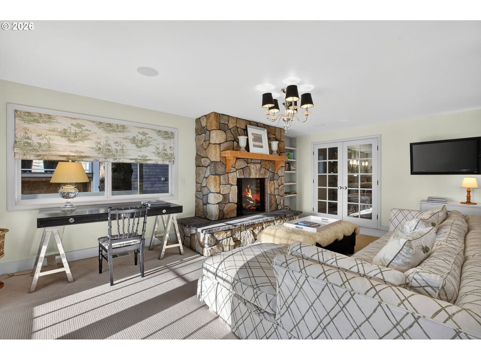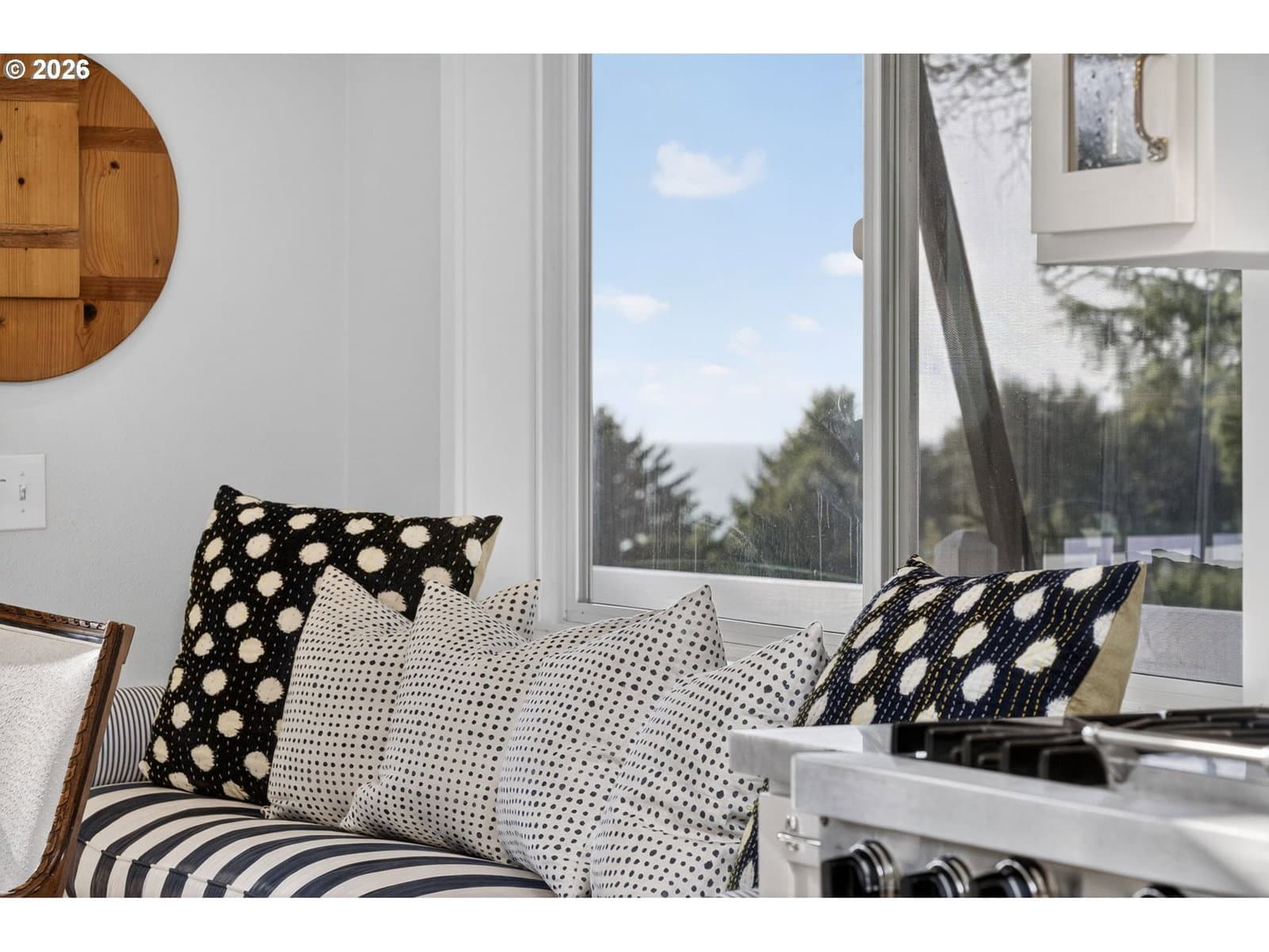 Fully furnished & thoughtfully curated, coastal retreat, blending East Coast elegance with Oregon Coast serenity in Tolovana Beach. Inspired by 'Something's Gotta Give', this 3 level home features vaulted ceilings & expansive west facing windows with distant ocean views. The great room offers a dramatic stone fireplace, custom built-ins, and triple French doors opening to a spacious deck. Gourmet kitchen with industrial gas range, griddle, grill, double ovens, wine cooler, Carrara marble, & custom cabinetry. Luxurious primary suite with fireplace, sitting area, private deck, steam shower, & soaking tub. Three additional bedrooms are thoughtfully designed with custom finishes. Multiple living spaces provide flexibility, including a lower-level game room. Located on a dead-end street, surrounded by forest, the home is approximately half a mile from beach access, minutes to downtown Cannon Beach & Ecola State Park, this property combines privacy, proximity, and lifestyle appeal. Contact your broker to schedule a private showing or to receive the full feature sheet.
