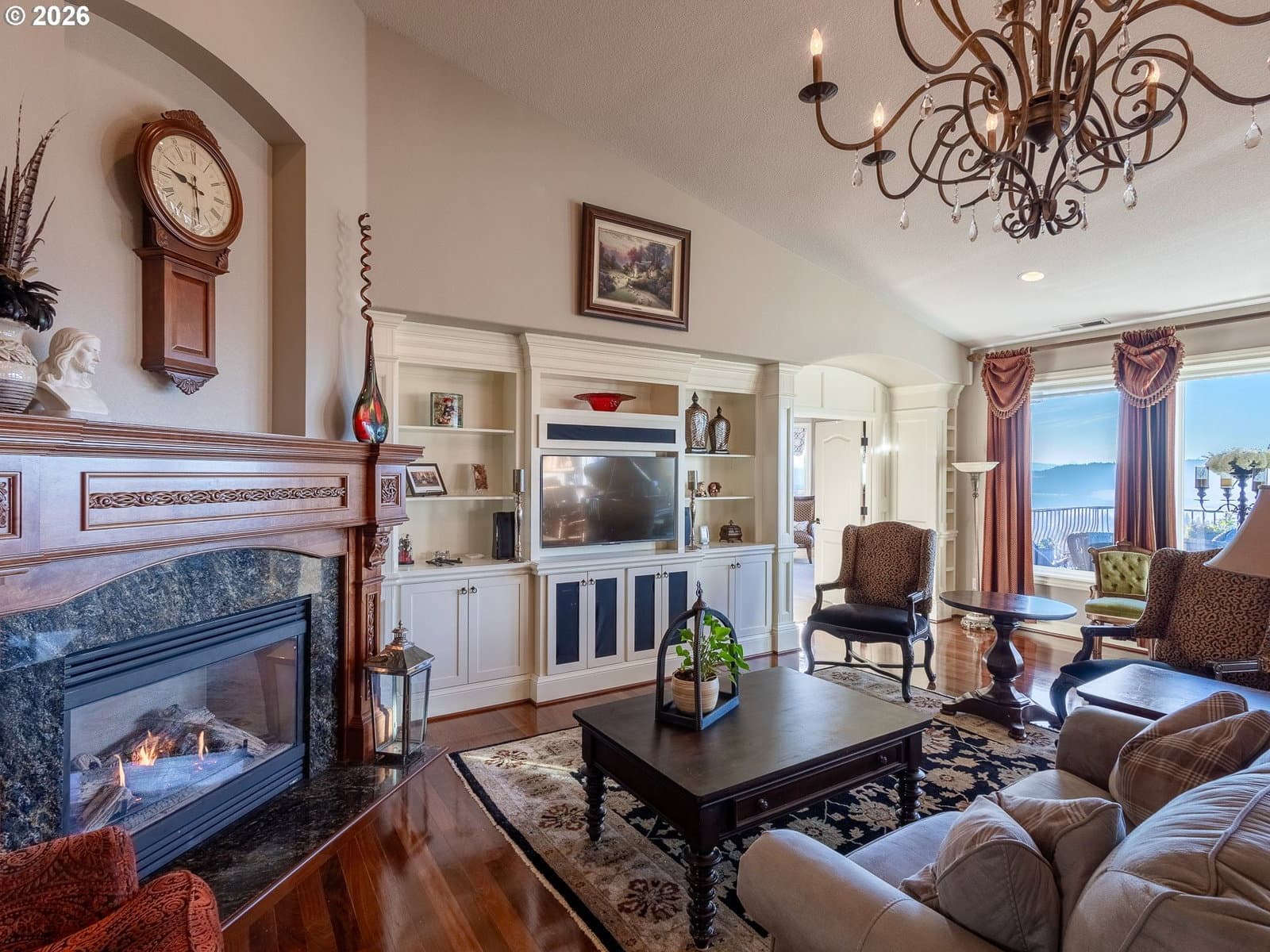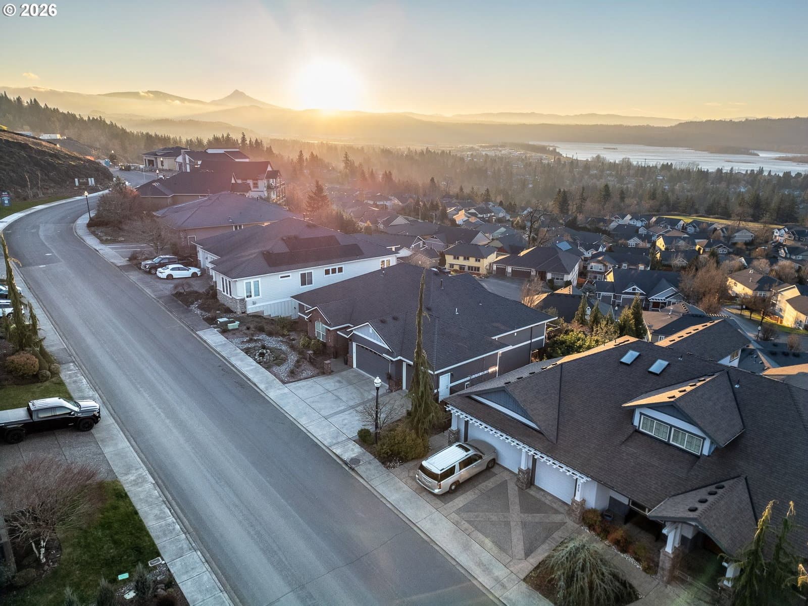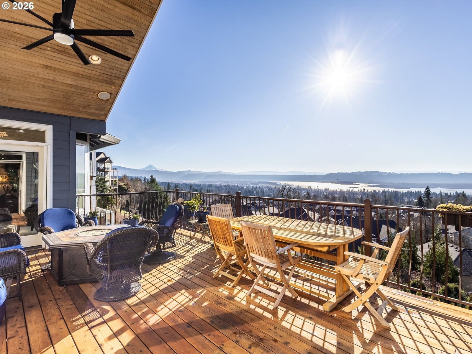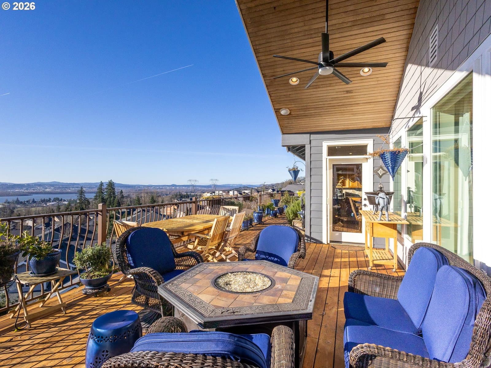 Breathtaking panoramic views of the Columbia River, Mt. Hood, and the Portland cityscape set the stage for this exceptional 2004 Parade of Homes residence. Offering 4,700+ sq ft, this 4-bedroom, 3-bath home blends luxury, comfort, and thoughtful design.The main level features 2,475 sq ft of single-level, open-concept living with a spacious great room, gourmet kitchen, and a professional office. Brazilian Teak Hardwood floors, south facing picture windows with river views and a gas fireplace make this level a cozy retreat. Also on the main floor are a beautifully refinished full bath with heated floors, a second bedroom, and a laundry room with sink and ample storage. The primary suite is a true retreat, showcasing a bay window with seating area and direct access to the 40+ foot upper level deck. The ensuite bath includes a jetted soaking tub, 8-ft walk-in shower, double vanities, heated floors, and a walk-in closet.The finished lower level offers an additional 2,230 sq ft, including a second primary bedroom with access to the 35' lower deck and hot tub. This level also features a gaming area with wet bar, theater room, wine room, kids’ playroom, fourth bedroom, updated third bath with heated floors, and a second laundry/craft room, plus access to 600+ sq ft of storage. Outdoor living is equally impressive with mature landscaping, a putting green, and a fenced raised garden area. The 3-car garage features epoxy flooring and a exterior hot- and cold-water spigot for car washing. Brand-new siding (2025) wraps the entire home.Appliances staying with home. With too many features to capture here, this home truly must be seen in person. See the Features Sheet for additional details.OPEN HOUSE Sat 1/31 11am - 1pm and Sun 2/1 12pm - 2pm.