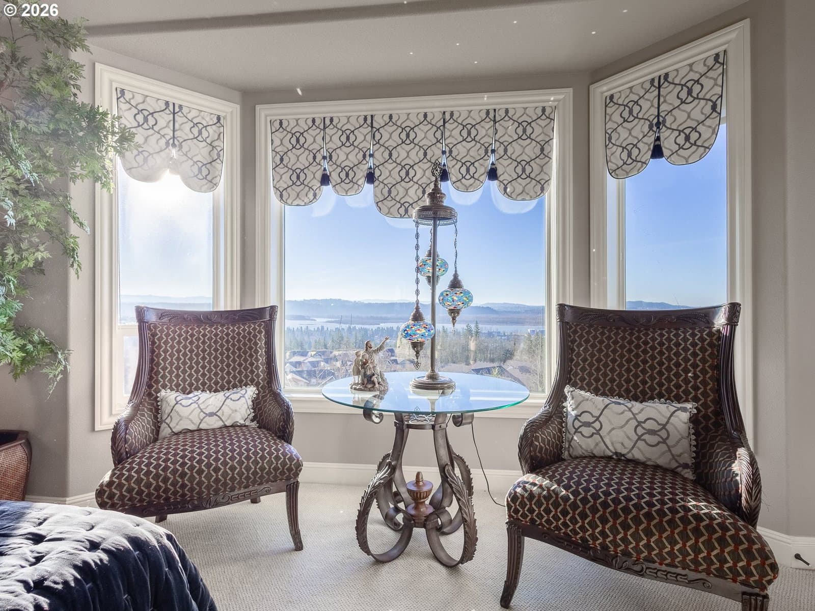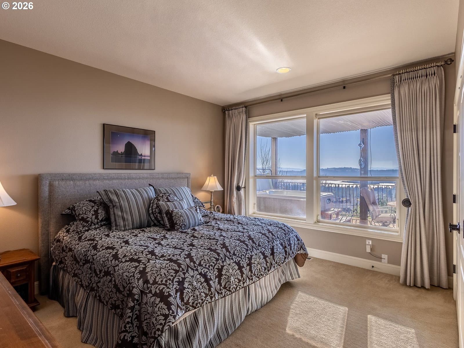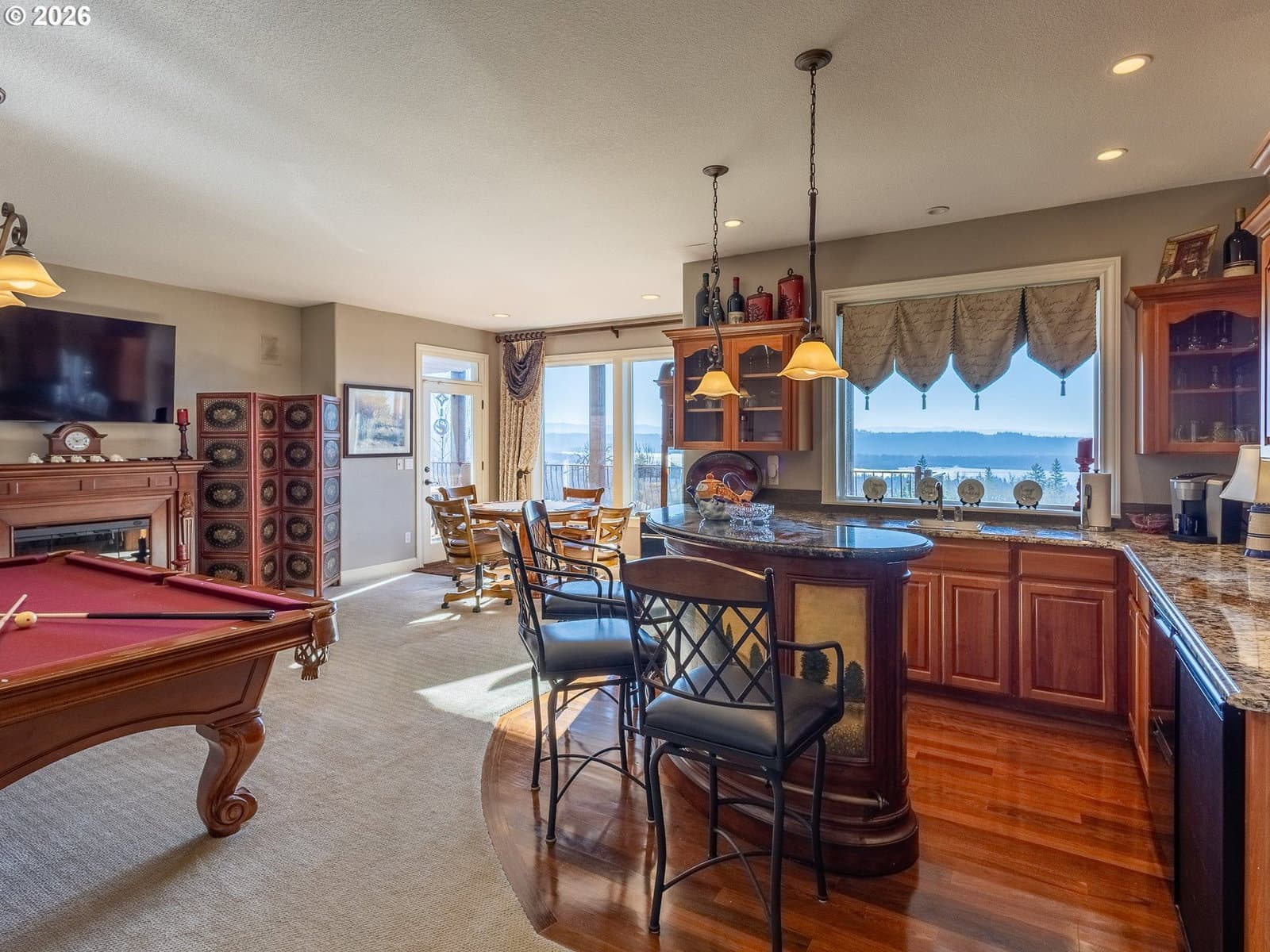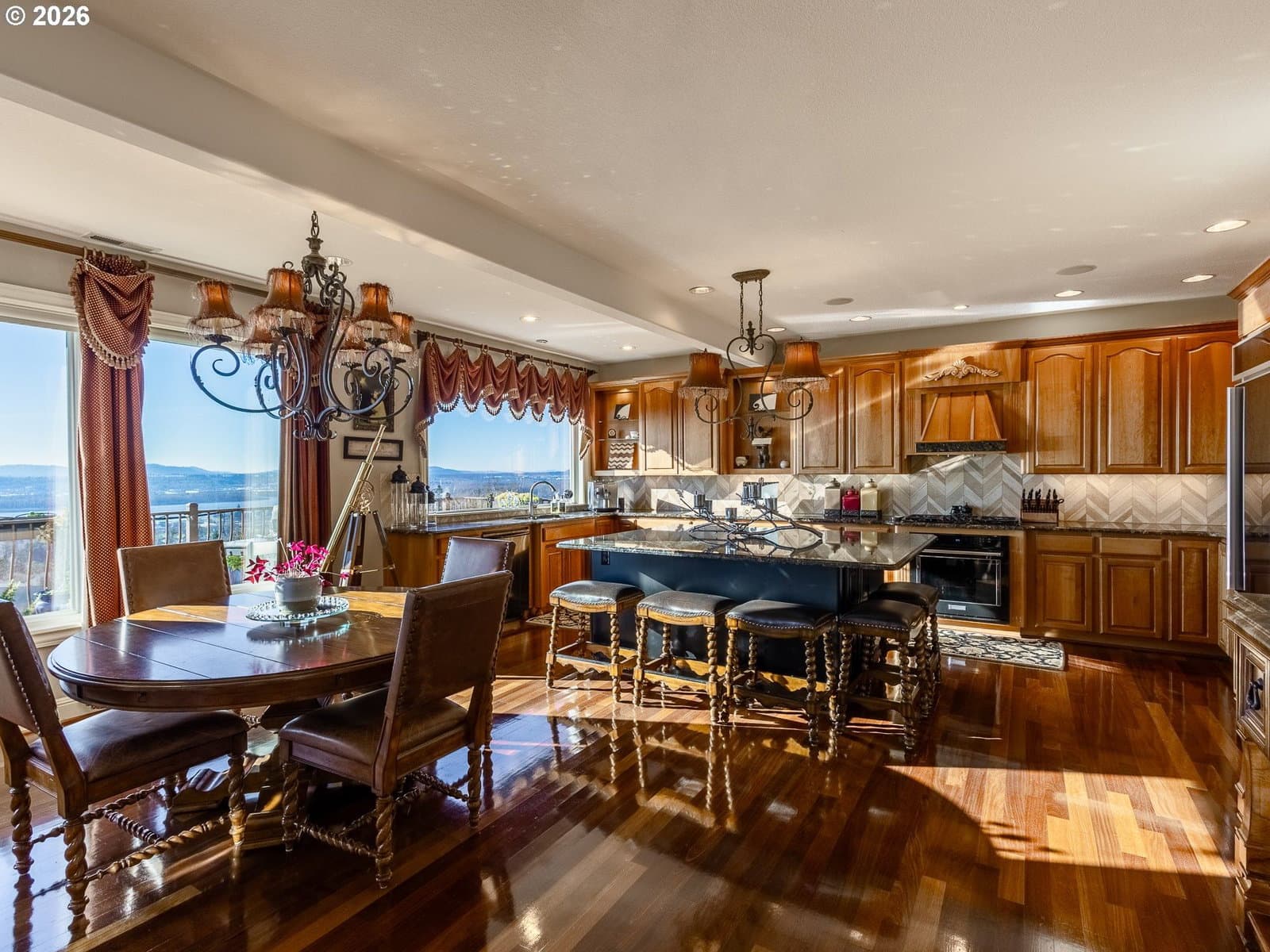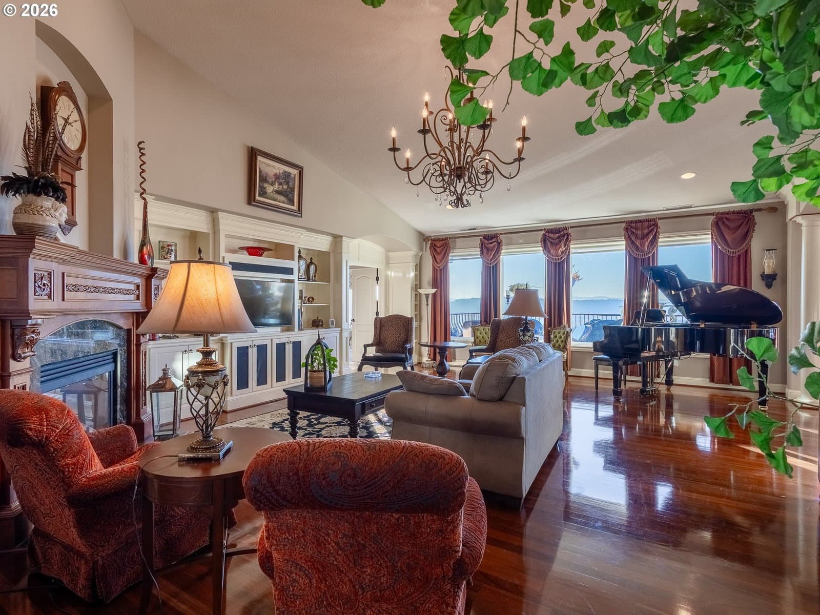 Breathtaking panoramic views of the Columbia River, Mt. Hood, and the Portland cityscape set the stage for this exceptional 2004 Parade of Homes residence. Offering 4,700+ sq ft, this 4-bedroom, 3-bath home blends luxury, comfort, and thoughtful design.The main level features 2,475 sq ft of single-level, open-concept living with a spacious great room, gourmet kitchen, and a professional office. Brazilian Teak Hardwood floors, south facing picture windows with river views and a gas fireplace make this level a cozy retreat. Also on the main floor are a beautifully refinished full bath with heated floors, a second bedroom, and a laundry room with sink and ample storage. The primary suite is a true retreat, showcasing a bay window with seating area and direct access to the 40+ foot upper level deck. The ensuite bath includes a jetted soaking tub, 8-ft walk-in shower, double vanities, heated floors, and a walk-in closet.The finished lower level offers an additional 2,230 sq ft, including a second primary bedroom with access to the 35' lower deck and hot tub. This level also features a gaming area with wet bar, theater room, wine room, kids’ playroom, fourth bedroom, updated third bath with heated floors, and a second laundry/craft room, plus access to 600+ sq ft of storage. Outdoor living is equally impressive with mature landscaping, a putting green, and a fenced raised garden area. The 3-car garage features epoxy flooring and a exterior hot- and cold-water spigot for car washing. Brand-new siding (2025) wraps the entire home.Appliances staying with home. With too many features to capture here, this home truly must be seen in person. See the Features Sheet for additional details.OPEN HOUSE Sat 1/31 11am - 1pm and Sun 2/1 12pm - 2pm.