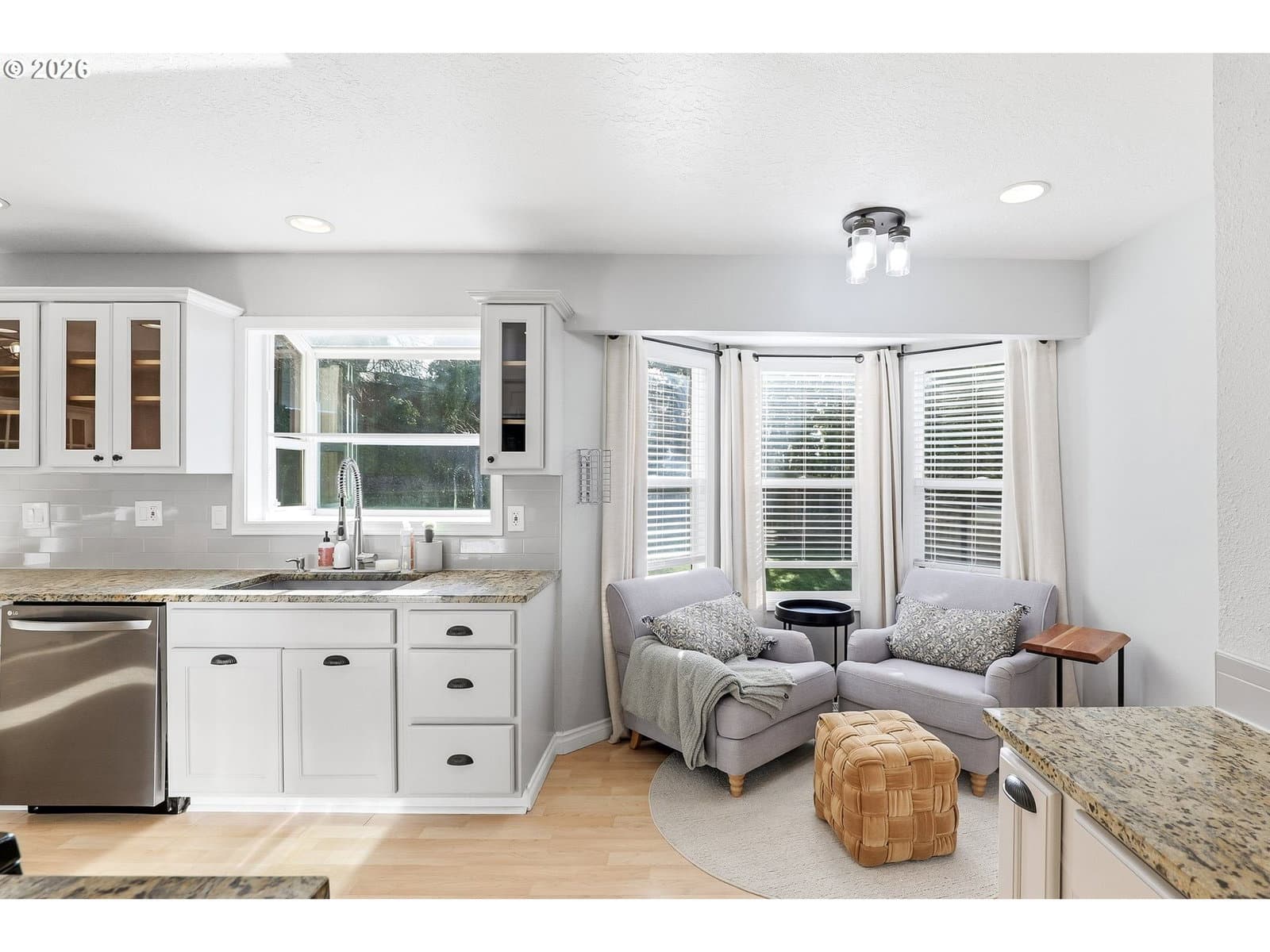 Tucked away on a quiet cul-de-sac, this move-in ready home sits on an exceptionally large lot, nearly a quarter acre, with a backyard that truly sets it apart. Bamboo hardwood floors run throughout the home, complemented by abundant natural light and thoughtful updates. The formal living room features vaulted ceilings with skylights, bay windows, and hardwood floors, creating a bright and welcoming first impression. The dining room offers hardwood flooring and a sliding glass door that opens to the patio, ideal for indoor-outdoor living. The kitchen is inviting with granite countertops, built-in dishwasher and microwave, a freestanding refrigerator, and a cozy nook perfect for casual seating or a breakfast nook. The lower level adds flexible living space with a family room featuring a fireplace, wainscoting, tile floors, high ceilings, and a sliding glass door to a covered patio. A full laundry room with storage and an updated powder bath complete this level. The owner’s suite is a private retreat with double doors, hardwood floors, a sliding glass door to a private balcony, dual sinks with granite countertops, a walk-in closet with custom California Closets organizers, and a fully tiled walk-in shower with a rain shower head. Two additional bedrooms feature hardwood floors, closets, and high ceilings. The fully fenced backyard is truly special, showcasing professionally tiered landscaping, a large deck with an outbuilding (potential for studio space), two patios, pergolas, and garden boxes. Additional highlights include a big garage, extra and RV parking, updated primary bathroom (2020), newer HVAC system, and updated trim. Conveniently located near Powerline Trail, parks, hiking, shopping, dining, and everyday amenities.