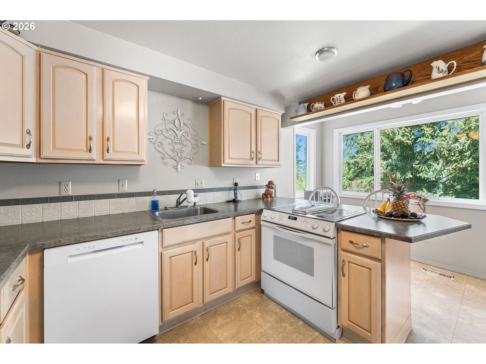 Welcome to this beautifully maintained 3-bedroom, 2.1-bath home offering 2,023 sq ft of comfortable living on a spacious 1/4-acre corner lot in the heart of Estacada. This property combines thoughtful updates with inviting indoor and outdoor spaces.Step inside to a light-filled, open-concept layout perfect for everyday living and entertaining. The spacious living area flows into a well-appointed kitchen with ample cabinetry, generous counter space, and a dining area that opens to the fully fenced backyard. Recent upgrades include a brand new HVAC system for year-round comfort and efficiency, a newly rebuilt deck, and a new concrete approach—providing both peace of mind and added curb appeal. Enjoy outdoor living with a covered patio and expansive yard, ideal for relaxing, gardening, or hosting gatherings. The primary suite offers a private retreat with an ensuite bath, while additional bedrooms provide flexibility for guests, a home office, or hobbies. Complete with a 2-car garage and located just minutes from downtown Estacada, parks, trails, and the Clackamas River, this home delivers the perfect blend of comfort, space, and Pacific Northwest lifestyle.