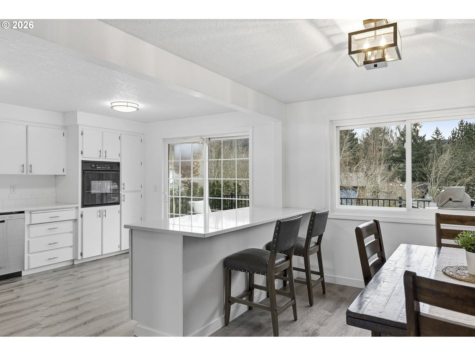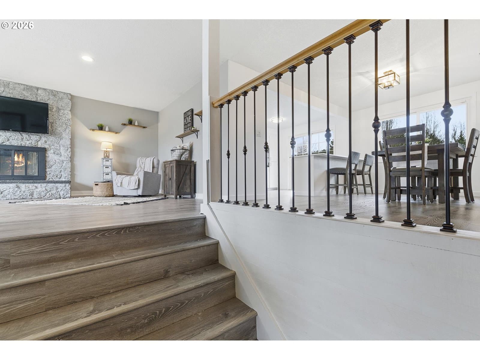 Contemporary, clean, and completely move-in ready, this Marpol Ridge split level home offers 2,436 sq ft of thoughtful updates & incredible ADU potential! Beautiful stone fireplace & picture windows invite natural light to your living/dining/kitchen space. The open kitchen is designed for gathering with quartz counters, full tile backsplash, built-in appliances, eating bar and a slider opening to a large composite deck with gorgeous territorial views. Easy-care laminate flooring and contemporary fixtures throughout create a simple aesthetic that feels elevated yet welcoming. Downstairs offers exceptional flexibility with a spacious family room featuring a gas fireplace, adjacent kitchenette/bar with sink and mini fridge, all opening to a covered patio for seamless indoor/outdoor living. Also on the lower level, with its own exterior entry, is a fully finished fourth bedroom or in-law suite complete with bathroom and kitchenette including refrigerator, microwave, dishwasher and sink - ideal for ADU potential, multigenerational living, or creative flex space. For added convenience, all appliances are included and abundant storage adds everyday ease, including a large backyard shed. Outdoors, enjoy a fully fenced yard with a second view deck, raised garden beds, fire pit with seating area, and room to run, play, or relax. Near Butler Park with lake, trails, and picnic areas. Open House this Saturday, Feb. 21, 11am–1pm and Sunday, Feb. 22, 1pm–3pm. Ask about our preferred lender's buy down option for this home!
