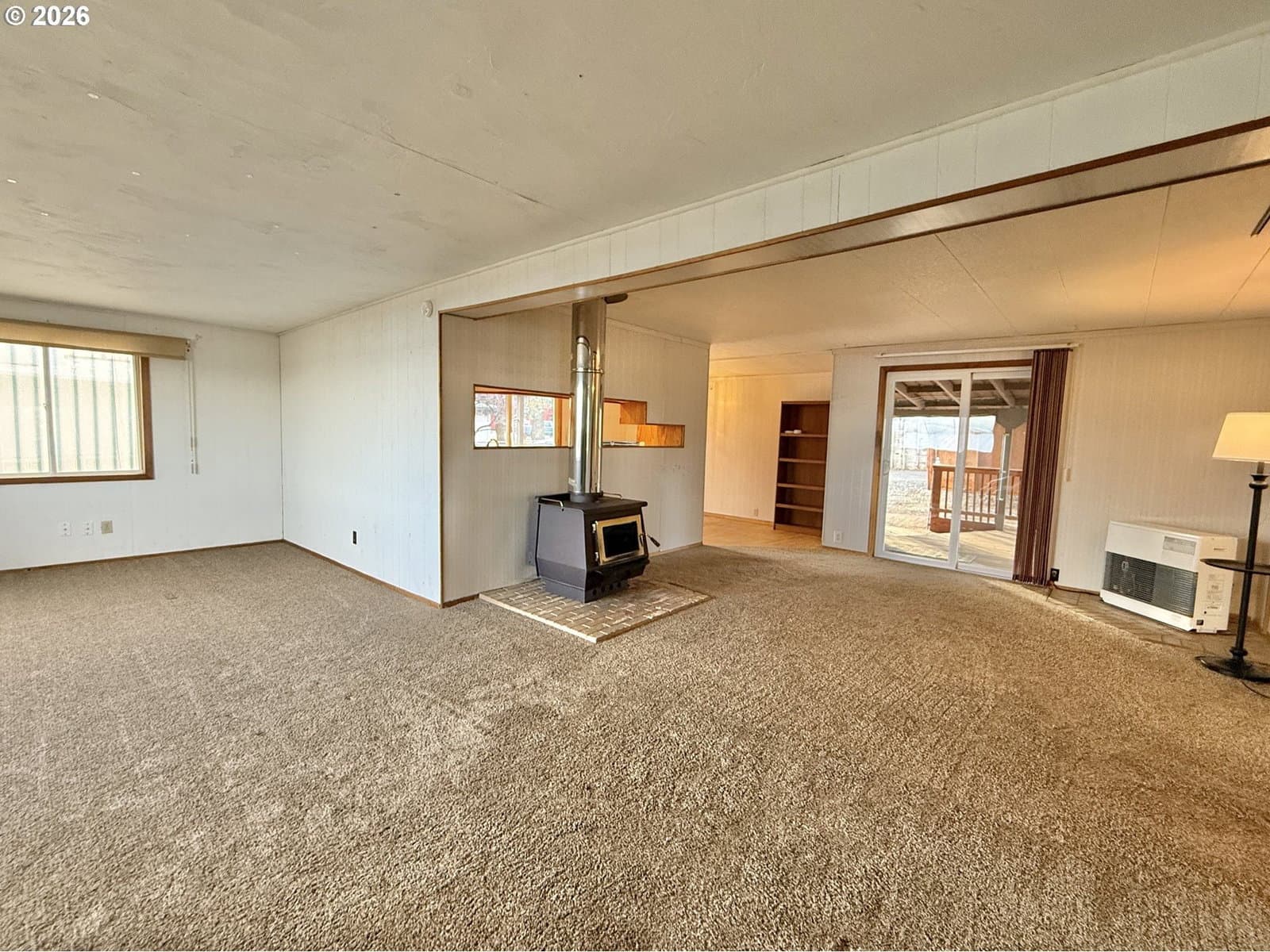 1976 Champion Single Wide Manufactured Home in Long Creek, Oregon.This charming home having 2 bedrooms and 1 bathroom originally measured 728 sqft, it has been added onto, to make a total of 1,056 sqft. It features a cozy, certified wood stove for heating. The property sits on a .26-acre lot that is completely fenced in.Additional highlights include a 16' x 16' carport and an expansive deck thats partially covered. Also the property offers a 24' x 8' enclosed workspace thats attached to the home. With a little bit of maintenance, this home is sure to shine beautifully!