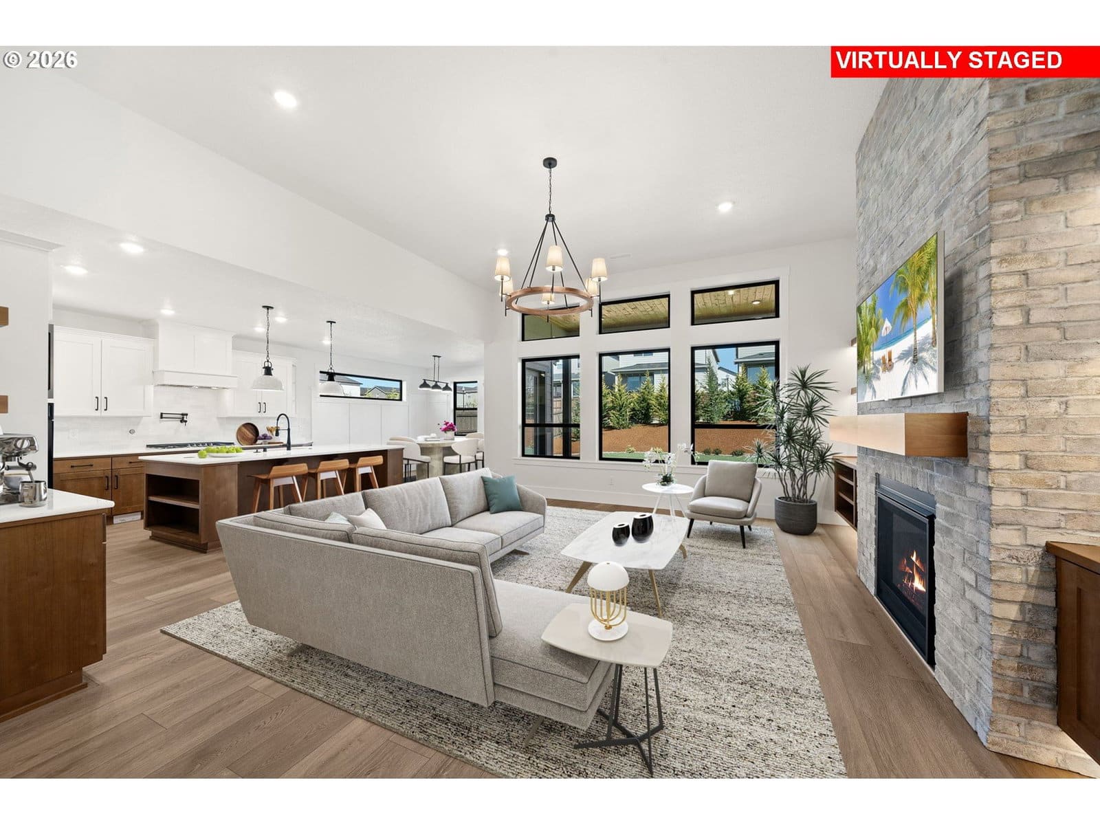 NOW MOVE-IN-READY! This spacious one-level plan has it all. An open gourmet island kitchen and spacious dining complement the oversized great room with soaring 12' ceilings. Perfect for large gatherings or entertaining. The private primary suite features walk-out patio access and a fully appointed luxury bath, including a curbless tile shower. The generously sized “flex space” can function as a home office, relaxation room, or whatever you can imagine. Further flexibility is provided by the secluded guest room with a full bath. There are two additional bedrooms with the option to configure one as a den. A huge three-car garage and extra shop space complete this beautiful home. Ask about our Exclusive Builder Flex cash and Preferred Lender Incentives designed to maximize your buying power. Builder incentives are subject to terms and vary by property.*Prices may vary for new construction.