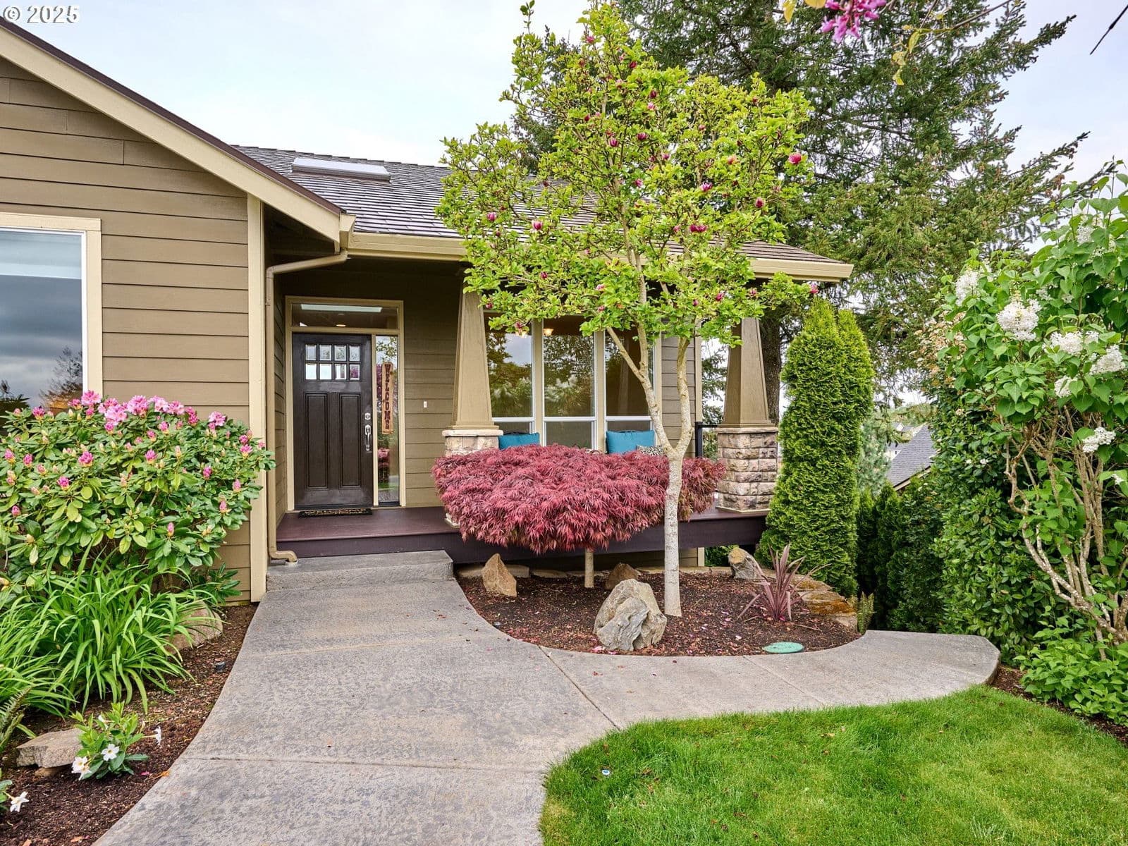 The term "Forever Home" comes to mind. Exceptionally well-maintained and spacious 2-story home with matching decks on each level for beautiful westward views. So many features and upgrades: Living Room + Family Room + Bonus Room; 9-foot ceilings on main; Vaulted ceiling and gas fireplace in the living room; Kitchen offers quartz counters with tile backsplash, deep walk-in pantry closet, undermount farmhouse sink with disposal and Titan compact water heater underneath for fast hot water, all-stainless steel kitchen appliances (including gas range), eating bar & lazy Susan. Eating area leads to main floor deck. French doors lead to the vaulted primary bedroom/suite, with quartz counters, dual undermount sinks and a tiled, seated shower in the bathroom. Spacious walk-in primary closet has its own "shoe nook". Floors are mainly hardwood and LVP. Hall bathrooms on both levels have tile floors and quartz counters. Huge family room (36 x 13) on lower level along with a spacious bonus room and three bedrooms, all of ample size. Both decks and front porch built with Trex decking material. Air conditioning, gas furnace and gas water heater all installed in 2024. Fiber cement siding. Interlock roof installed in 2021 and has 50 year warranty, transferable to subsequent owner. Double garage with keypad, automated sprinkler system and water features in front and back yards. Lots of storage space, including a huge area beneath the lower level. Low-traffic cul-de-sac location. This one is something special.