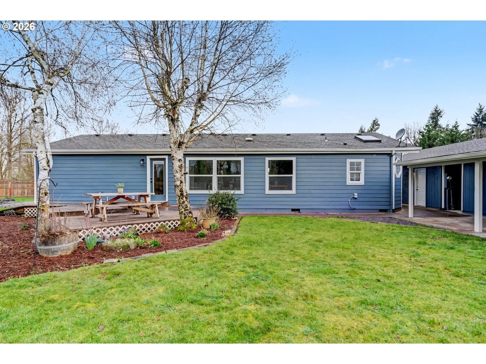 Rare opportunity to purchase a .45 acre property resting right along a serene creek. Enjoy sounds of nature off your expansive deck overlooking farmland and creek. Large side yard features fire-pit just waiting for family gatherings and evening sunsets. Huge over-sized garage with attached shop + two bonus rooms – perfect for all your tools and hobbies! The newly remodeled home features new interior/exterior paint, durable LVP floors, brand new kitchen & updated bathrooms with white shaker cabinets, quartz counter tops, and new appliances. Vaulted ceiling allow for an abundance of natural light throughout the home. Large primary bedroom features walk-in closet and spacious ensuite bathroom with shower. New fiber cement siding on house and new roof on garage/shop. New furnace and new water heater. RV parking and detached shed. This is the one!