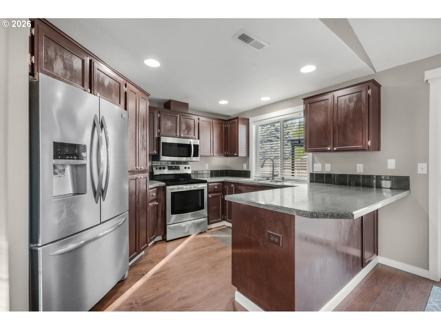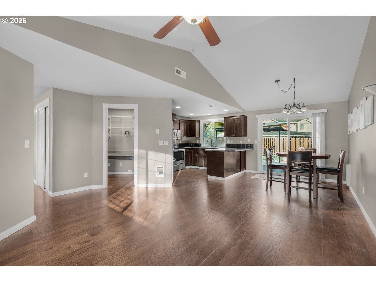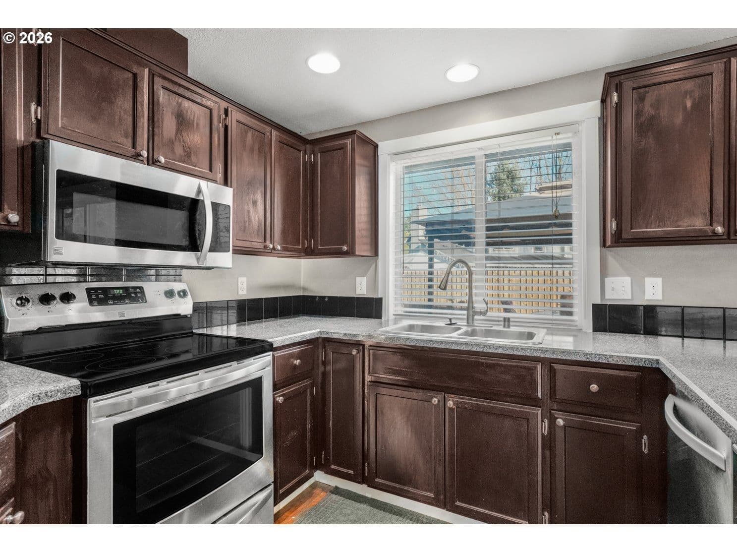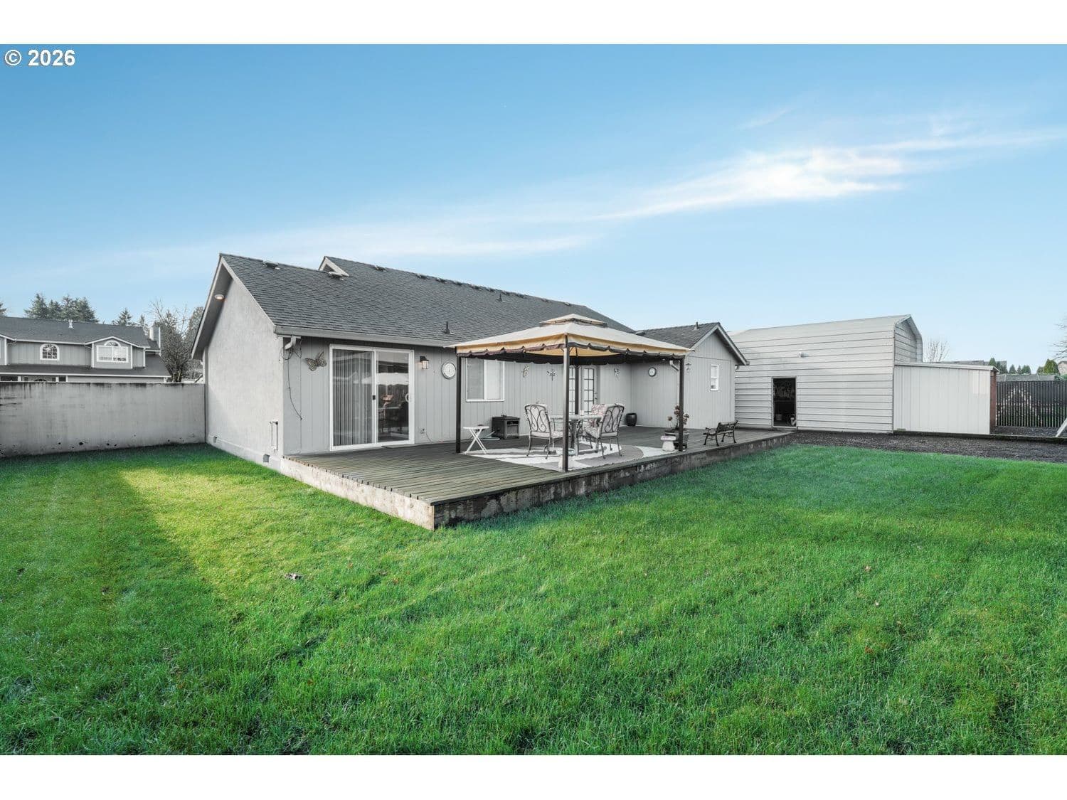 Beautifully maintained and truly move-in ready, this 3-bedroom, 2-bath ranch-style home sits on a spacious .23-acre cul-de-sac lot in the Wallingford Park neighborhood and offers the perfect blend of comfort, functionality, and exceptional shop space! The standout feature is the large detached 19x30 workshop complete with a 13x7 office, storage, room for toys, and generous parking, including space for an RV, trailer, or equipment. Ideal for hobbyists, business owners, or anyone needing serious workspace! Inside, enjoy gorgeous laminate flooring throughout. A bright living room has high ceilings and a cozy propane fireplace and an open-concept family room, dining, and kitchen with vaulted ceilings is perfect for entertaining. The dining area features sliders to the deck, while the kitchen offers beautiful cabinetry and countertops, stainless steel appliances, a walk-in pantry, and an eat bar. Retreat to the spacious primary suite featuring French doors to the deck for morning coffee, a walk-in closet, and a private bath with dual vanities and a walk-in shower. Two additional bedrooms, a full guest bath, and a laundry room with exterior entry that's ideal as a mudroom after working in the shop complete the interior.Outside, enjoy an easy-to-maintain fenced backyard with the large deck and patio that make it perfect for relaxing or hosting gatherings. Conveniently located near shopping, dining, schools, neighborhood parks, and PeaceHealth Medical Center.