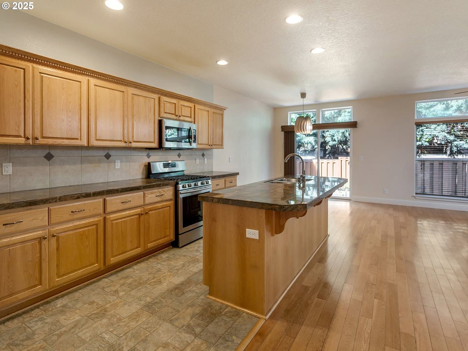 Welcome to this beautifully maintained 1,948 square foot home in the heart of King City, offering a perfect blend of comfort, style, and convenience. The open floor plan creates a warm and inviting atmosphere, ideal for both everyday living and entertaining. A spacious living area features a cozy gas fireplace, while large windows fill the space with natural light. The kitchen is a chef’s delight, complete with granite countertops, gas appliances, and ample cabinetry for storage. Hardwood floors flow throughout the main level, adding a touch of elegance and durability. Upstairs, you’ll find three generous bedrooms, including a spacious primary suite with a large walk-in closet and an en suite bath designed for relaxation. The conveniently located upstairs laundry adds ease to your daily routine. With a main floor bedroom and two and a half bathrooms, this home offers both functionality and privacy. The property is set on a peaceful street that ends at scenic wetlands, offering a quiet backdrop and opportunities to enjoy nature. Its prime location places you close to Deer Creek Elementary School, King City Golf Course, parks, shopping, and dining, ensuring everything you need is within easy reach. This home is move-in ready and has been lovingly cared for, making it a rare find in this sought-after community. Don’t miss your chance to make this exceptional King City residence your own.