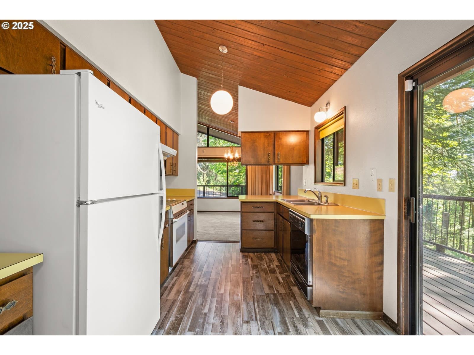 Pristine Northwest Contemporary Home in a Magical Wooded Setting! Beautiful home boasting 2,106 SF, 3 bedrooms, 3 bathrooms, Great Room w/cedar tongue and groove vaulted ceilings-wall of light filled windows, formal living room w/wood FP & sliders to wrap around viewing deck, dining room w/large windows to take in the serene wooded views, kitchen w/vaulted ceiling-LVP flooring-all appliances-slider to side viewing deck, spiral staircase to large lower level family room w/wet bar-wood FP w/insert-slider to lower covered patio & a private wooded sanctuary, spacious laundry room & oversized 594 SF garage. The wooded grounds offer flower beds, ornamental shrubs and an incredible "Sea of Trees" view! The home is located minutes to Longview & Kelso.